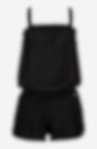 Ensfarget badekjole med dekorativ twistdetalj foran. Fastsydd vattert BH. Litt bredere skulderstropp. Nederdel med overlappdesign. Fôret skritt. Lengde midt bak ca. 55 cm i størrelse 40.