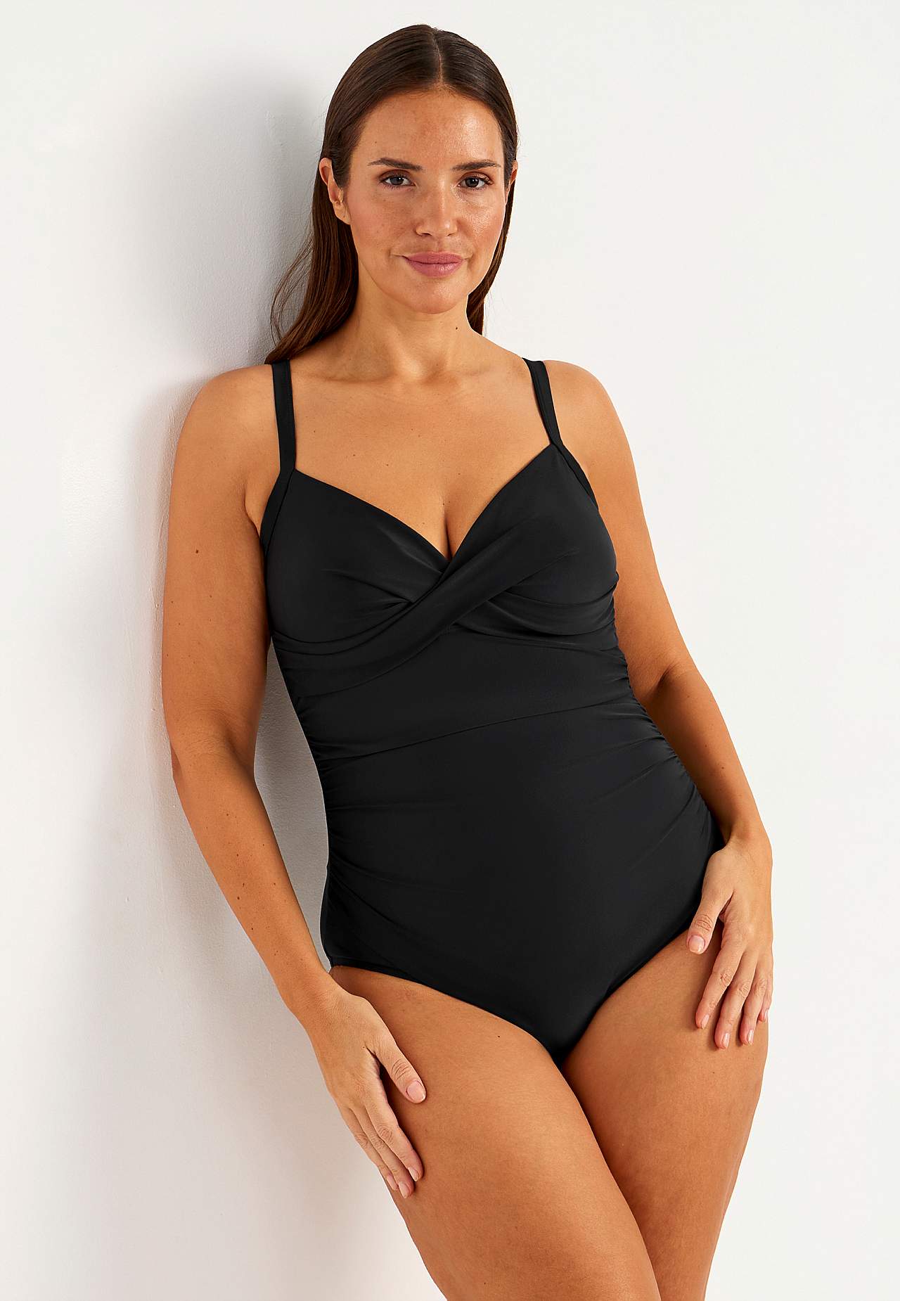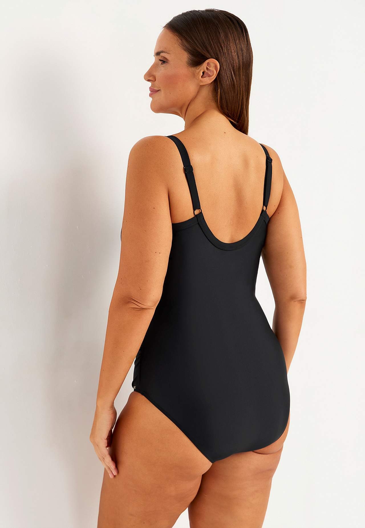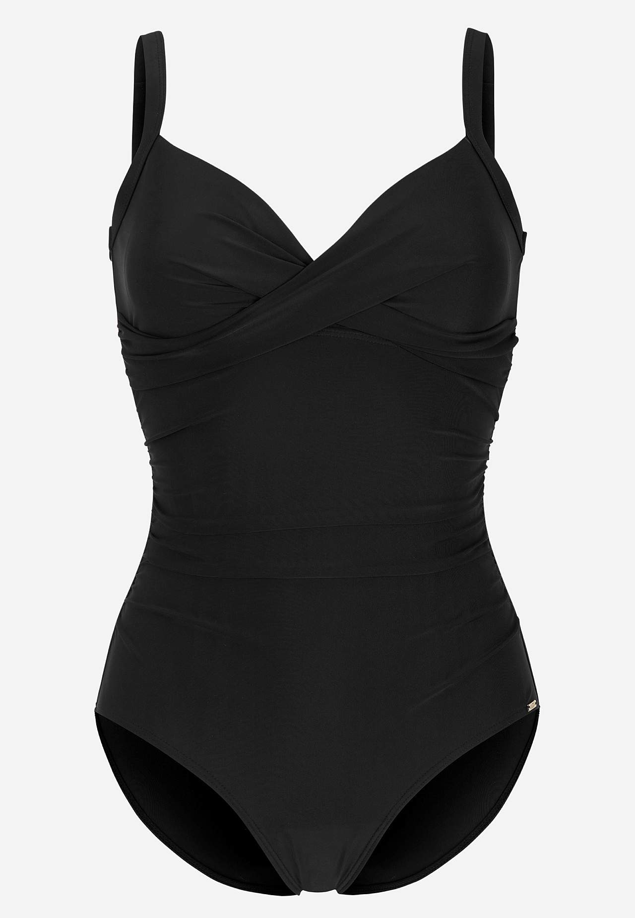 Lett formende effekt. Krysset drapering over bysten. Fôret front. Avrundet u-hals på baksiden. Justerbare skulderstropper.