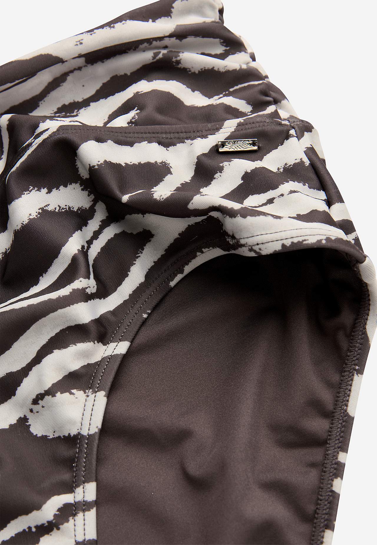 Mønstret bikinitruse i resirkulert polyester. Justerbar høyde i midjen med sammenleggbar kant perfekt for enhver stil. Rynkedetaljer ved sidesømmen. Helfôret innside både foran og bak.