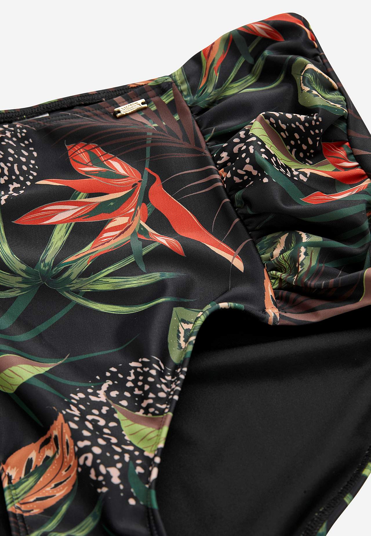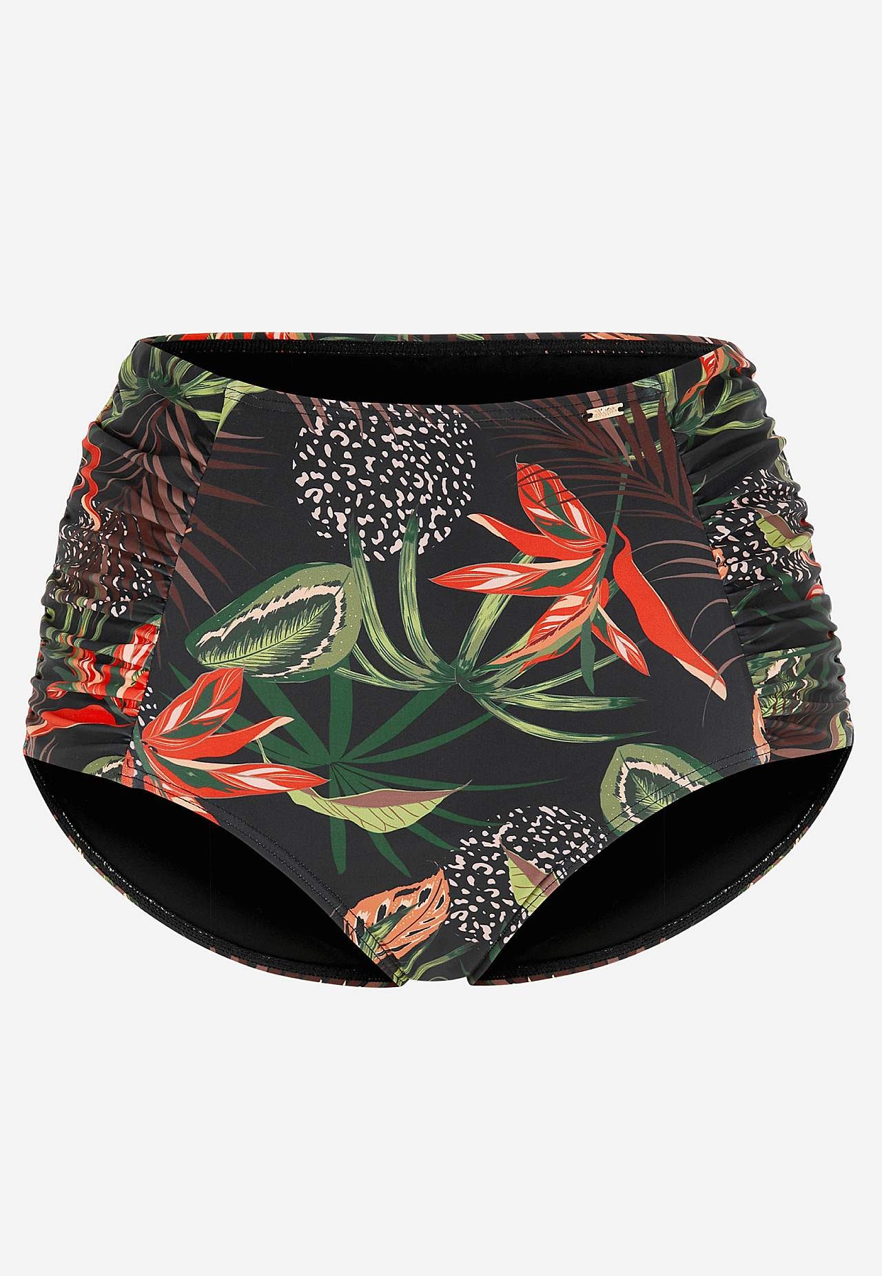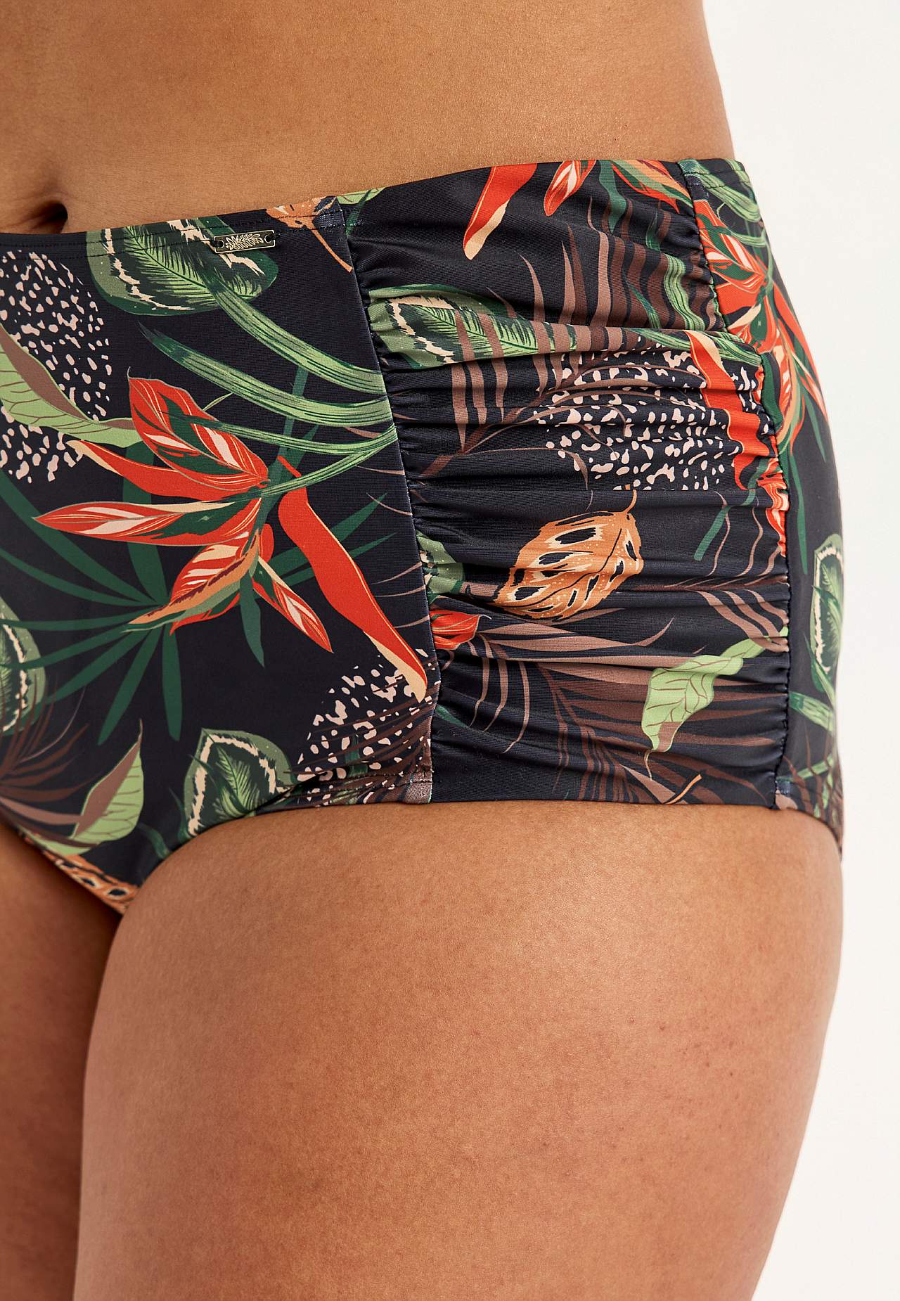 Bikiniunderdel i resirkulert polyester. Høy midje. Vakkert mønster både foran og bak. Dekorativ drapering i sidene. Helfôret innside.