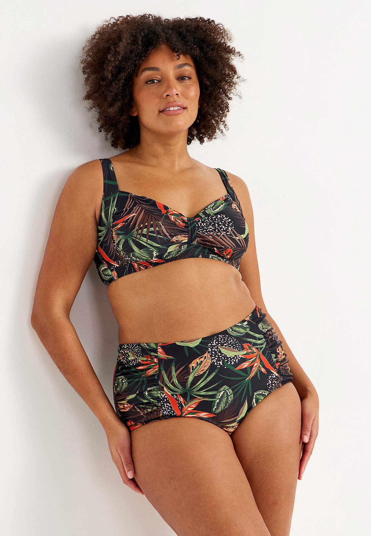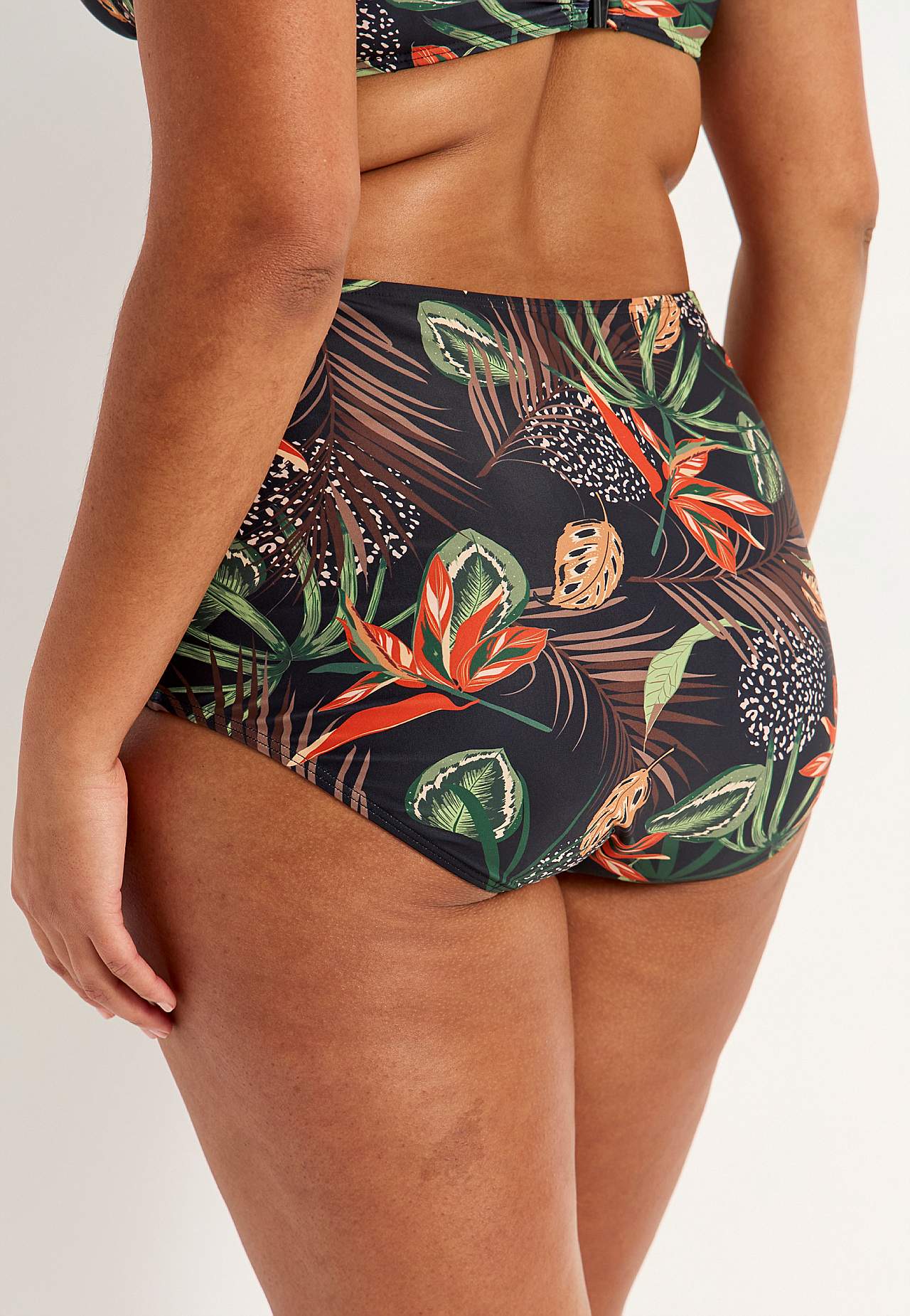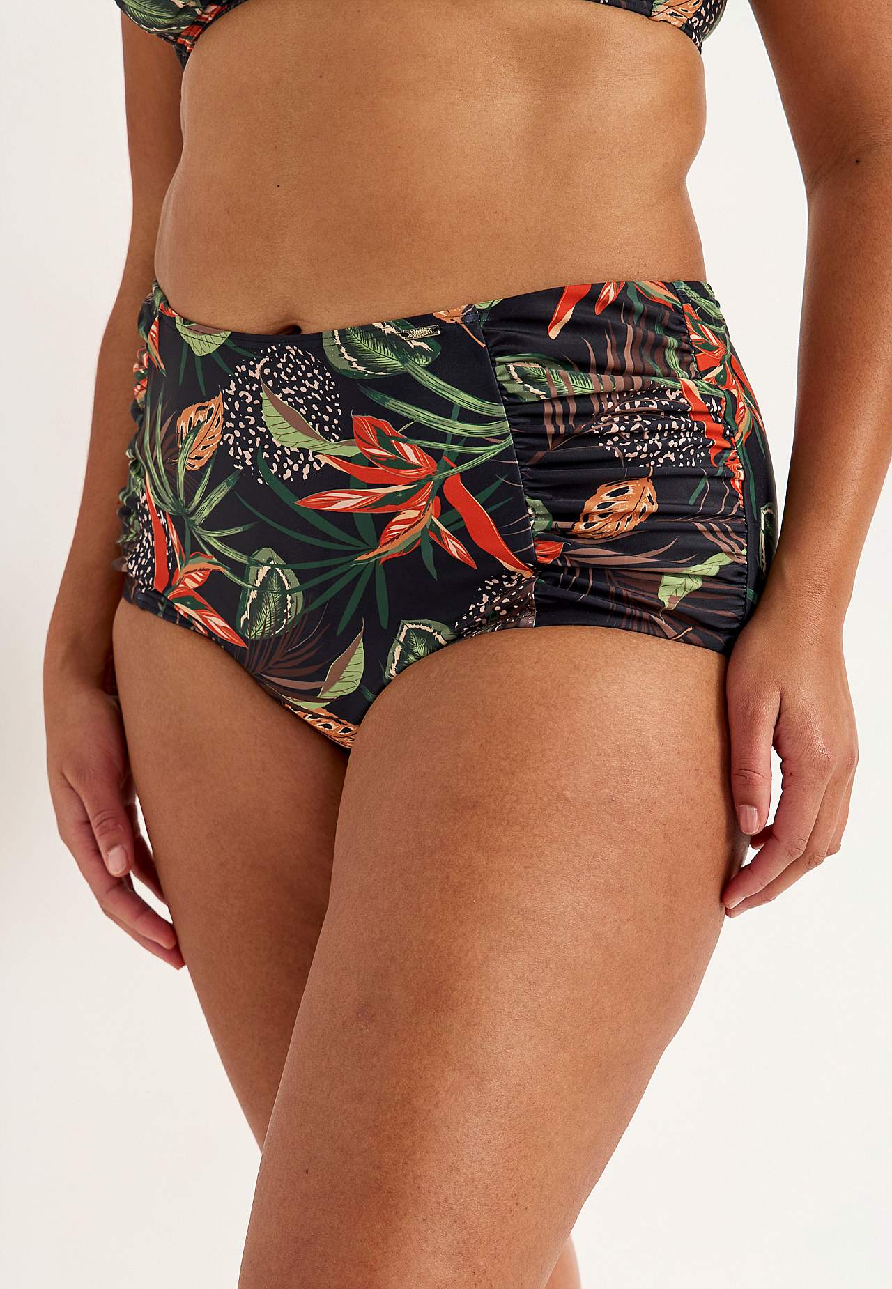 Bikiniunderdel i resirkulert polyester. Høy midje. Vakkert mønster både foran og bak. Dekorativ drapering i sidene. Helfôret innside.