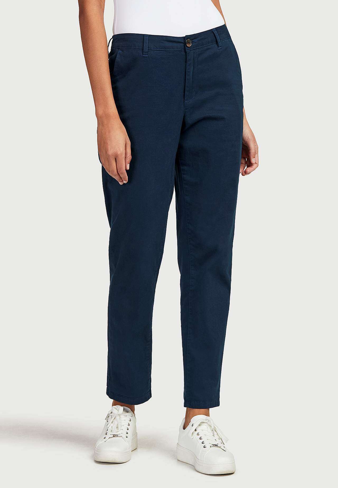 Komfortable chinos med ankellange ben. Normal midje med rett design. Lommer i siden og dekorative lommer bak . Indre benlengde følger størrelsen, ca. 73-76 cm.
