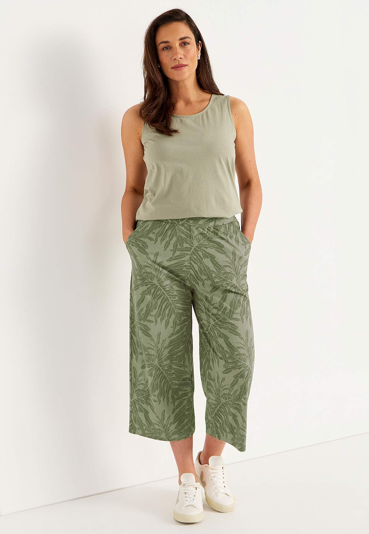 Culottebukse i organisk bomull med lommer