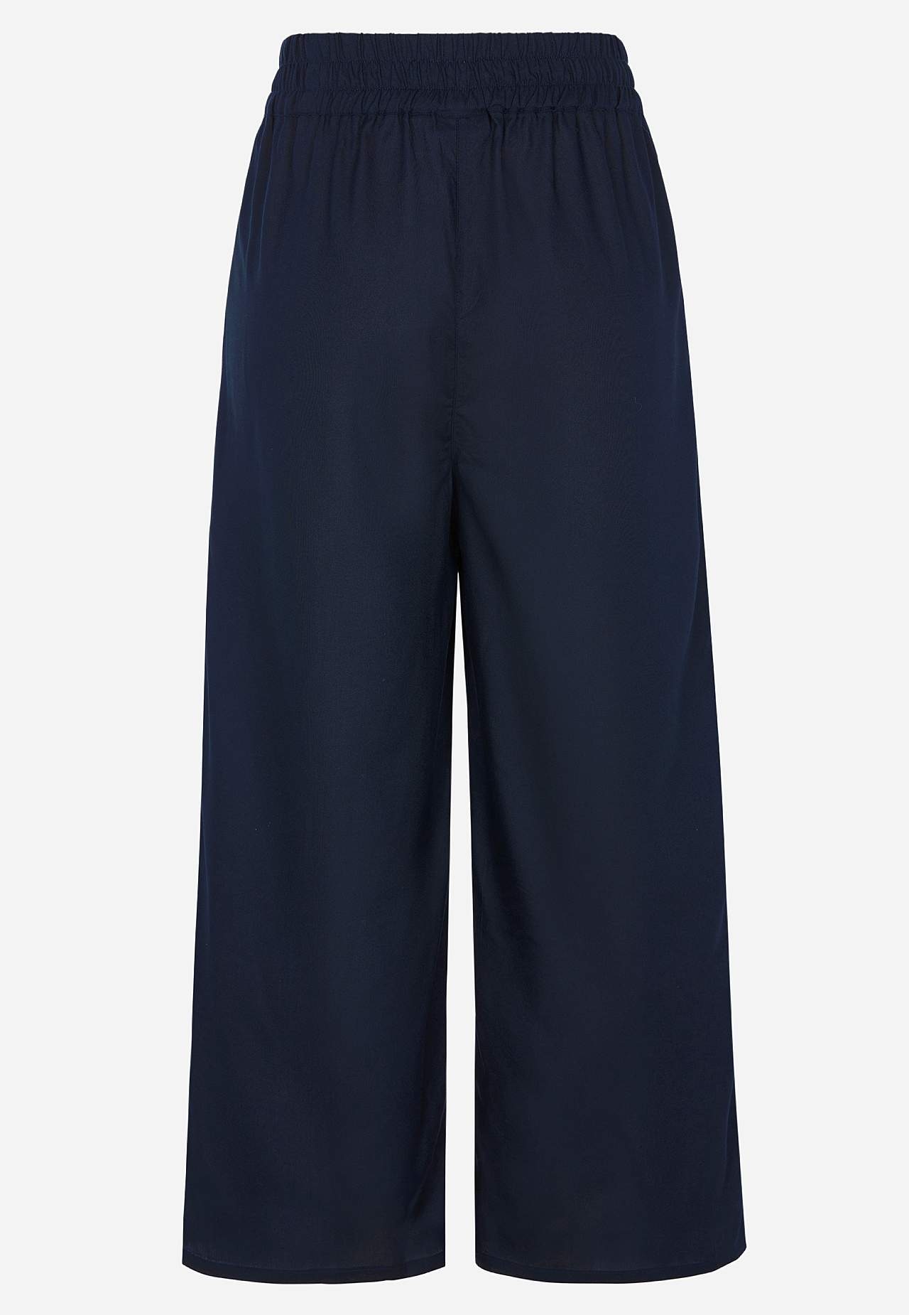 Vevet, luftig culottebukse. Glatt, fleksibel, kjølende viskose. Bredt, mykt elastisk midjebånd. Skråe lommer foran. Indre benlengde ca. 60 cm i alle størrelser. Matche gjerne med 702443.