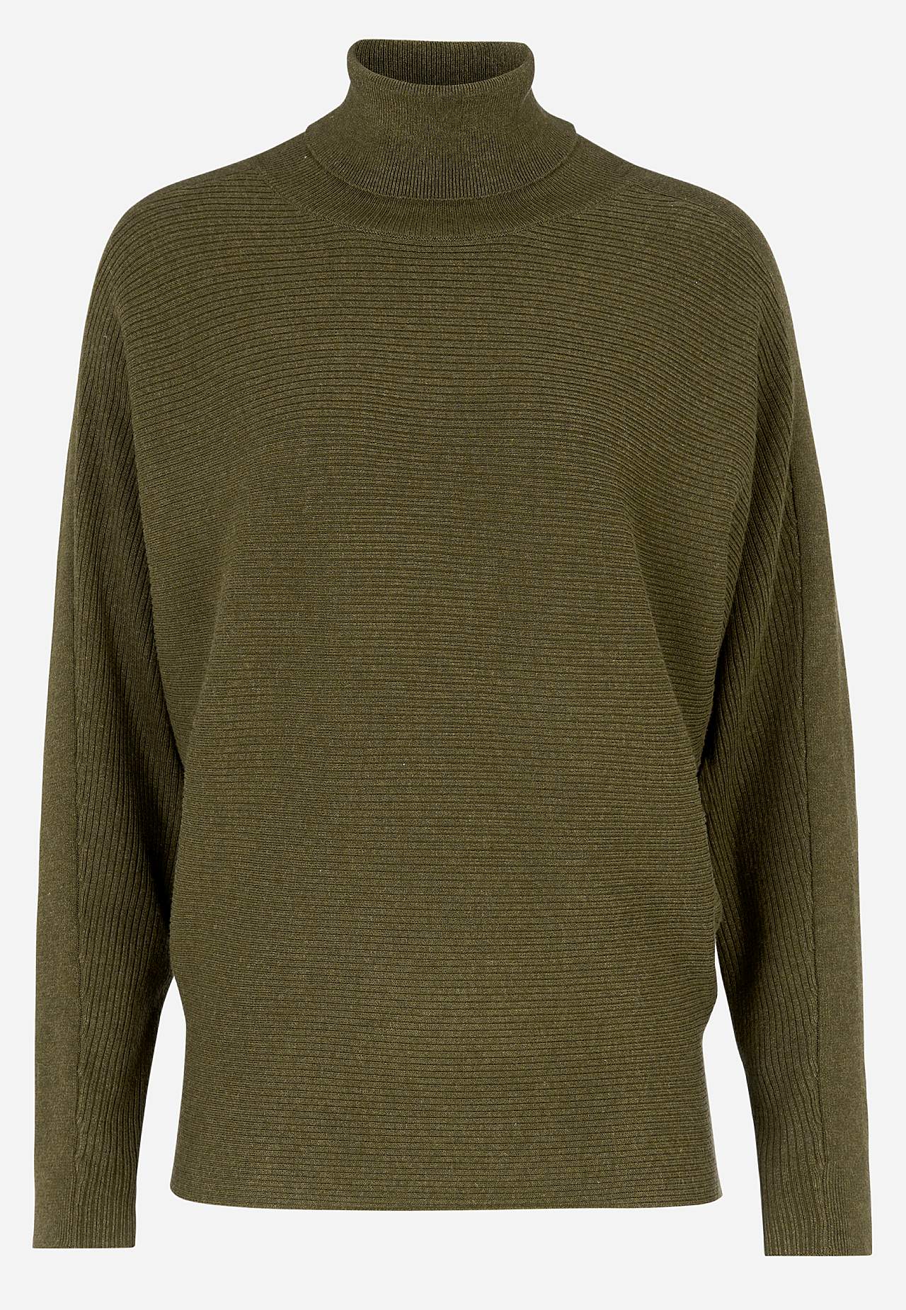 Genser med horisontal ribbestrikk. Normal passform. Mykt materiale med lett lysskinn. Sammenleggbar polokrage. Deilig pingvinerme. Rett fald. Lengde fra skulder ca. 63 cm i størrelse S (38).