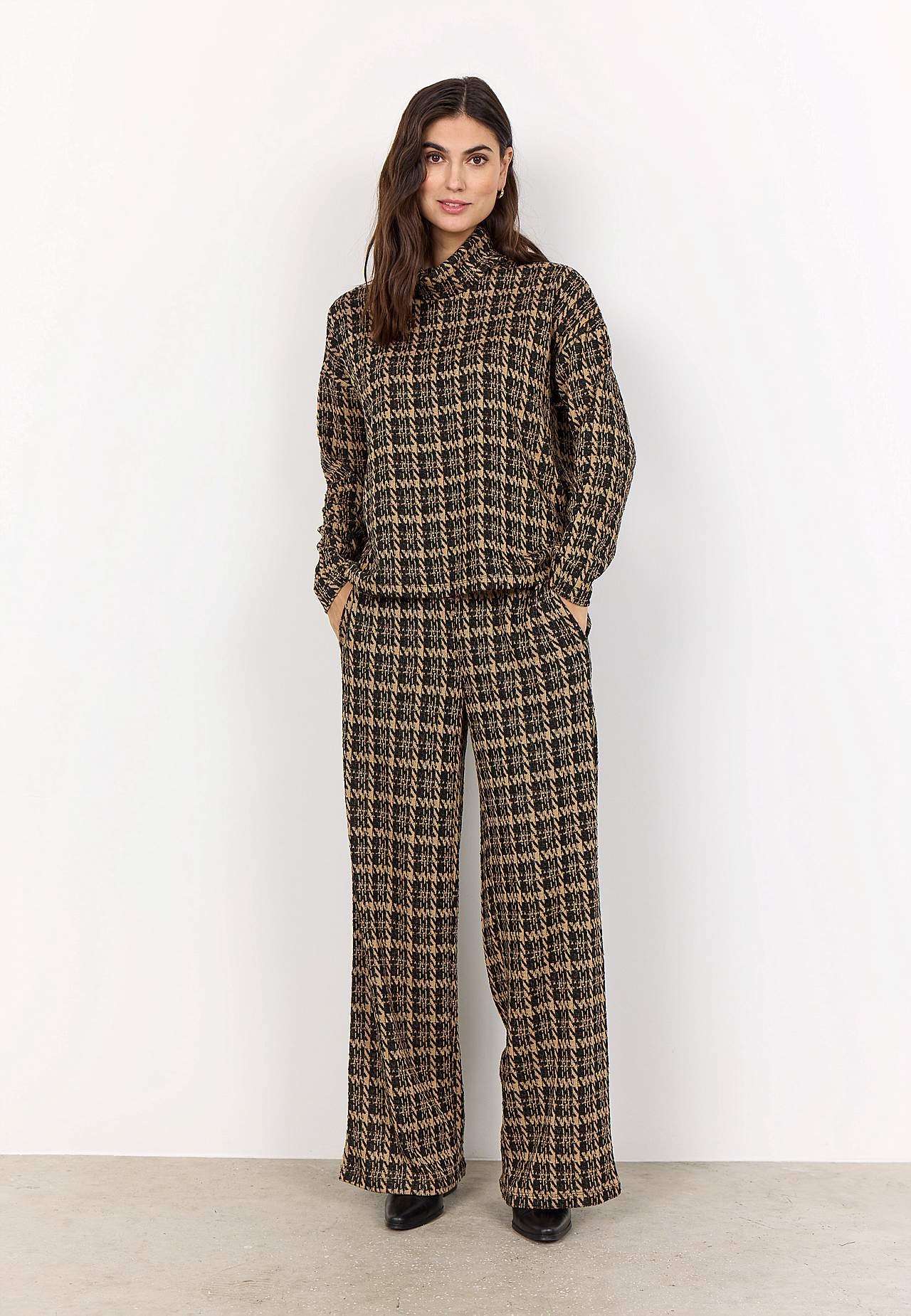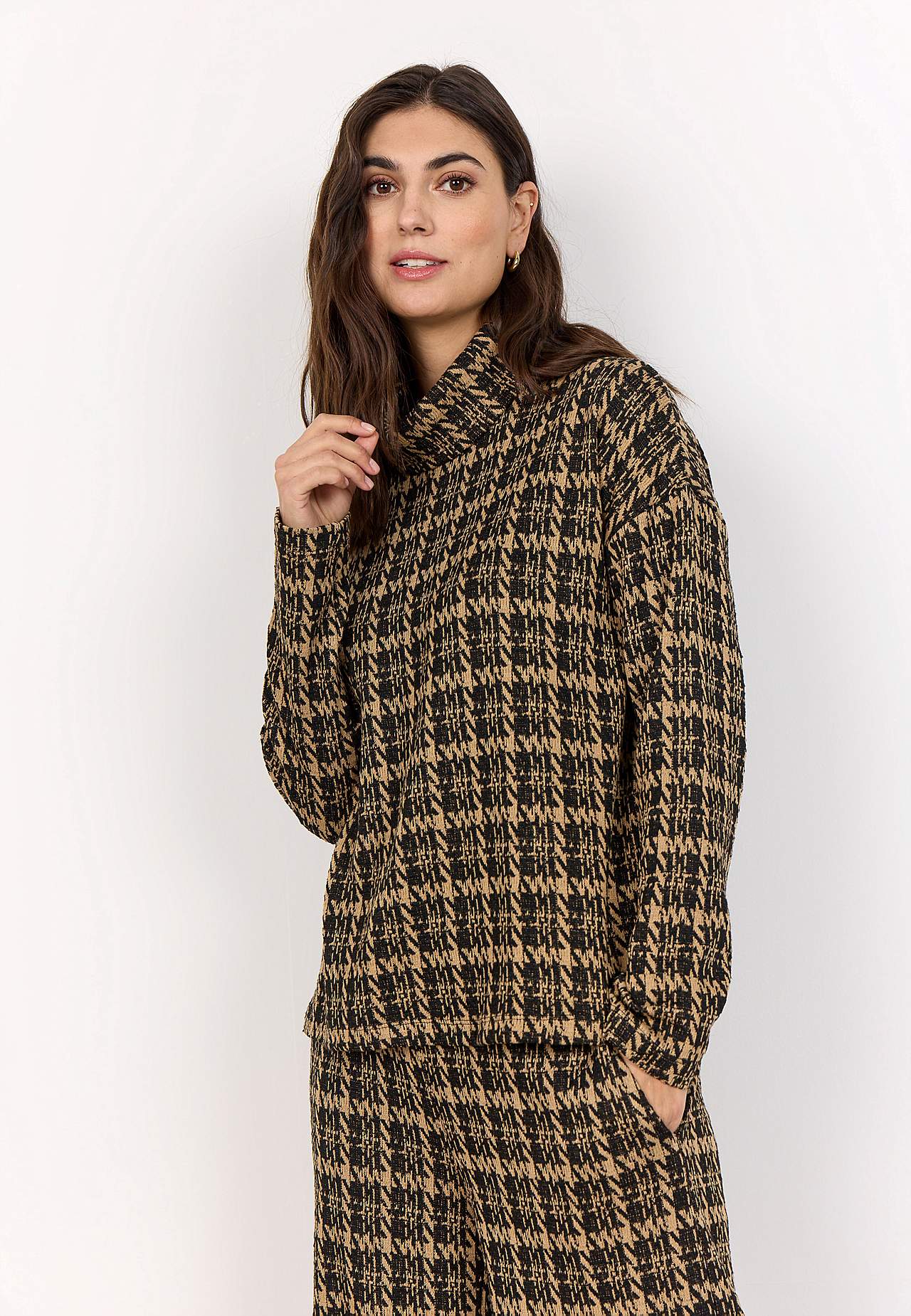 Rutete genser i myk, noe grovere jacquard-strikk. Romslig pologenser. Rett passform. Droppet skulder. Lange ermer. Linning med rett snitt. Lengde ca. 65 cm i størrelse S (38). Matche gjerne med 701098.