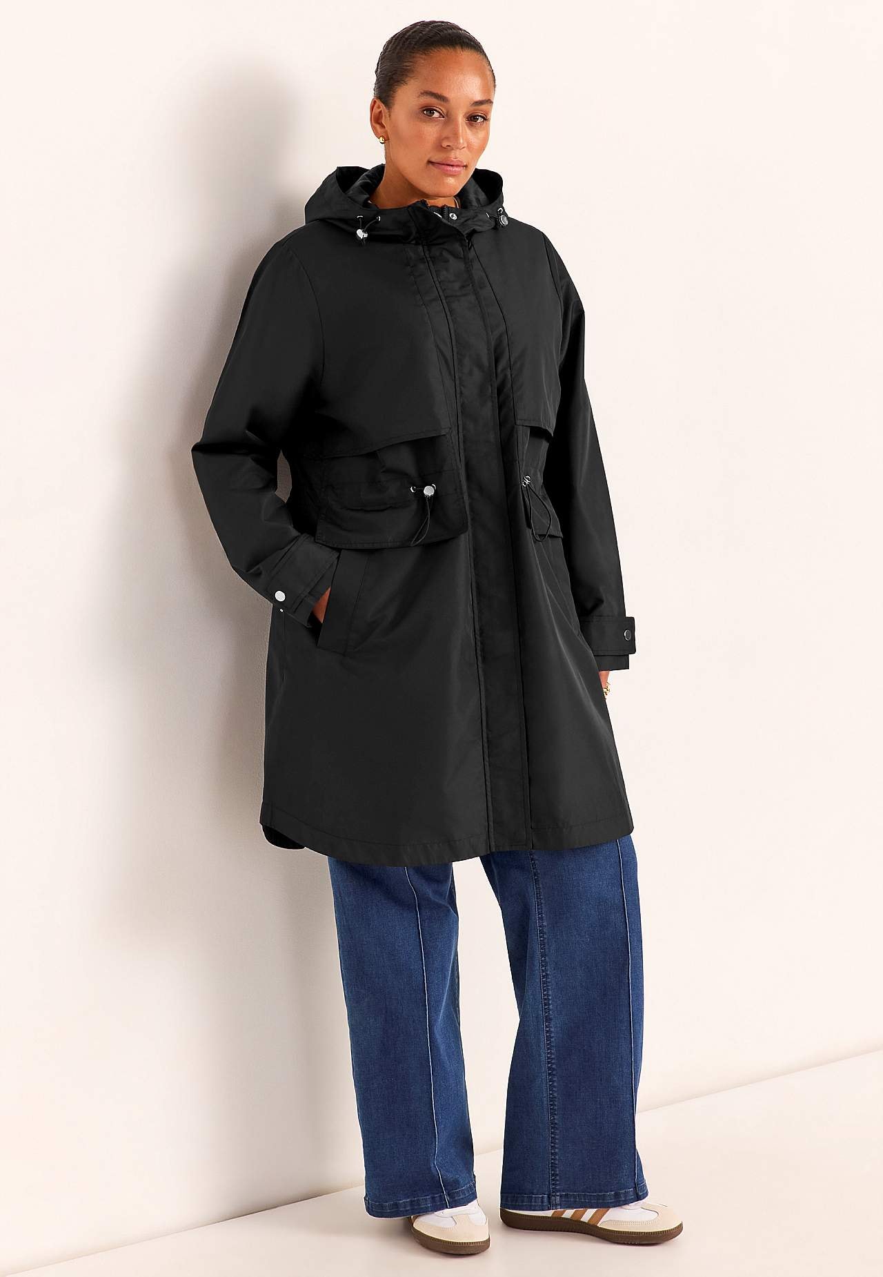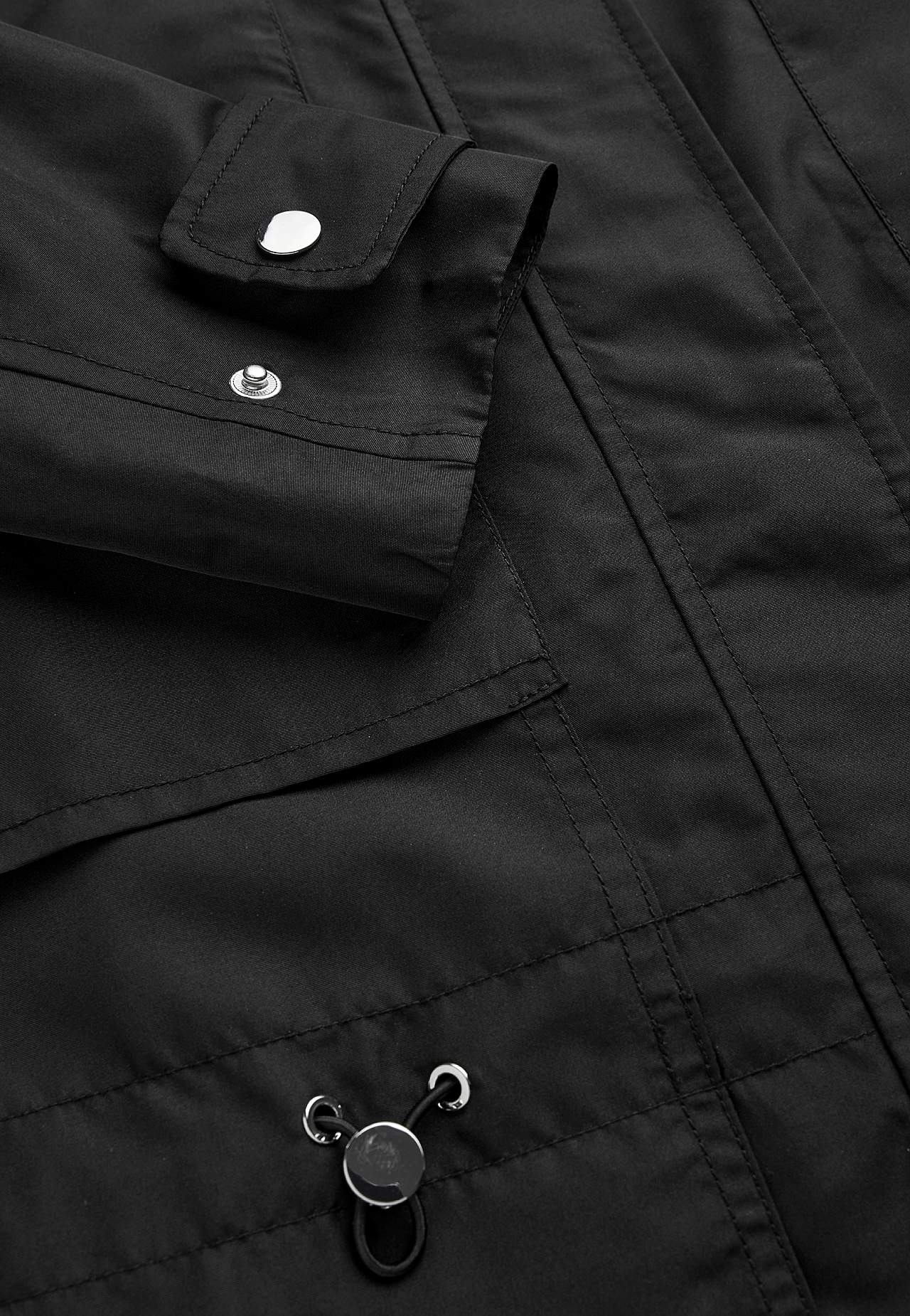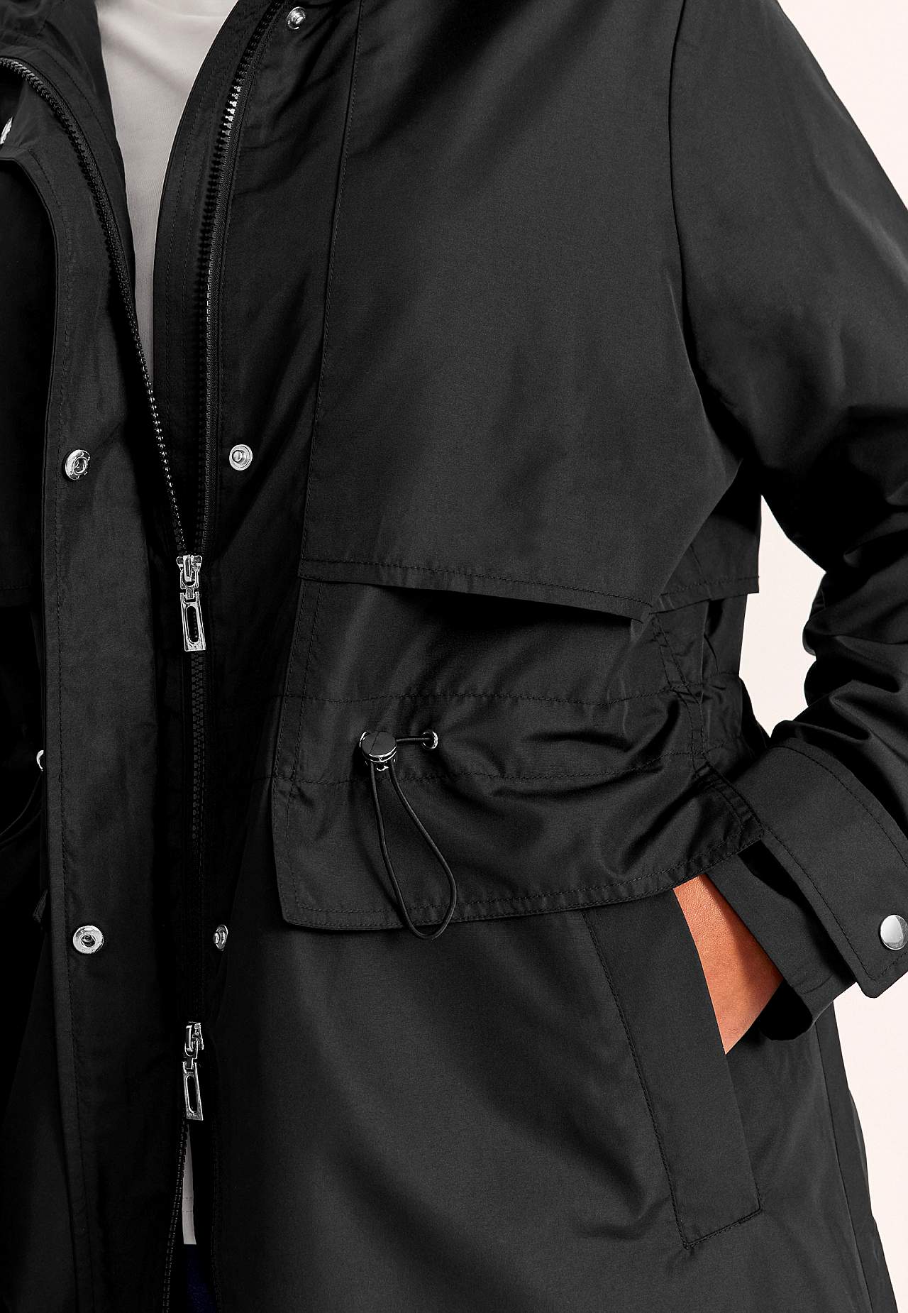 Chic parkas for bylivet. Normal passform. Vind- og vannavstøtende yttermateriale i litt blank mikropoplin. Matchende fôring i fleksibel polyester. Praktisk to-veis glidelås. Knappslag med skjulte trykknapper. Åpen bærestykke foran og bak. Justerbar snøring i midjen. Innerlomme på venstre side med borrelåslukning. Avrundet f... Les mer