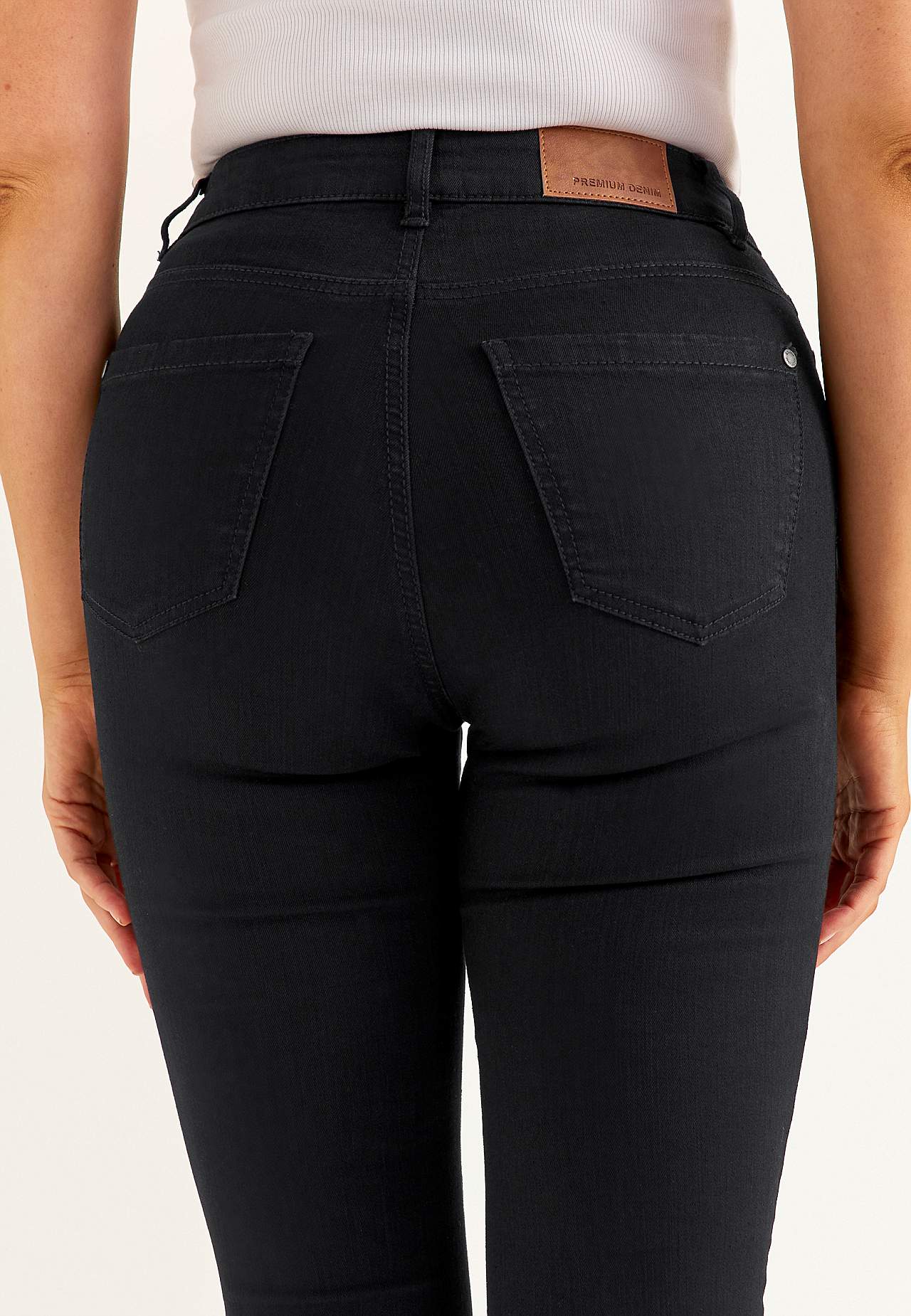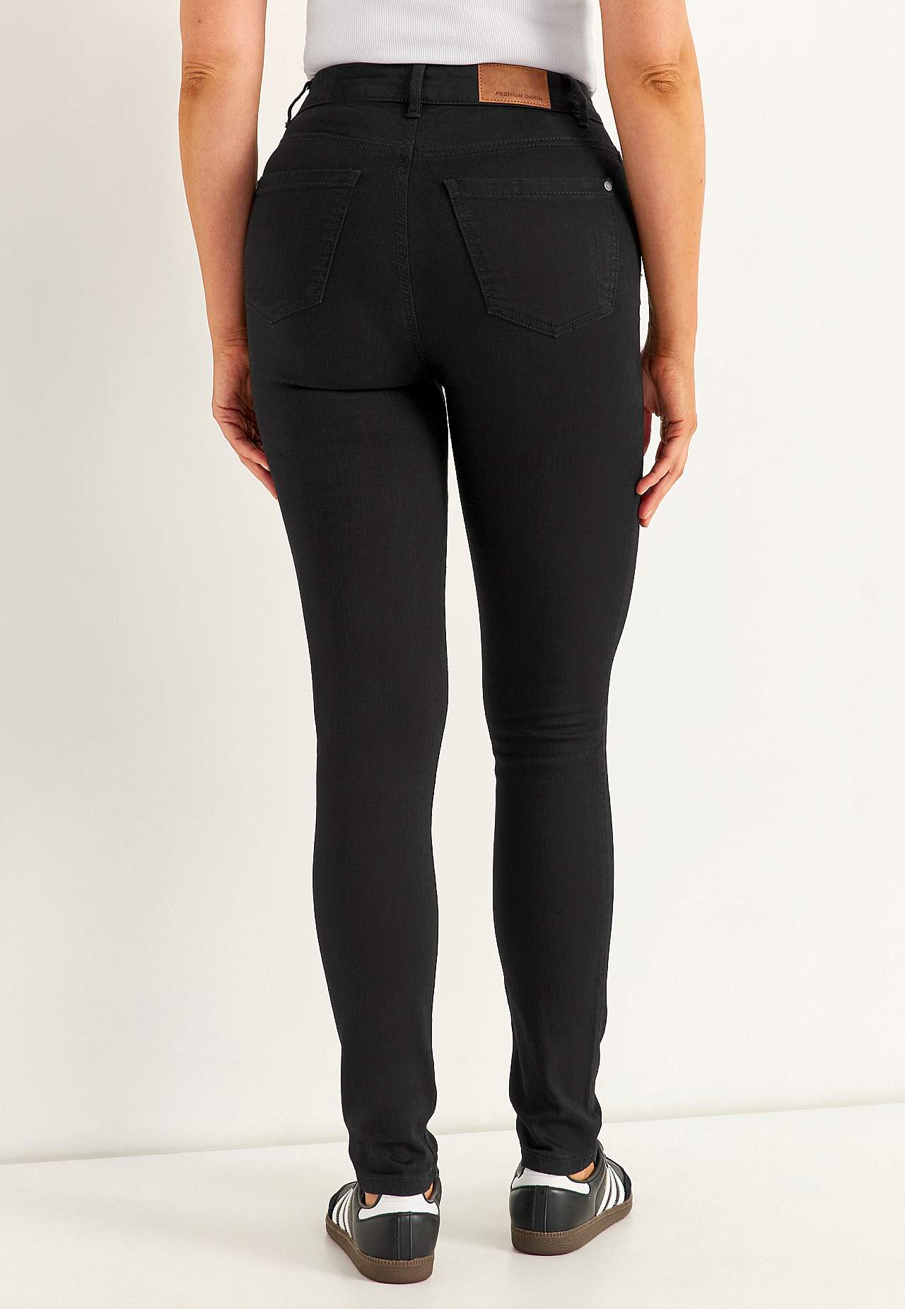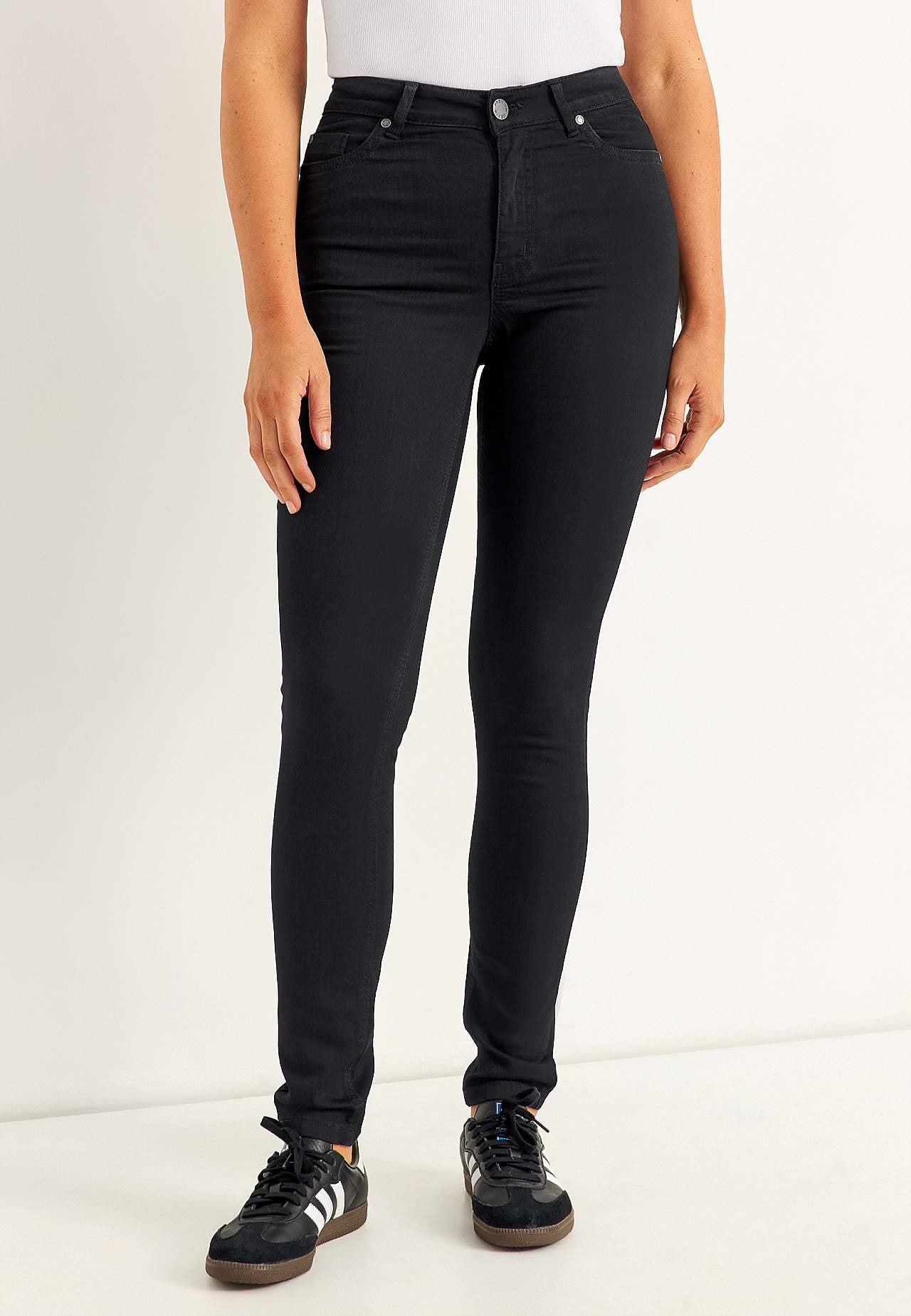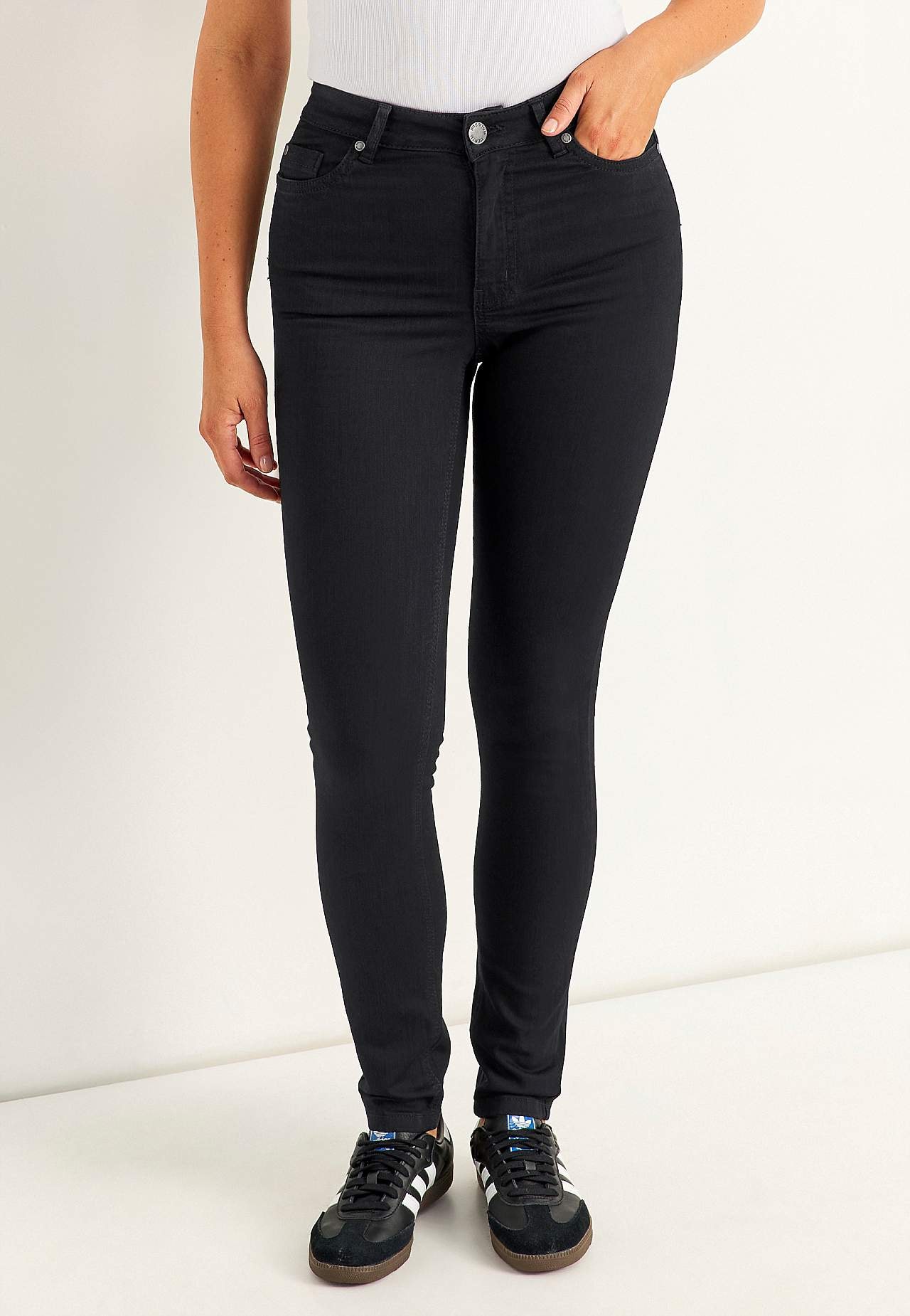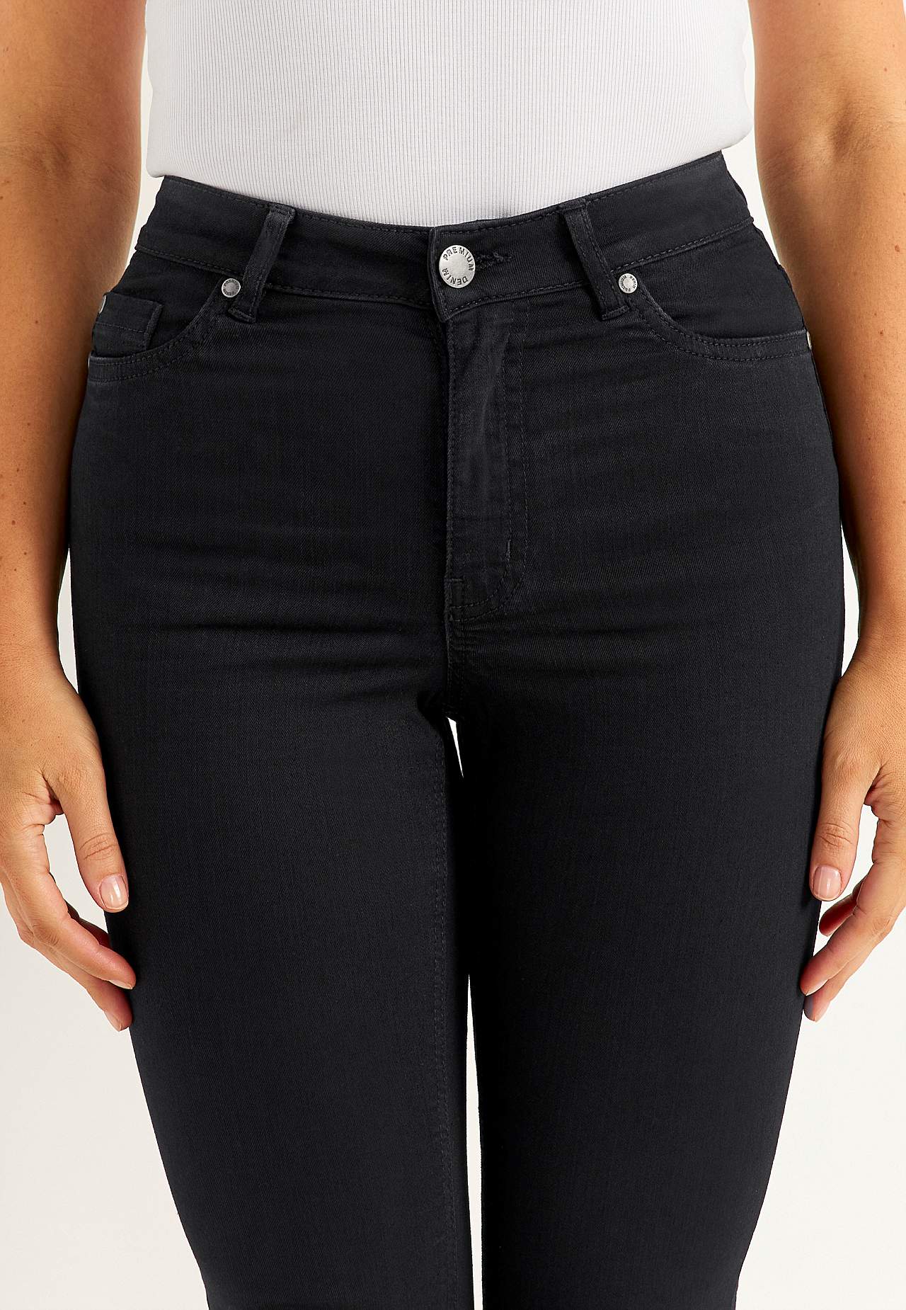Superstretchy jeans i en smal modell med en figurnær passform. Den fleksible kvaliteten følger kroppens bevegelser og naturlige kurver uten å miste formen. Superstretch bukse med 5 lommer. Formsydd linning med beltestropper. Figurnær passform modell med smale benender. Høy midje. Lynlås. To indre benlengder: Kort ca 76 cm. ... Les mer