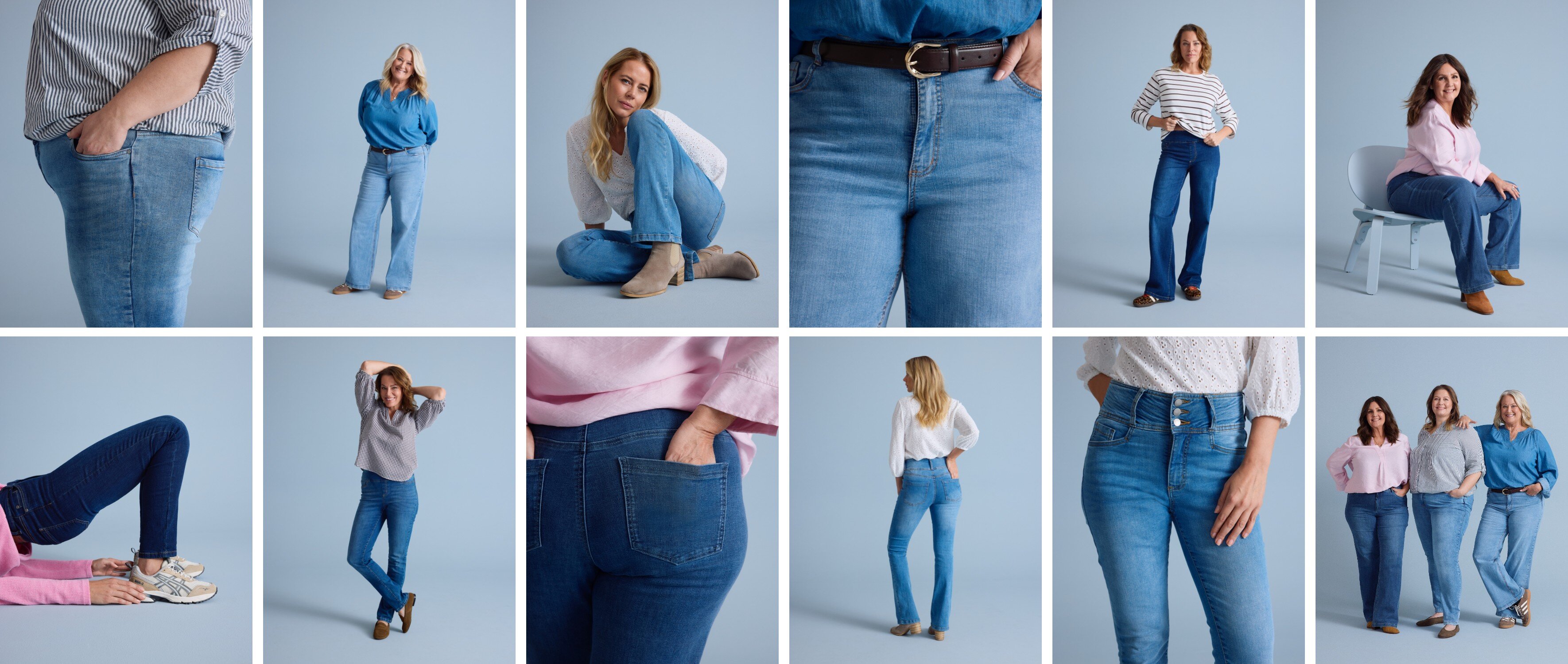 Ja, jeans er virkelig alltid på moten, år etter år. Det er få materialer som er like elsket og stadig tilbakevendende i moten som jeans. Her finner du jeans for kvinner som sitter virkelig godt. De fleste av våre jeans er laget av behagelig stretchstoff, som gjør dem veldig komfortable å ha på. De tilpasser seg kroppen din og bevegelsene dine, og du kan ha dem på hele dagen uten å føle deg stiv eller ukomfortabel. De er designet for å passe alle kroppsformer og er tilgjengelige i størrelsene 34-64.