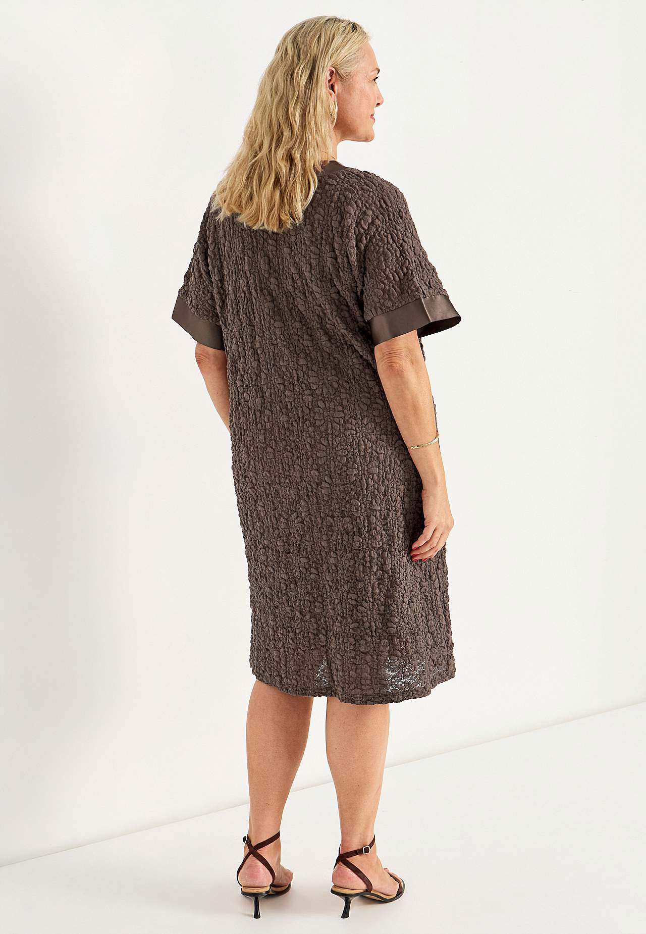 Fôret festkjole i nydelig, stretchy trikot med blonder. Elegant satengkant på halslinjen og på enden av ermene. Myk, stretchy fôring i jersey. Litt a-linjeformet, oversize passform med litt nettere øvre del. V-ringning med satengkant. Vidt, ufôret kaftanerme med satengkant på enden av ermene. Rett fald. Lengden følger størr... Les mer