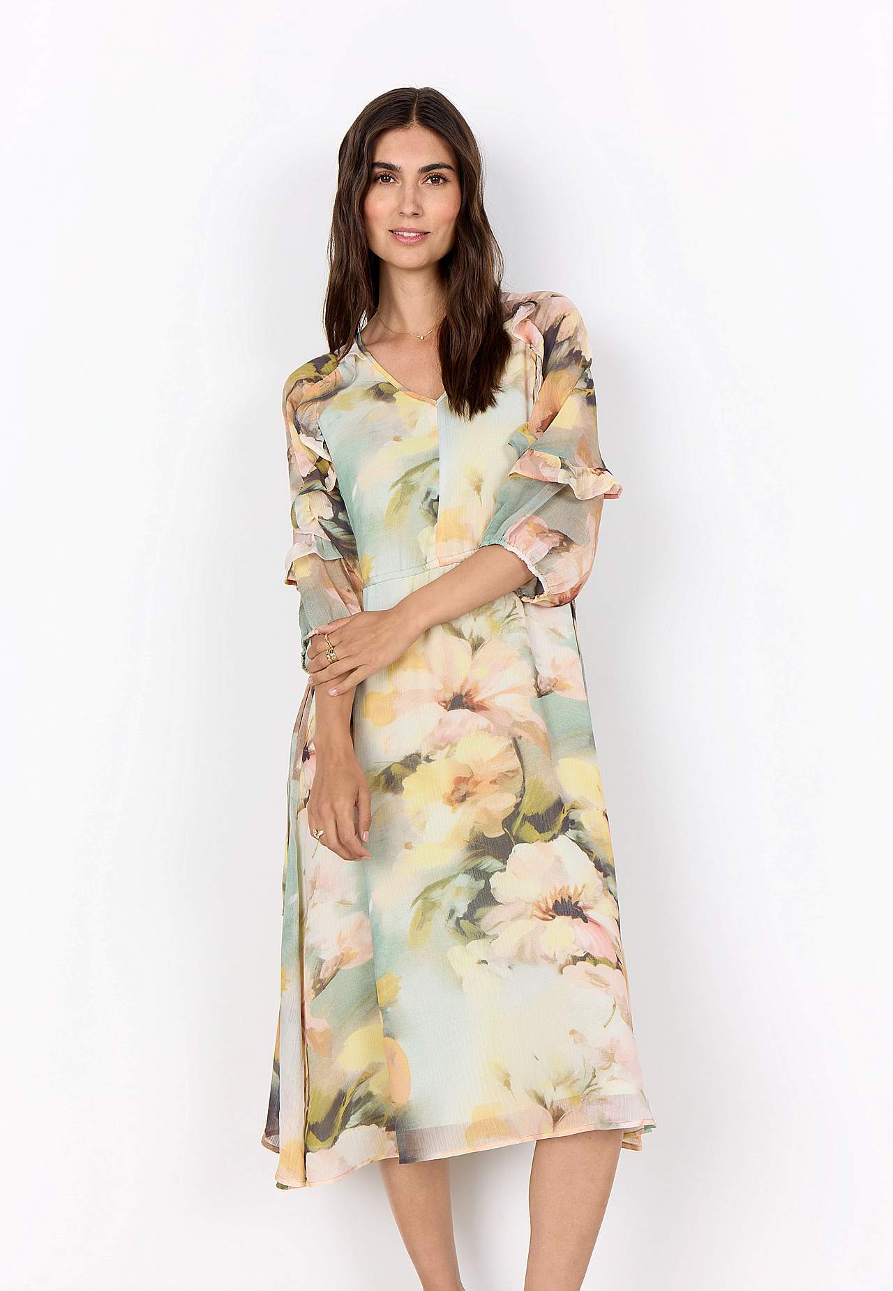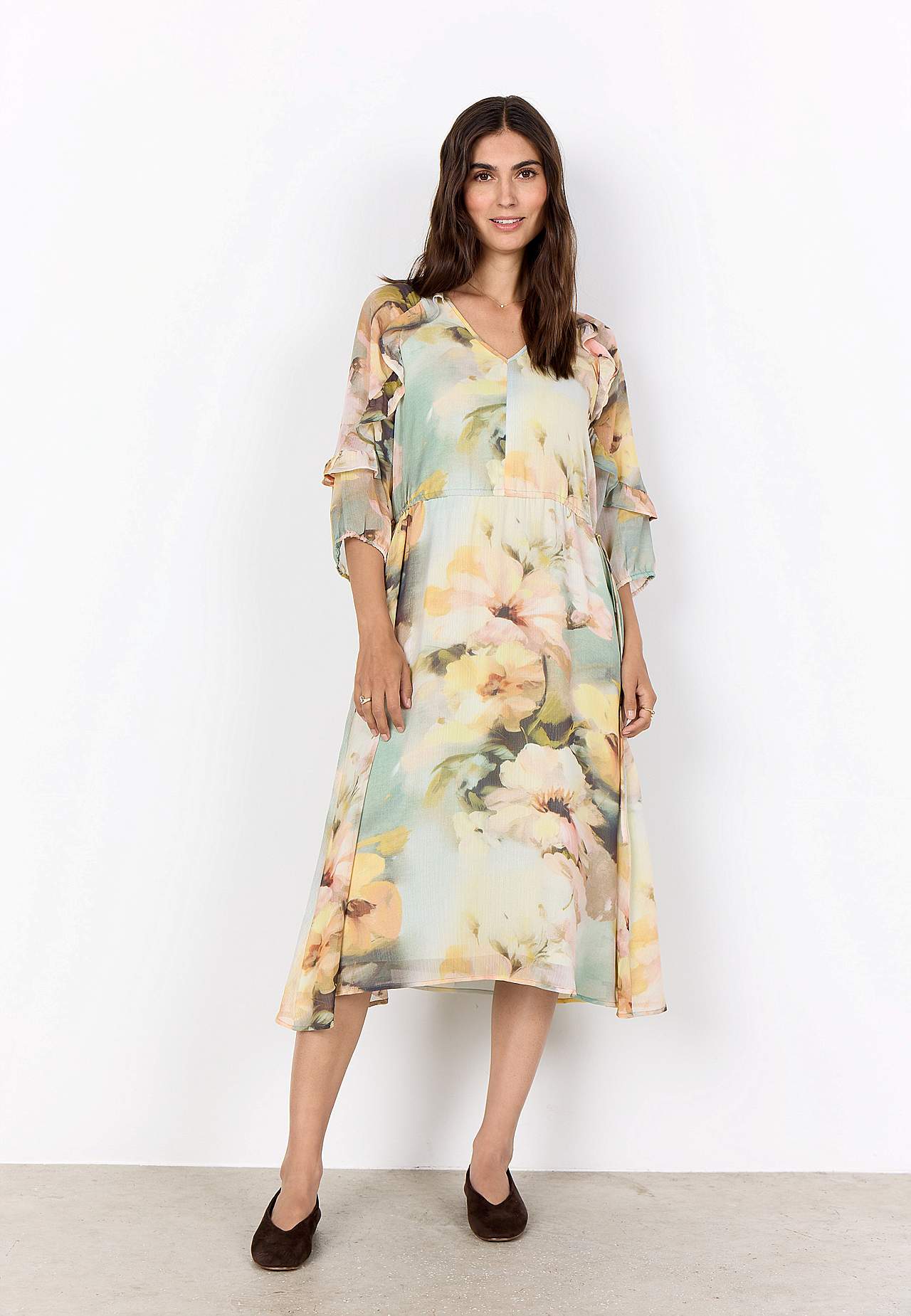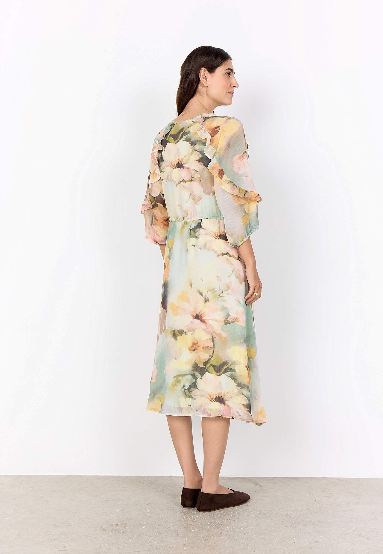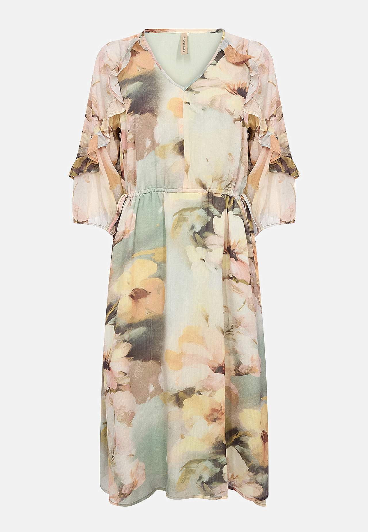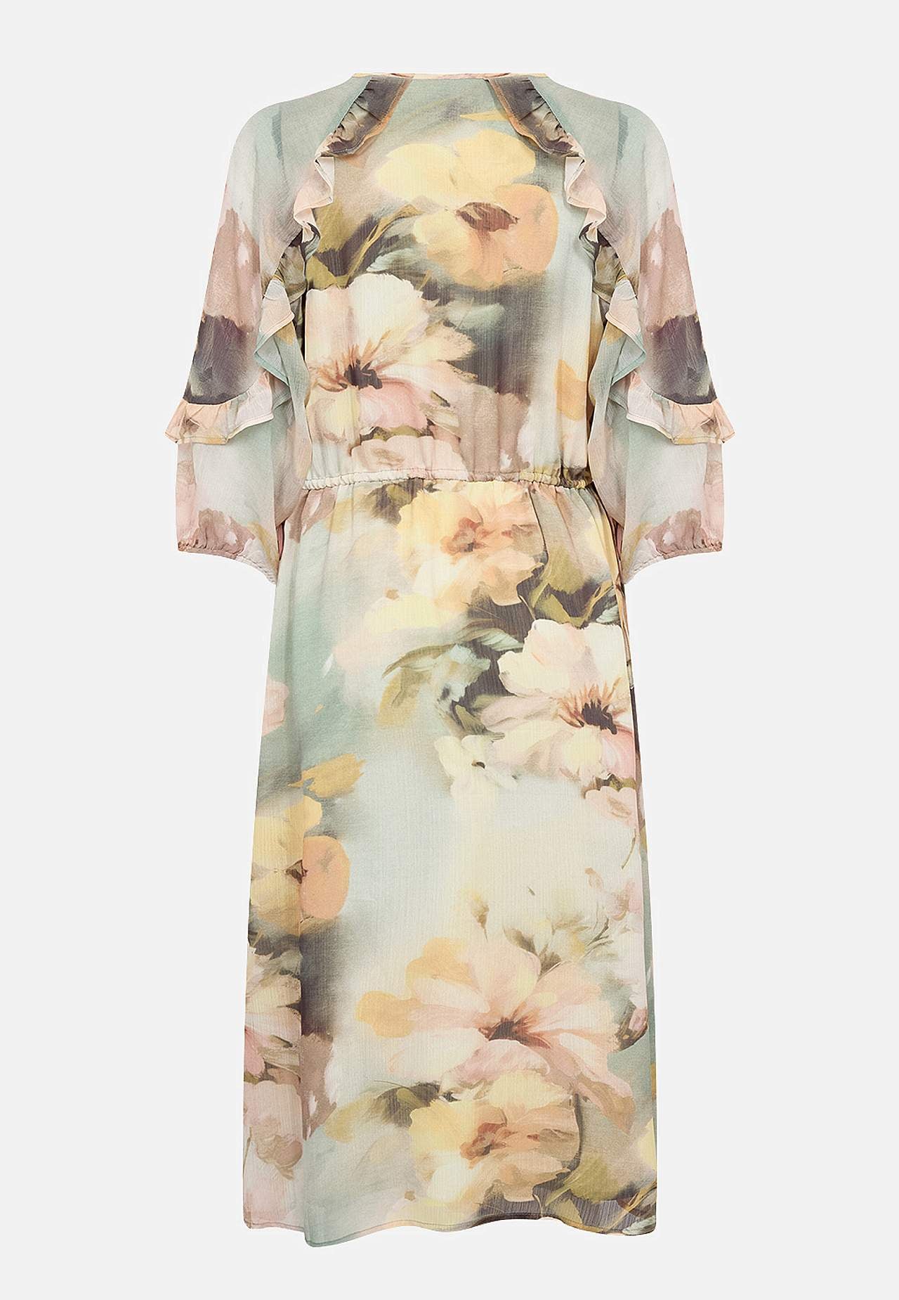 Luftig materiale med matt overflate og fin struktur. Myk, fleksibel fôring i viskose. Normal passform. 3/4-lange, ufôrete raglanermer med volang og strikk i ermeslutten. Skjulte knytebånd i midjen. Lett å tilpasse og knytes på begge sider. Velg selv, løst eller mer innpåsittende. Lett avrundet fald. Lengde fra skulder ca. 1... Les mer