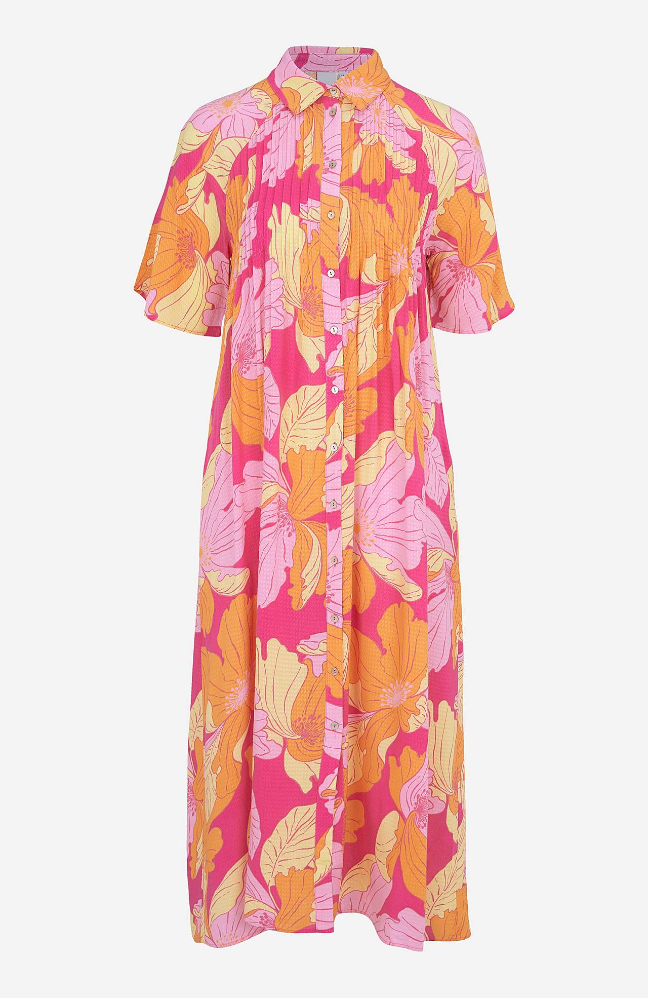 Rett, gjennomkneppet modell med skjortekrage. Mykt, fleksibel, vevet materiale med struktur. Dekorativ fold både foran og bak. Korte ermer med vakker vidde. Sidelommer. Lengde fra skulder ca. 126 cm i størrelse S (36).