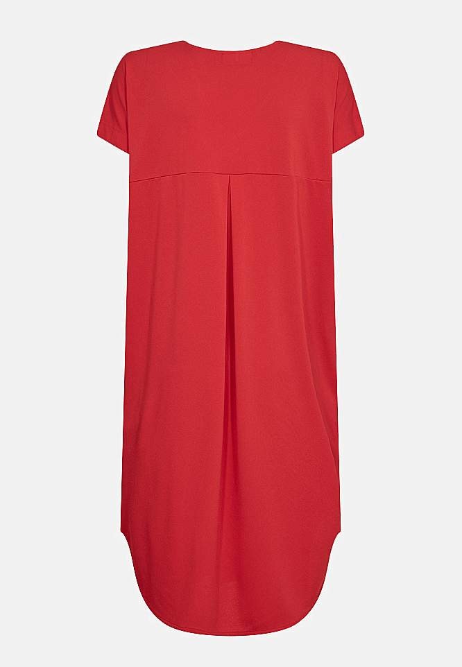 Kjole i jevn, kjølende trikotkvalitet. V-halset modell med flatterende, dekorativ fold både foran og bak. Løs passform. Korte korte ermer. Praktiske lommer i sidene. Avrundet linning. Lengde fra skulder ca. 105 cm i størrelse M (40).