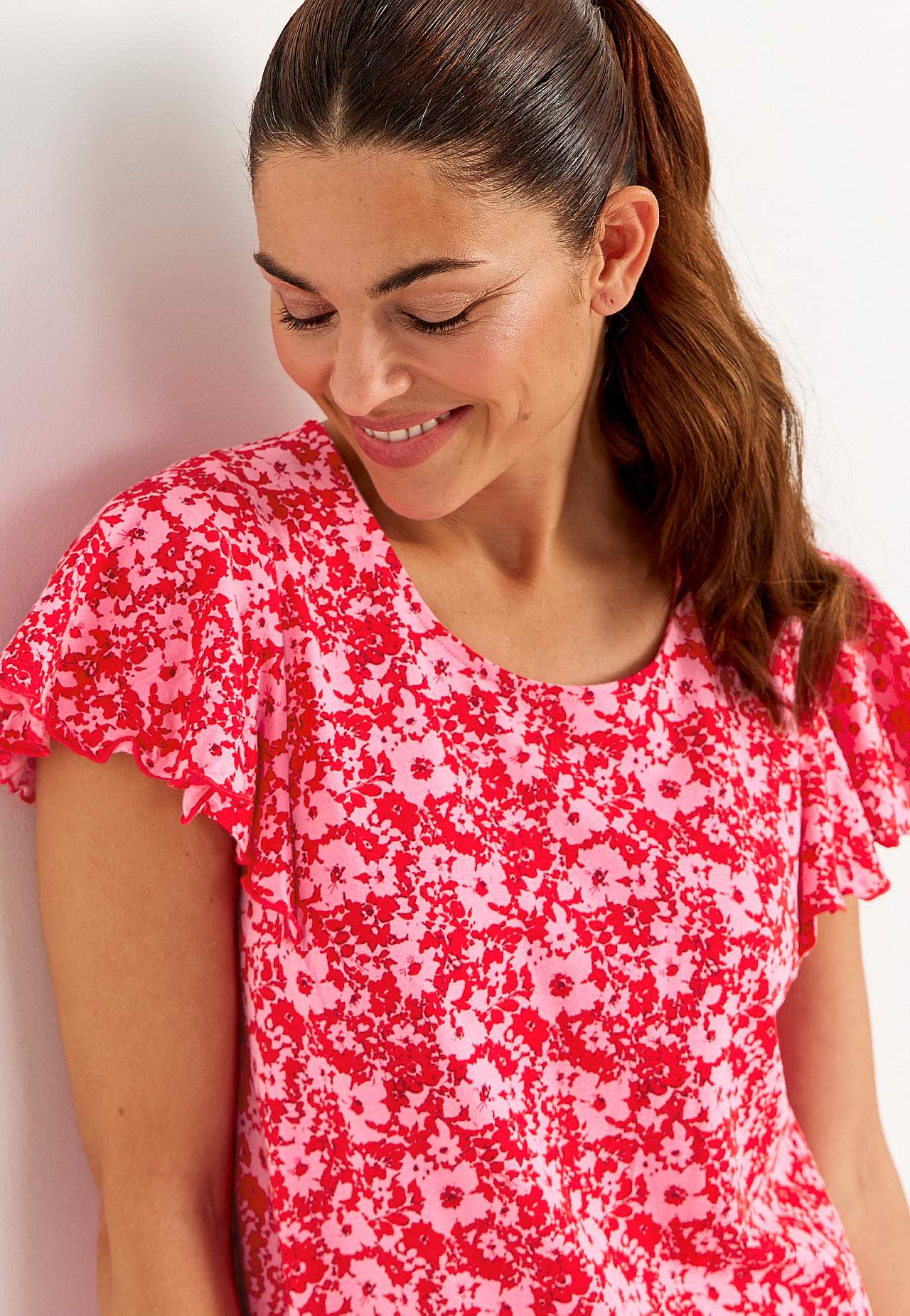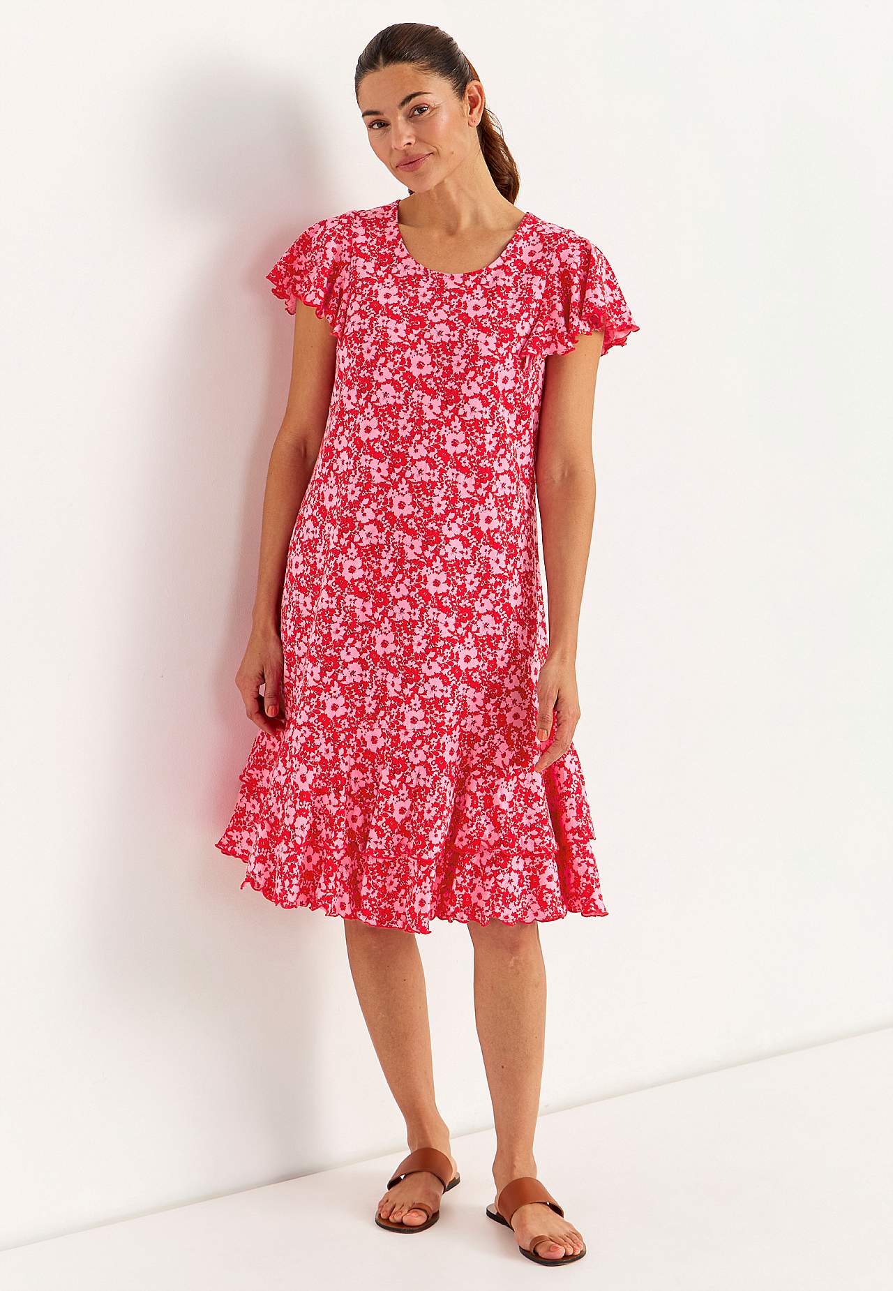 Jersey-kjole med volanger