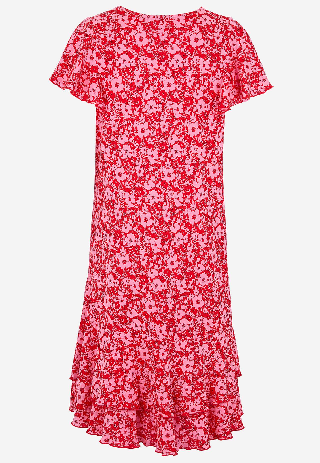 Kjole med asymmetrisk søm og doble volanger nederst. Myk jersey i bomull- og viskoseblanding. Tilpasset passform med videre skjørtedel. Rund hals. Korte sommerfugleærmer med overlocked, dekorativ, bølgete kant. Brystinnsnitt. Volanger nederst med overlocked, bølgete kant. Rygglengden følger størrelsen, ca. 104-111 cm.