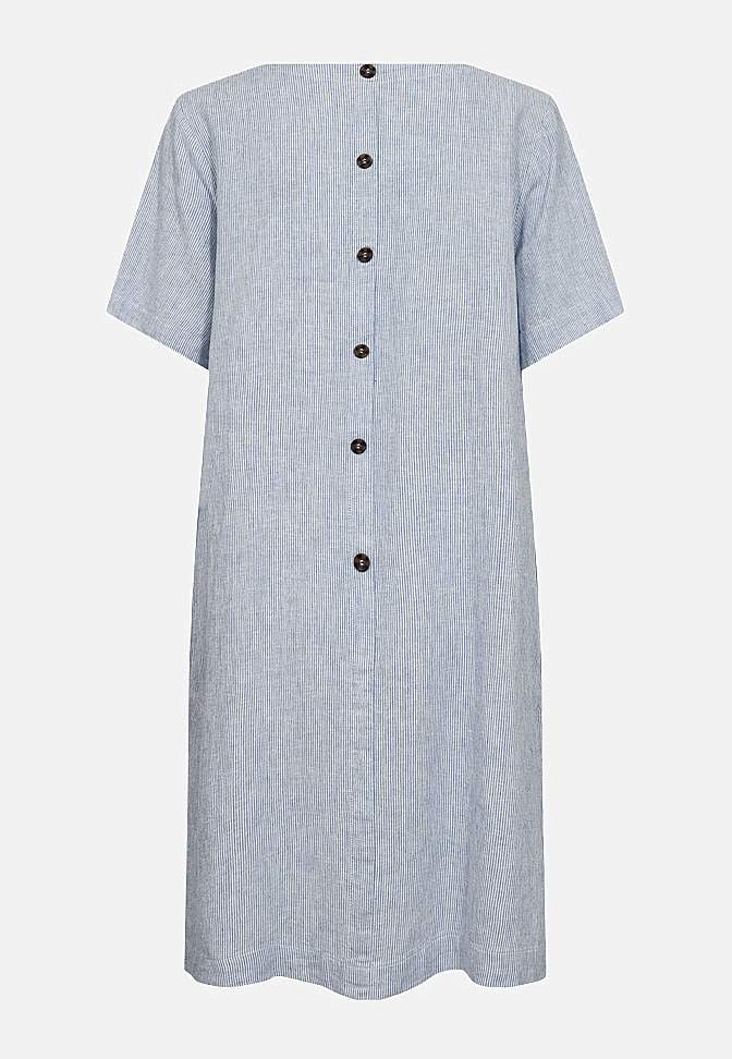 Vevet, garnfarget kjole i lin- og viskoseblanding. Fantastisk mykt, luftig materiale. Romslig passform. Avrundet hals. Brystinnsnitt. Korte ermer. Lommer i sidene. Fast knappstolpe i ryggen. Rett fald. Lengde fra skulder ca. 95 cm i størrelse S (38).