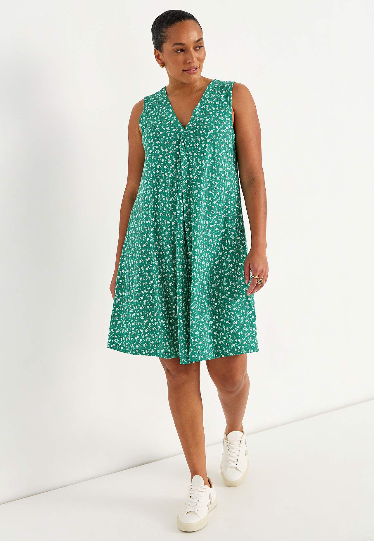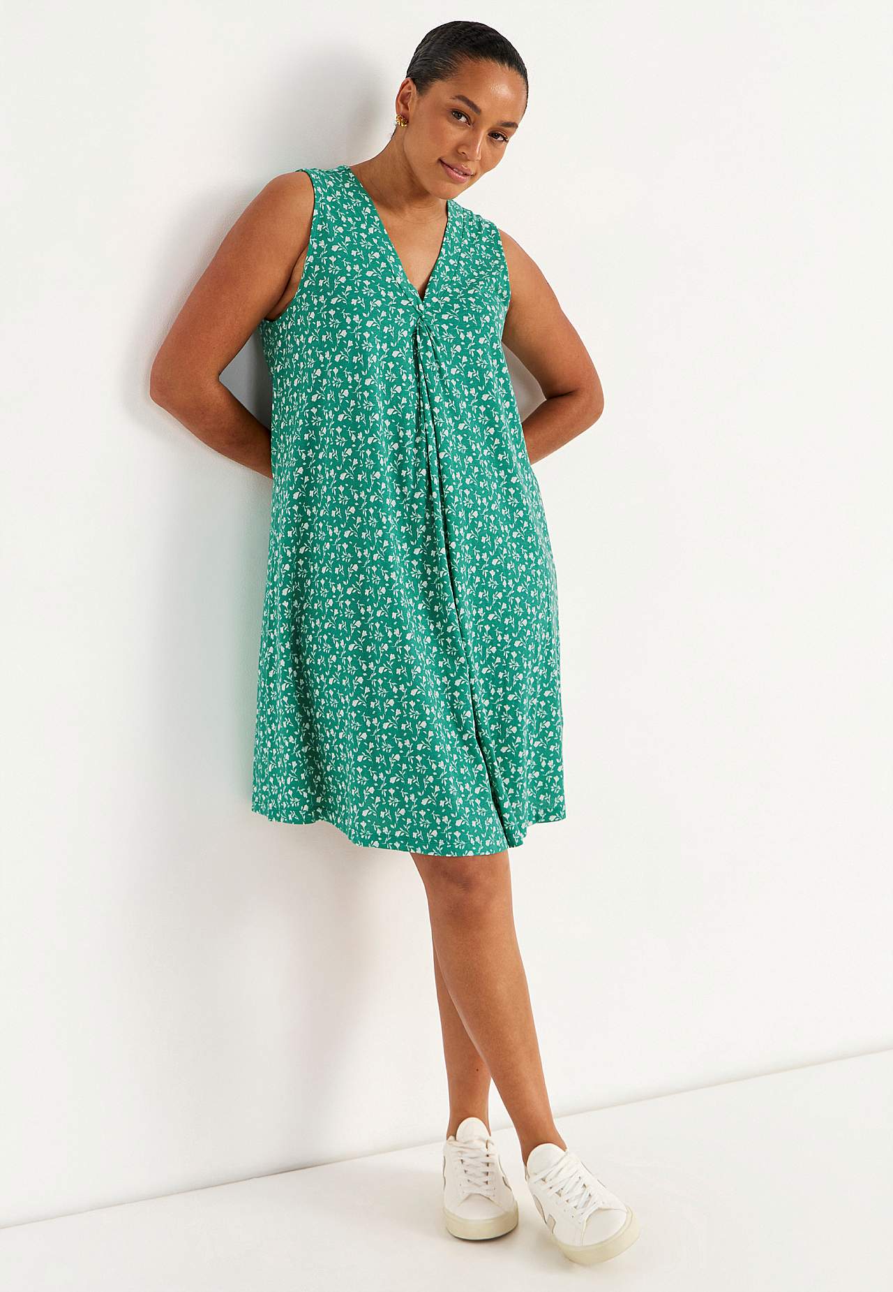 V-halset, ermløs Jersey-kjole