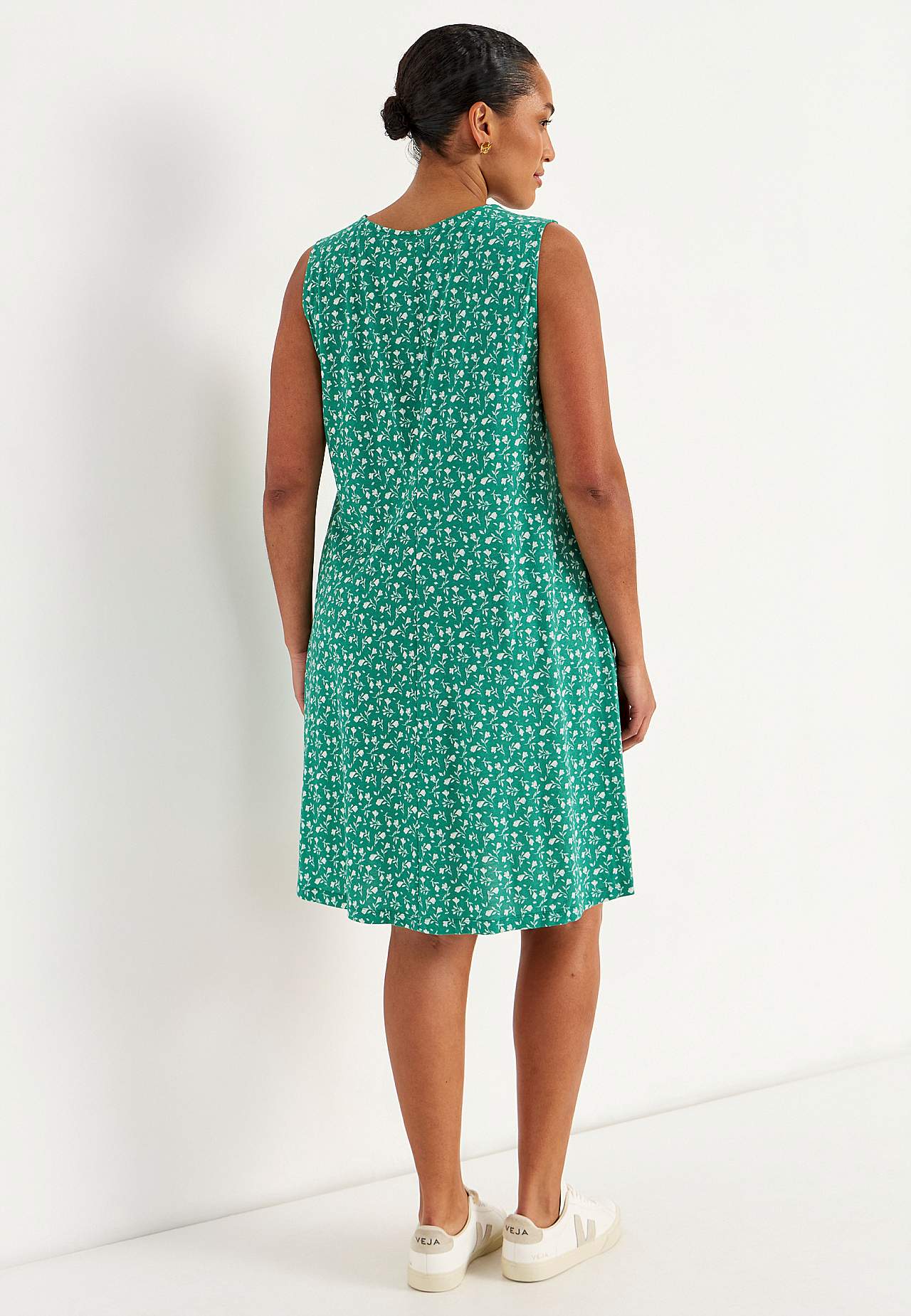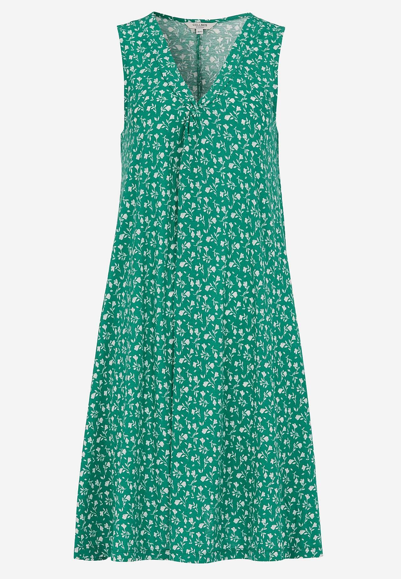Ermløs Jersey-kjole. Luftig modell i vidunderlig myk bomull- og viskoseblanding. Romslig, lett a-linjeformet passform. Lengden følger størrelsen, ca. 95-106 cm fra skulderen bak.