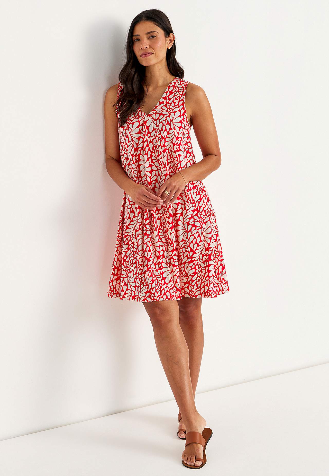 V-halset, ermløs Jersey-kjole