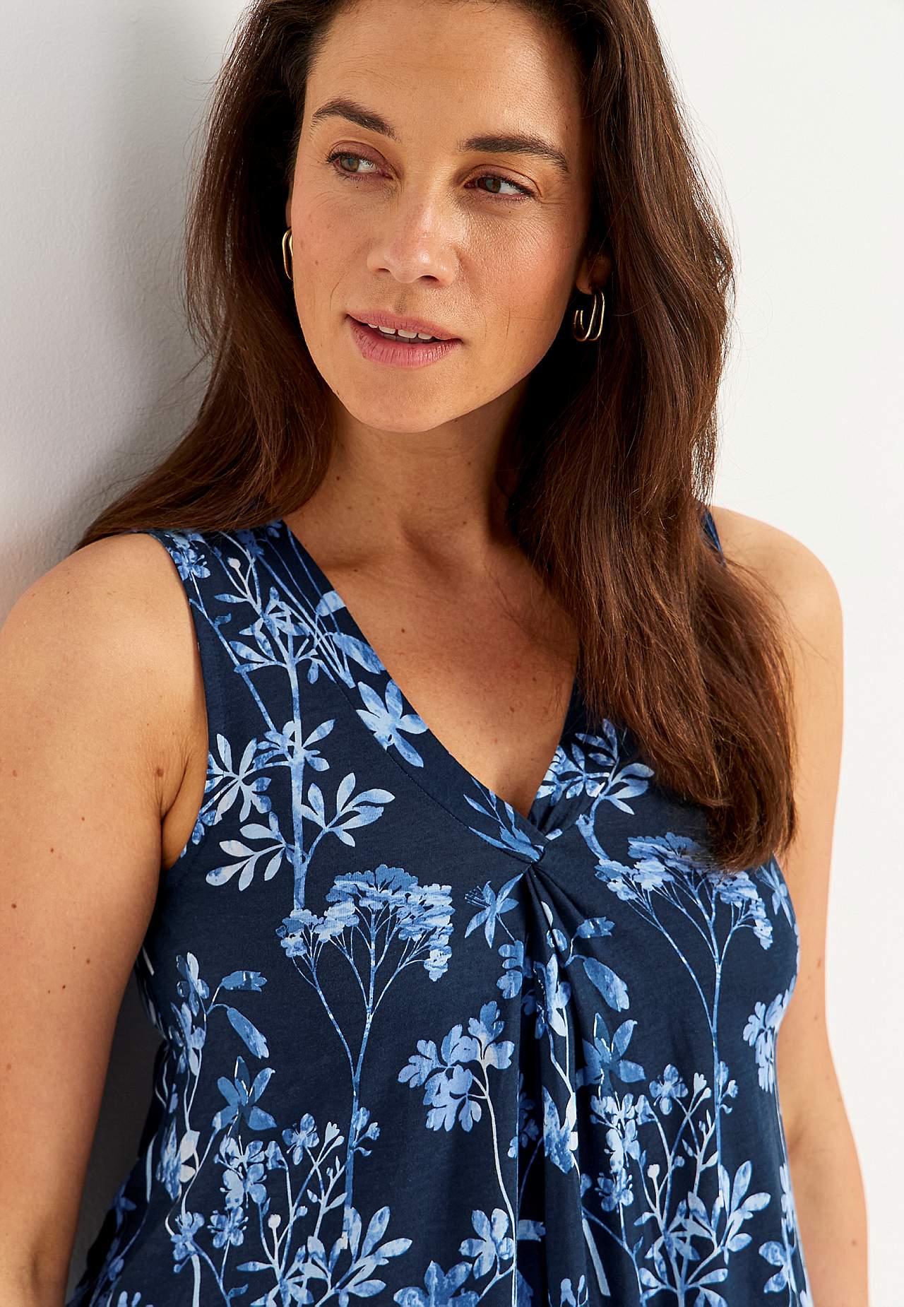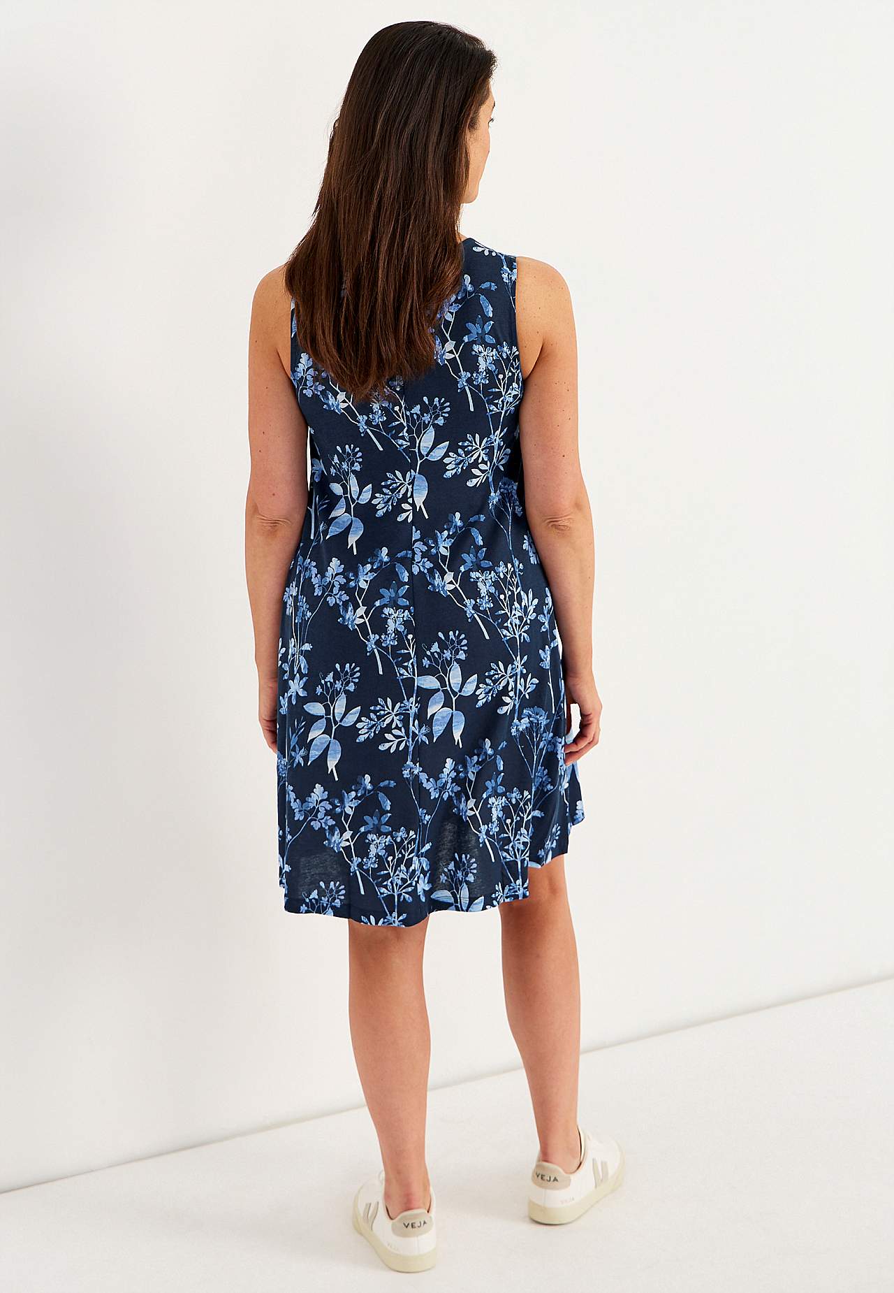 Ermløs Jersey-kjole. Luftig modell i vidunderlig myk bomull- og viskoseblanding. Romslig, lett a-linjeformet passform. Lengden følger størrelsen, ca. 95-106 cm fra skulderen bak.