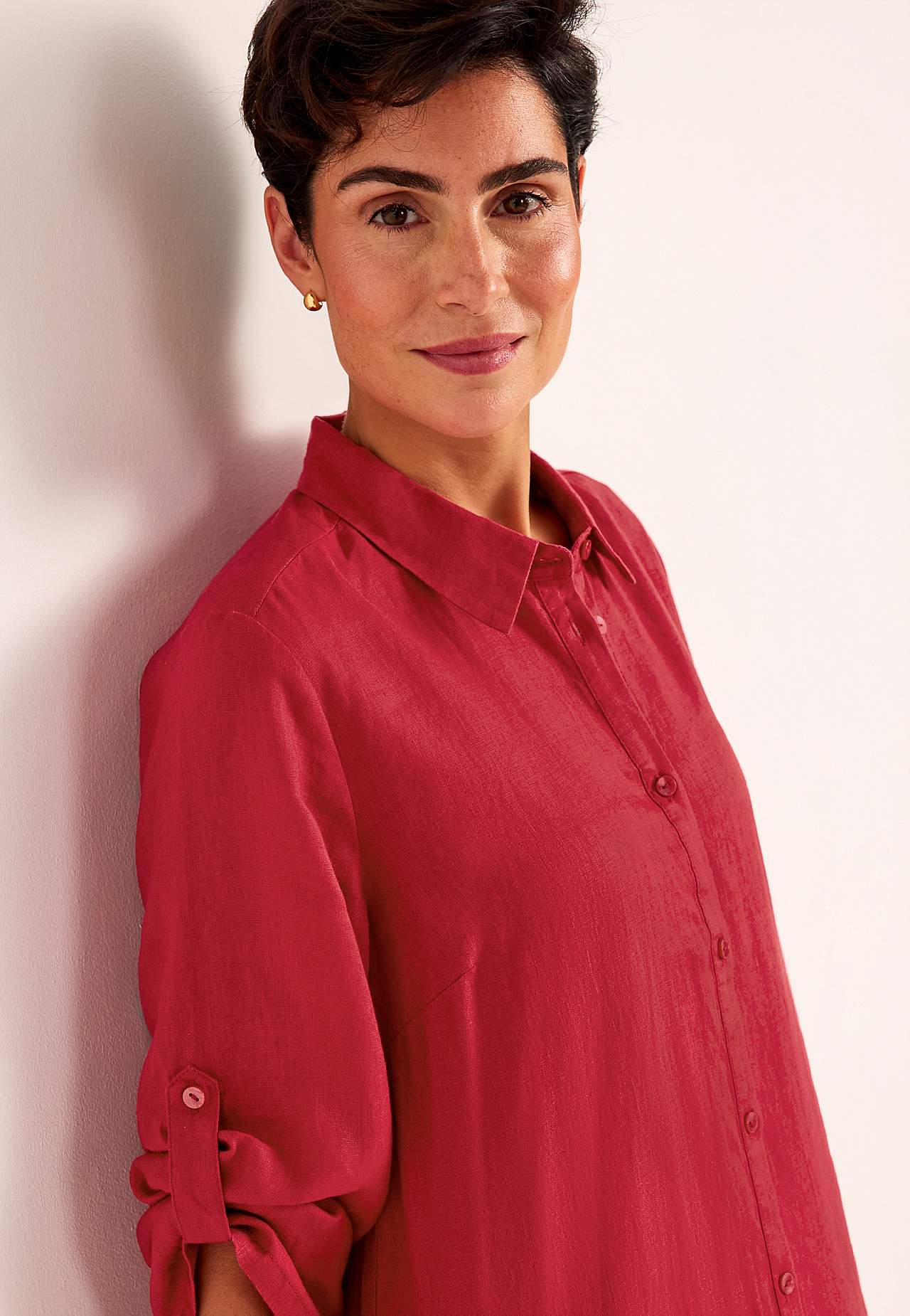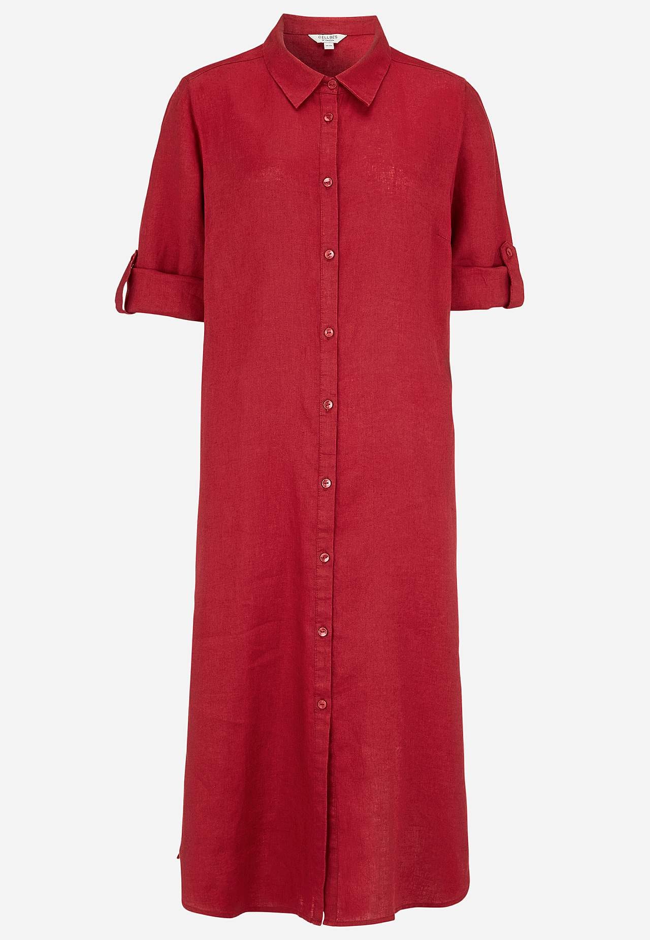 Skjortekjole i 100 % lin. Luftig materiale. Romslig passform med et rettvinklet snitt. Knappslag fra topp til bunn. Brettbar langt erme med knappedetalj. Innsnitt ved bysten for beste passform. En ekte hverdagsfavoritt! Lengden følger størrelsen, ca. 116-124 cm fra skulderen.