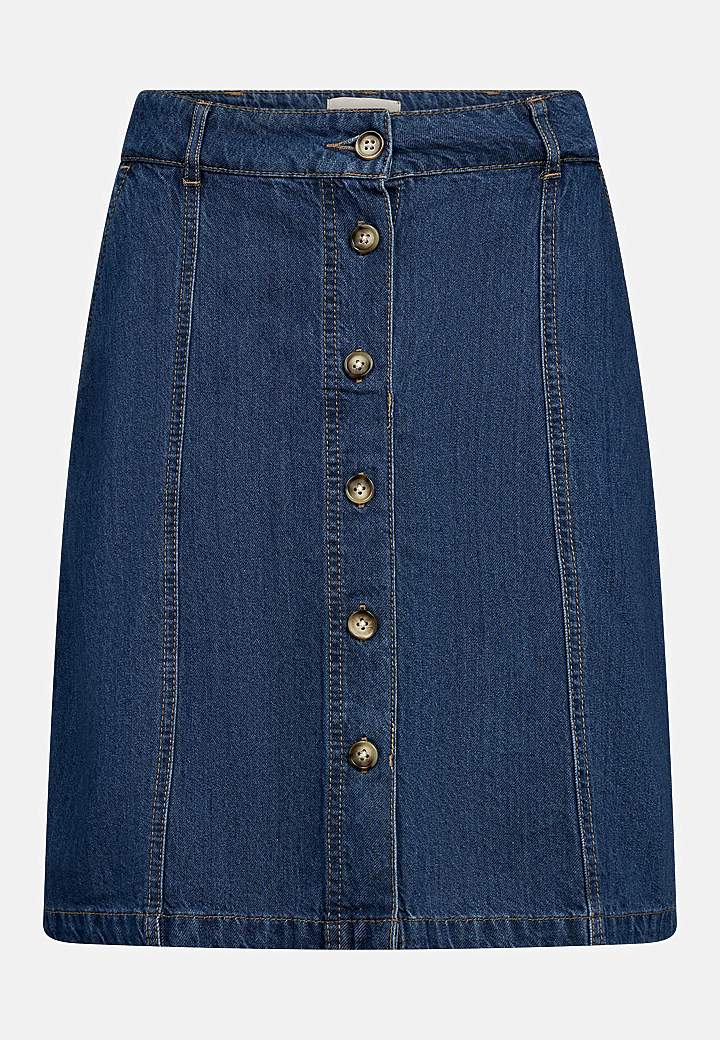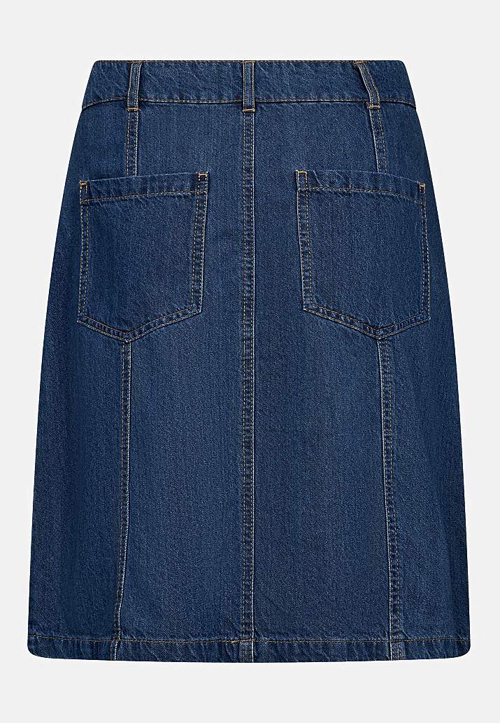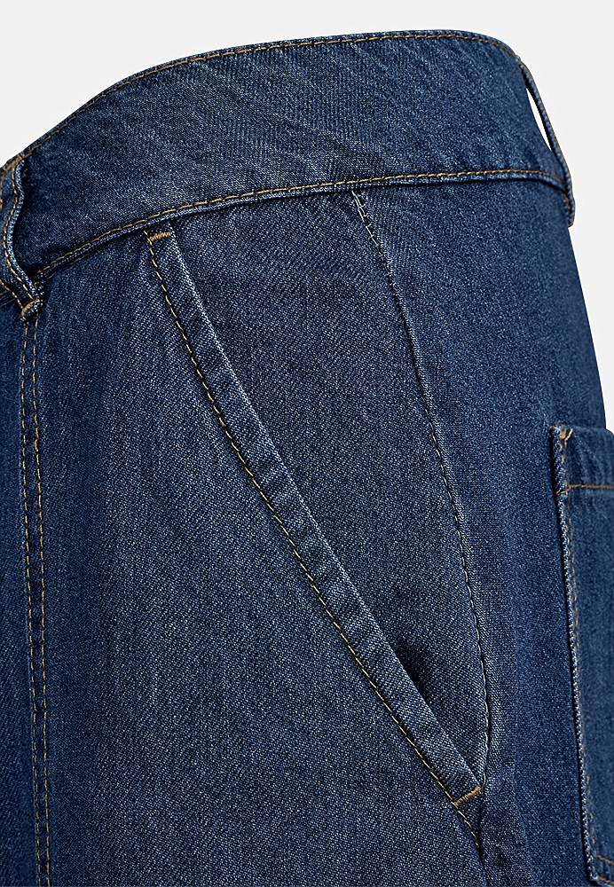 Normal passform. Vevet materiale i myk, non-stretch denim. Midje med beltestropper og knappåpning. Skråe lommer foran. Påsydde lommer bak. Dekorsømmer foran og bak. Rett fald. Lengde midt bak ca. 51 cm i størrelse M (40).