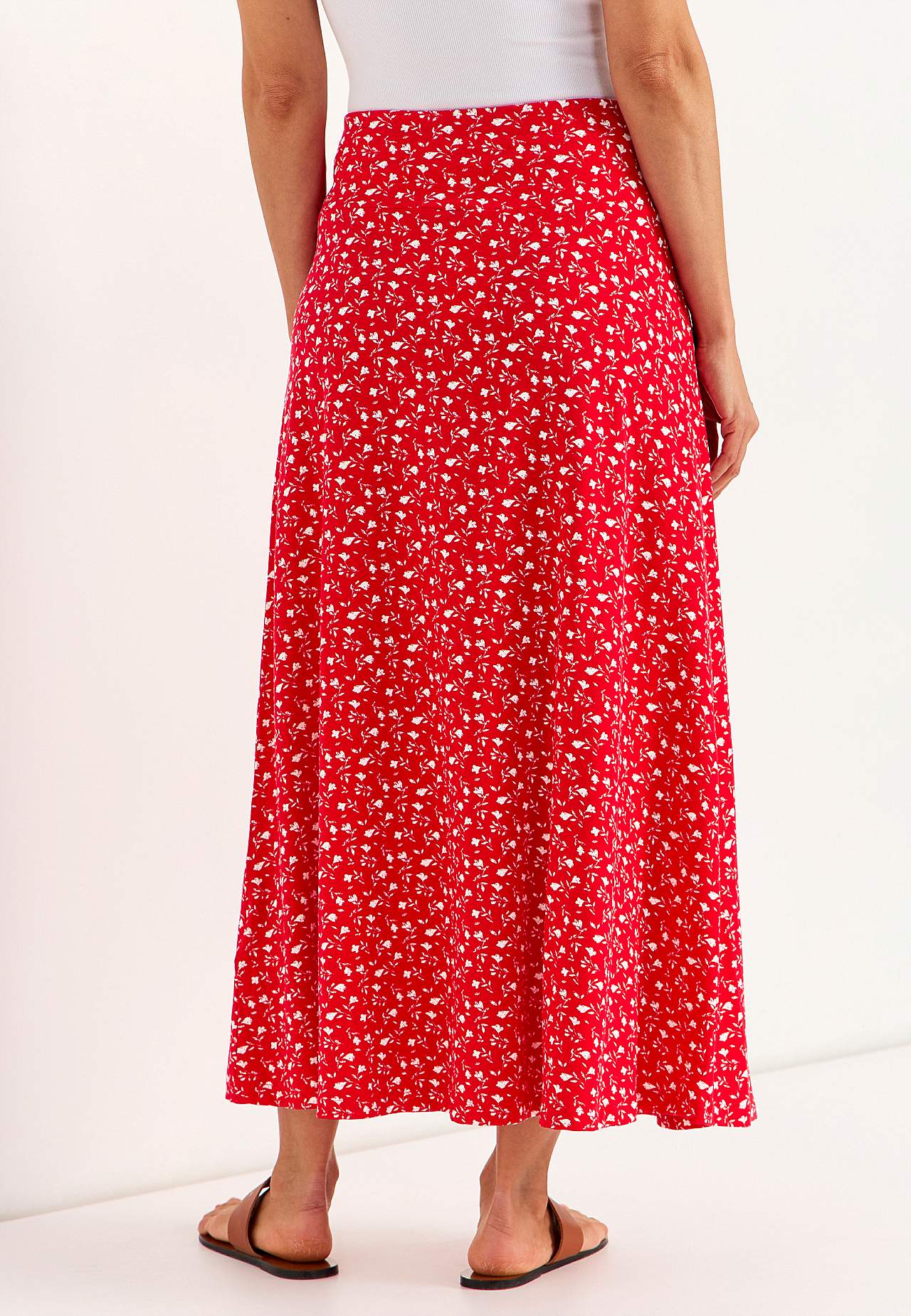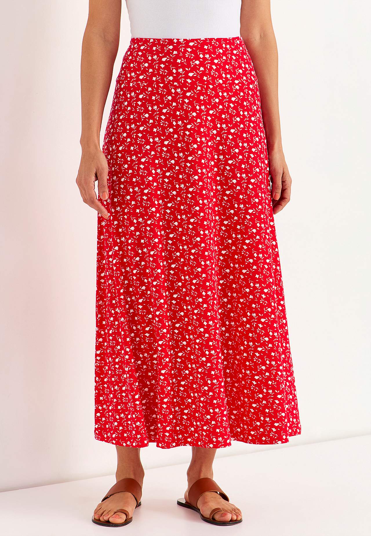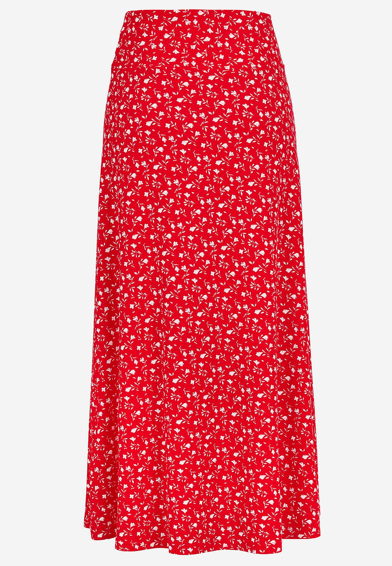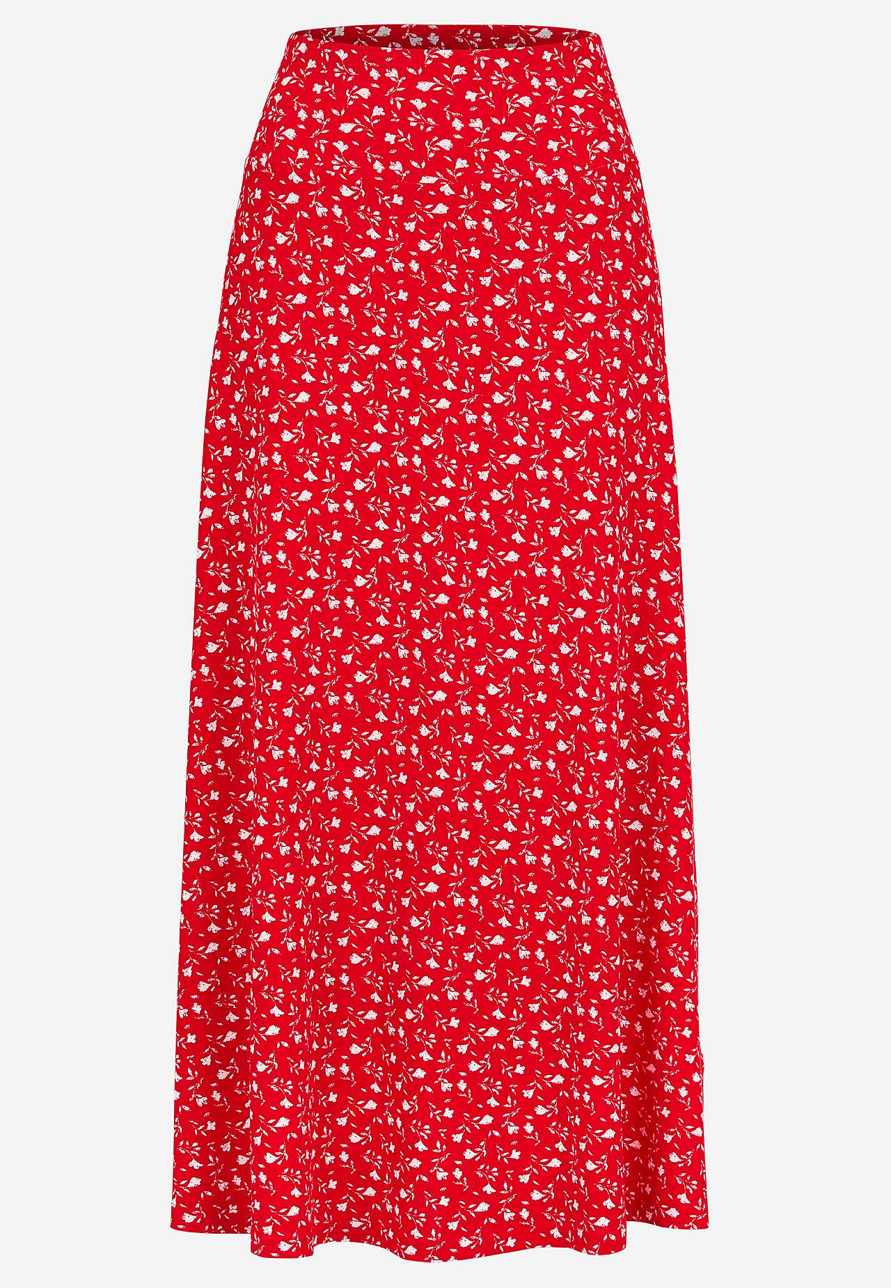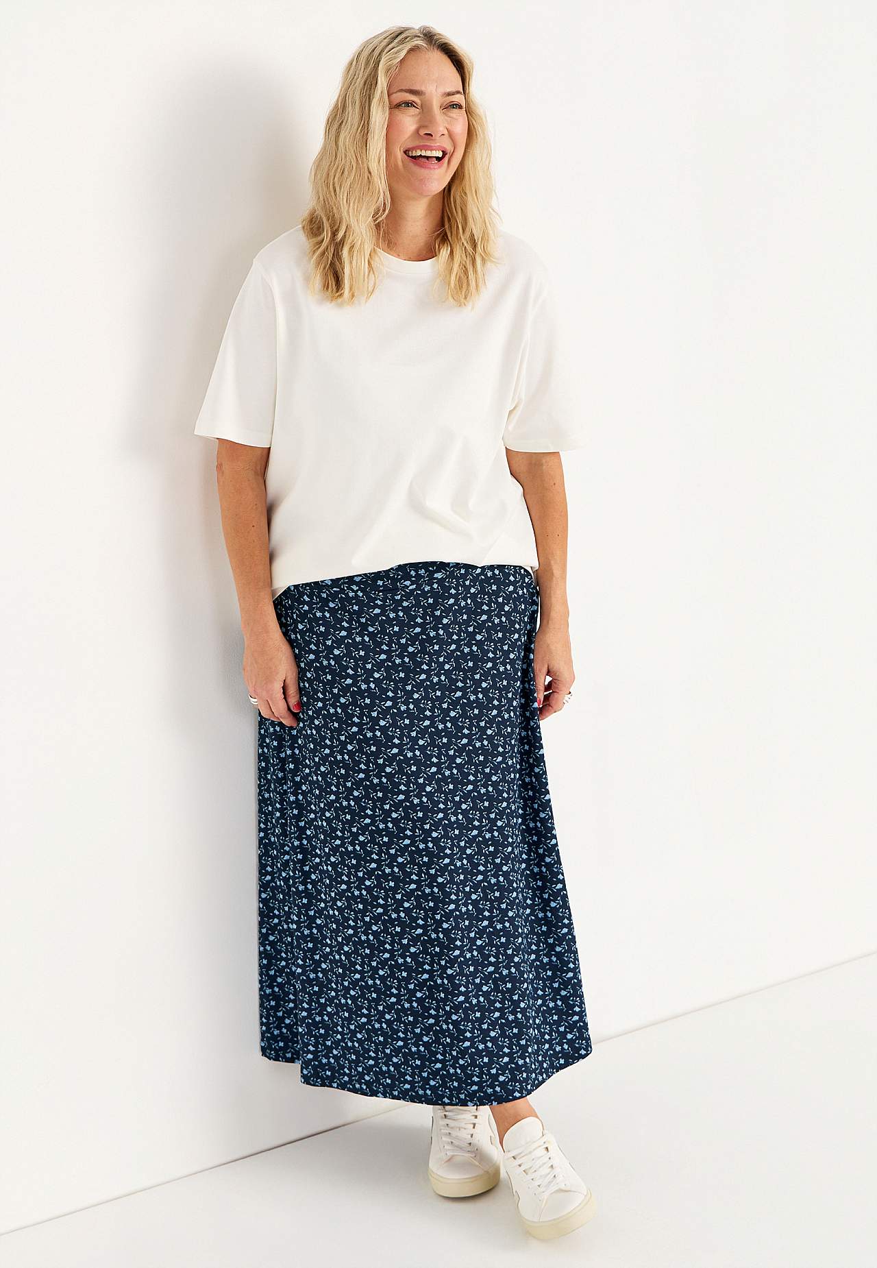 Langt skjørt i myk viskose med tungt, fint fall og stretch. Vid passform med a-linjeform. Midje med bærestykke og komfortabel strikk. Lett avrundet fald. Lengde: 90 cm.