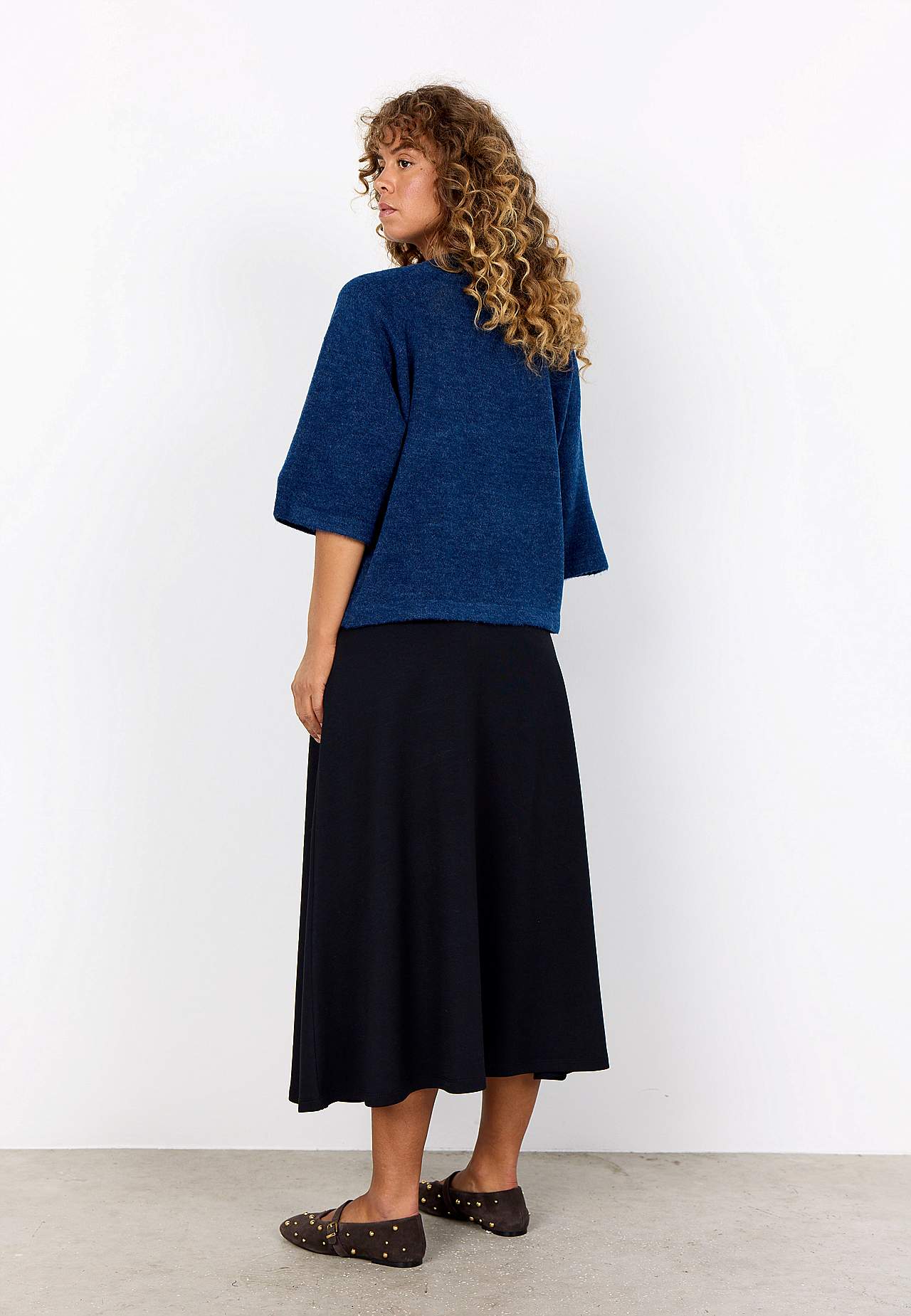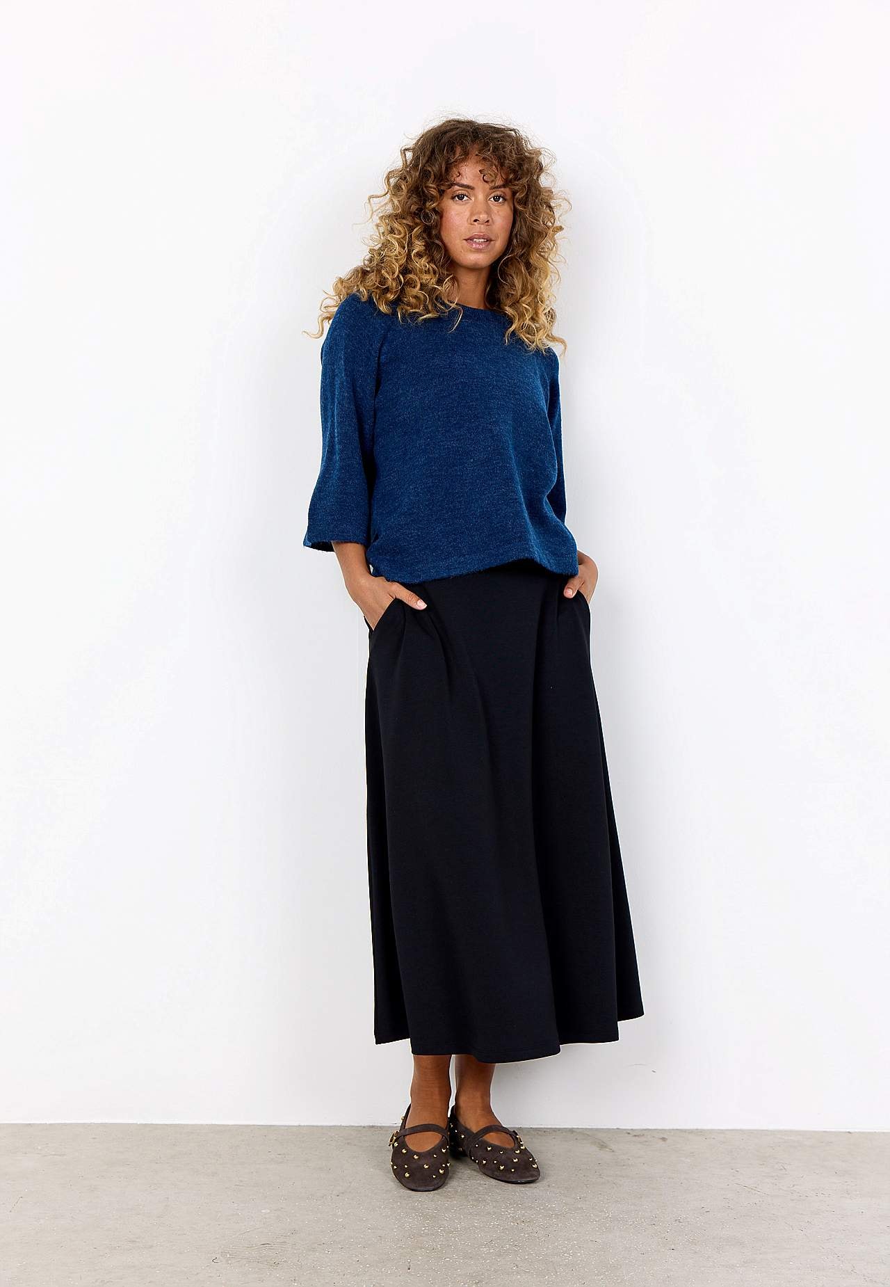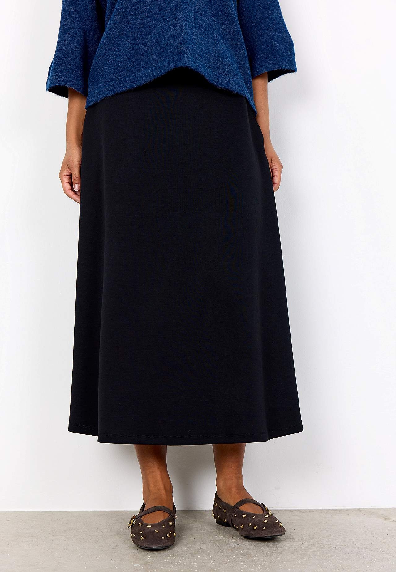 Skjørt i myk, nydelig modalmiks med noe kraftigere trikot. A-linjeformet passform. Midje med komfortabel strikk på baksiden. Lommer i sidene. Rett fald. Lengde ca. 85 cm i størrelse S (38).
