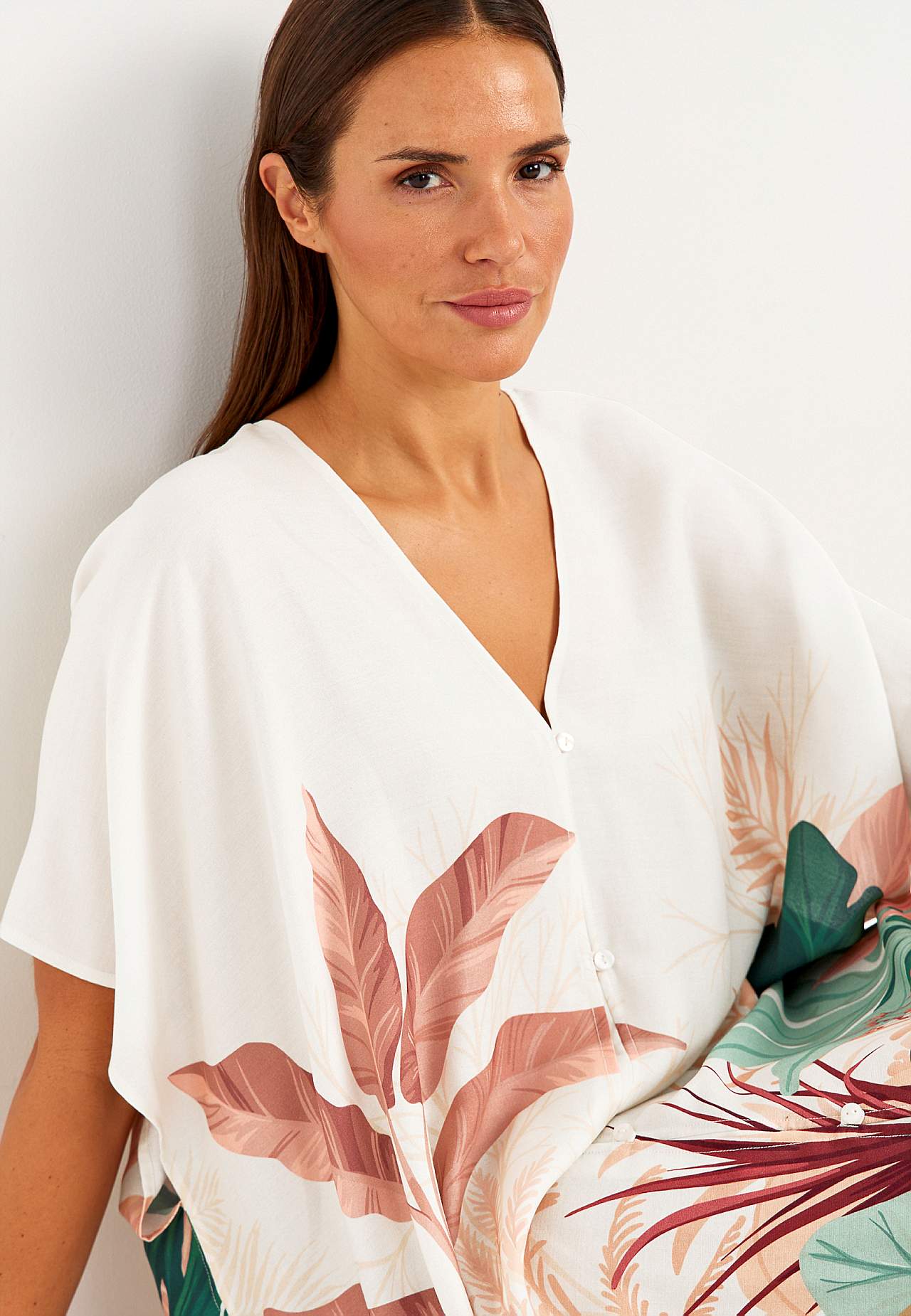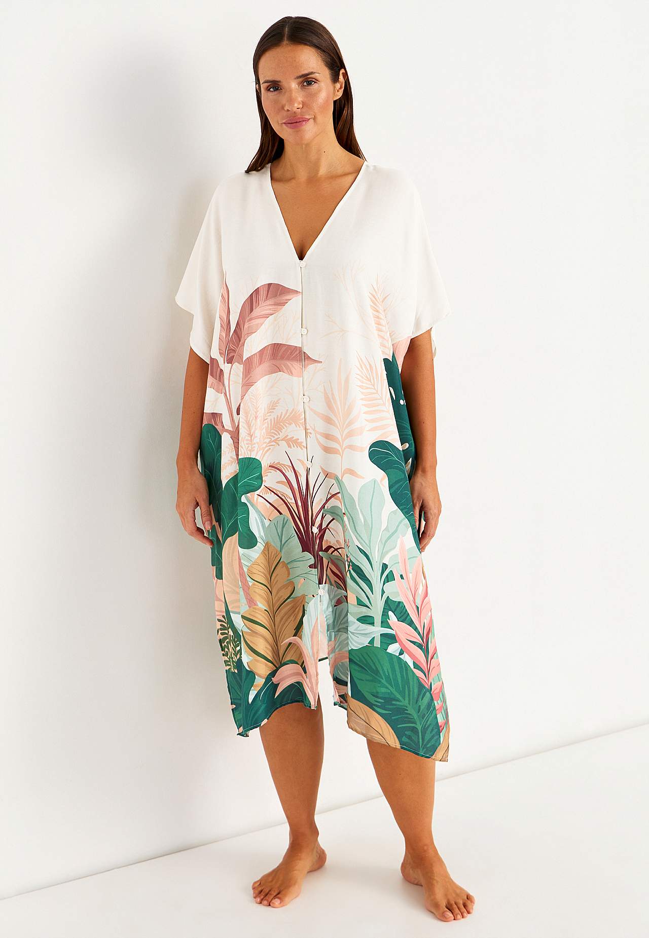 Mønstret strandkaftan med knapper