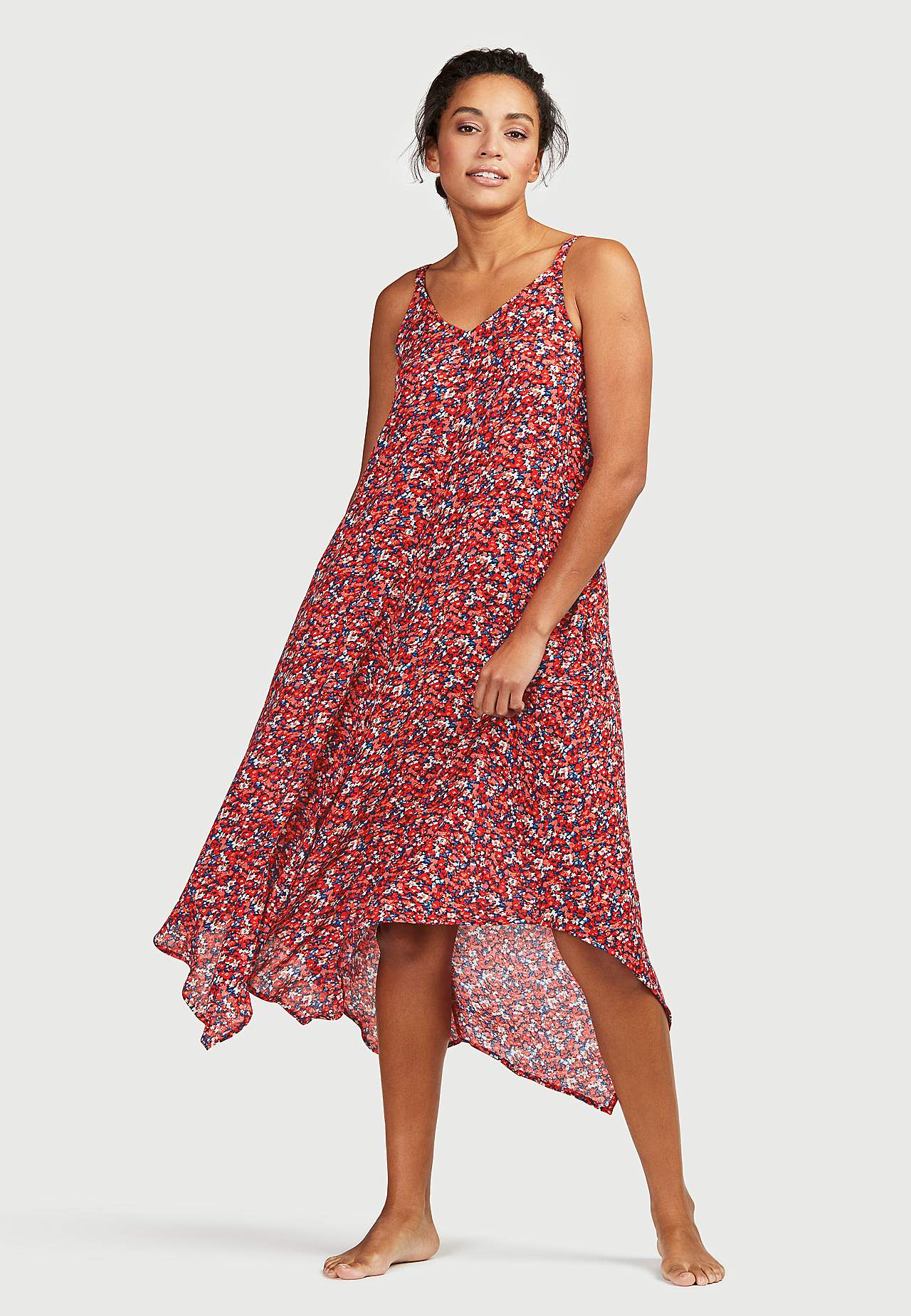 Vevet strandkjole med tynne skulderstropper. Justerbar skulderstropp. Lengden følger størrelsen, ca. 117-131 cm fra skulderen bak.