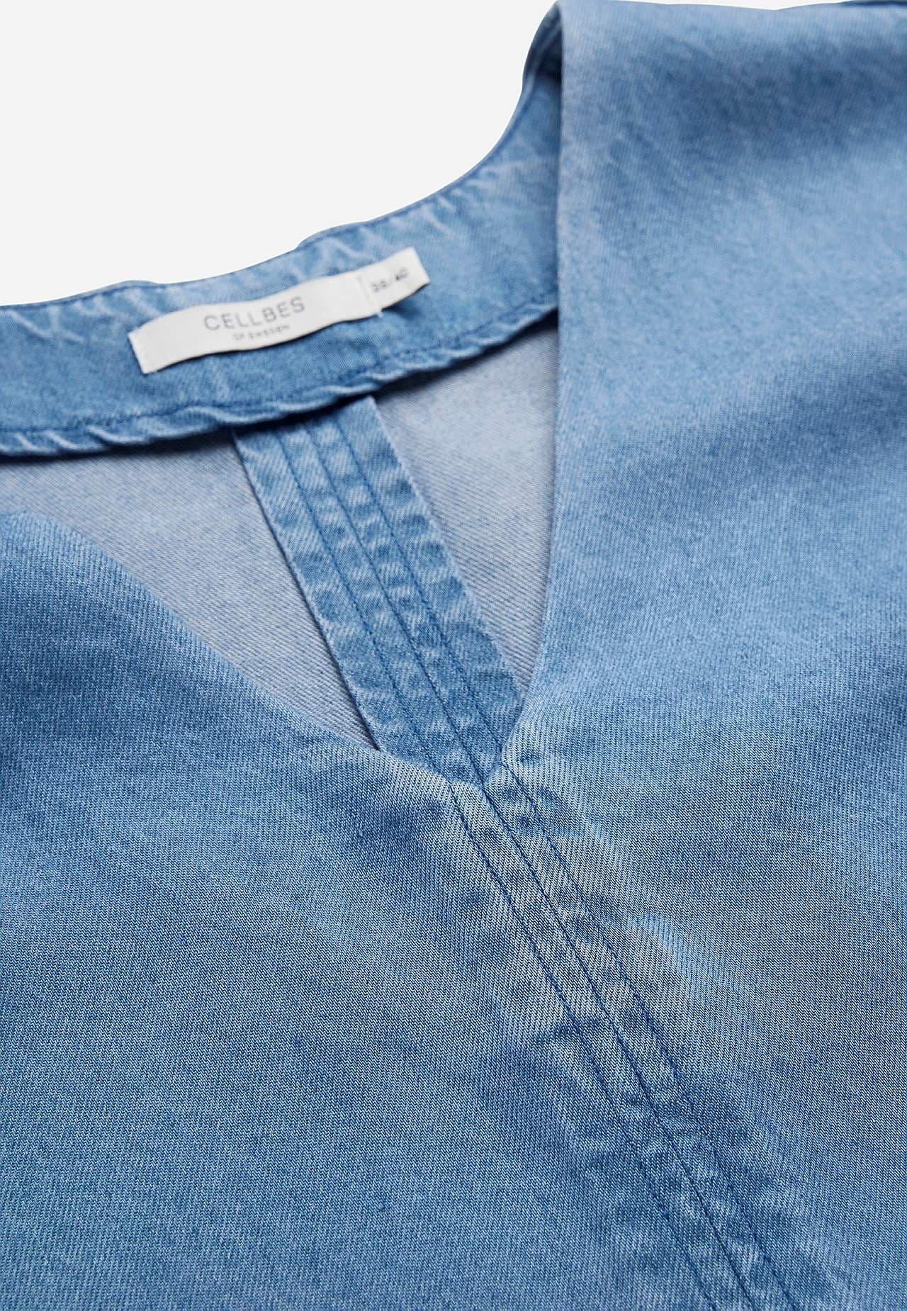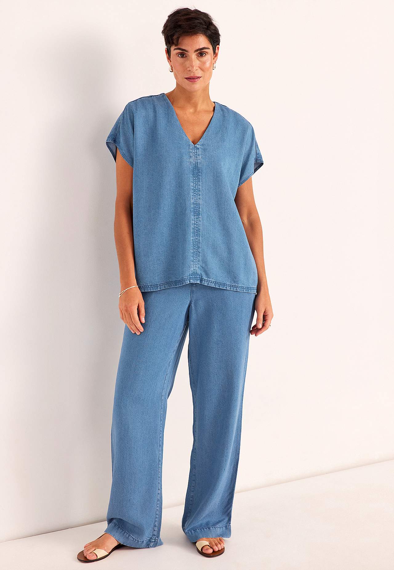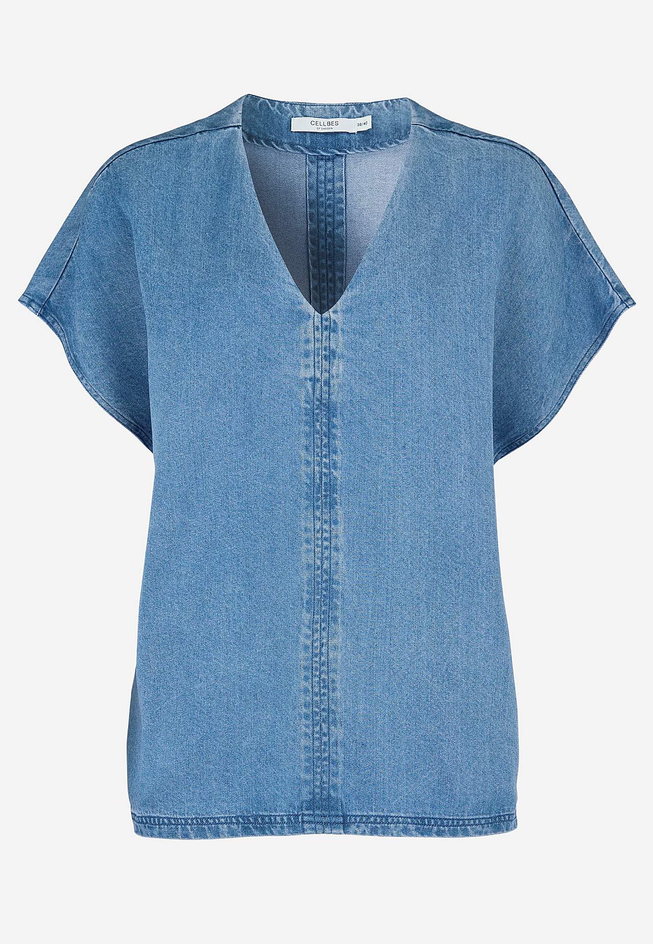 Bluse i denim med en myk, fantastisk behagelig lyocell. Stilrent, enkelt design. Jevnt materiale med fint fall. Rett, oversized passform. V-halset hals og fine detaljsømmer foran og bak med en senteren. Korte korte ermer. Lett avrundet fald. Matche gjerne med 701542. For at plagget skal gjenfå sin myke følelse anbefales tø... Les mer