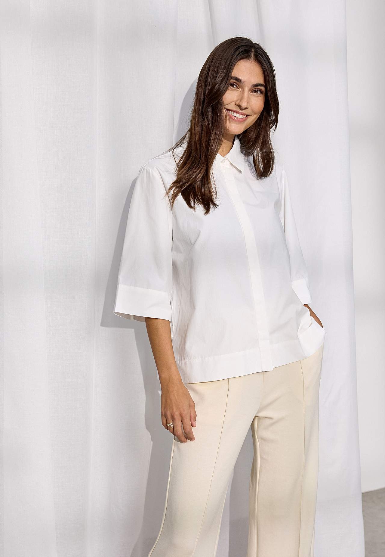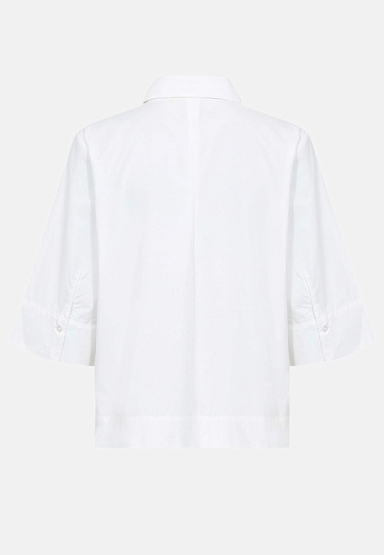 Vävd, krispig skjorta i ekologisk bomull och återvunnen polyester. Rak, ledig passform. Traditionell krage. Knappslå med dolda knappar. Vida, trekvartslånga ärmar med manschett med slits och knapp. Elegant veck bak. Rak nederkant med slits i sidorna. Längd ca 58 cm i storlek S (38).