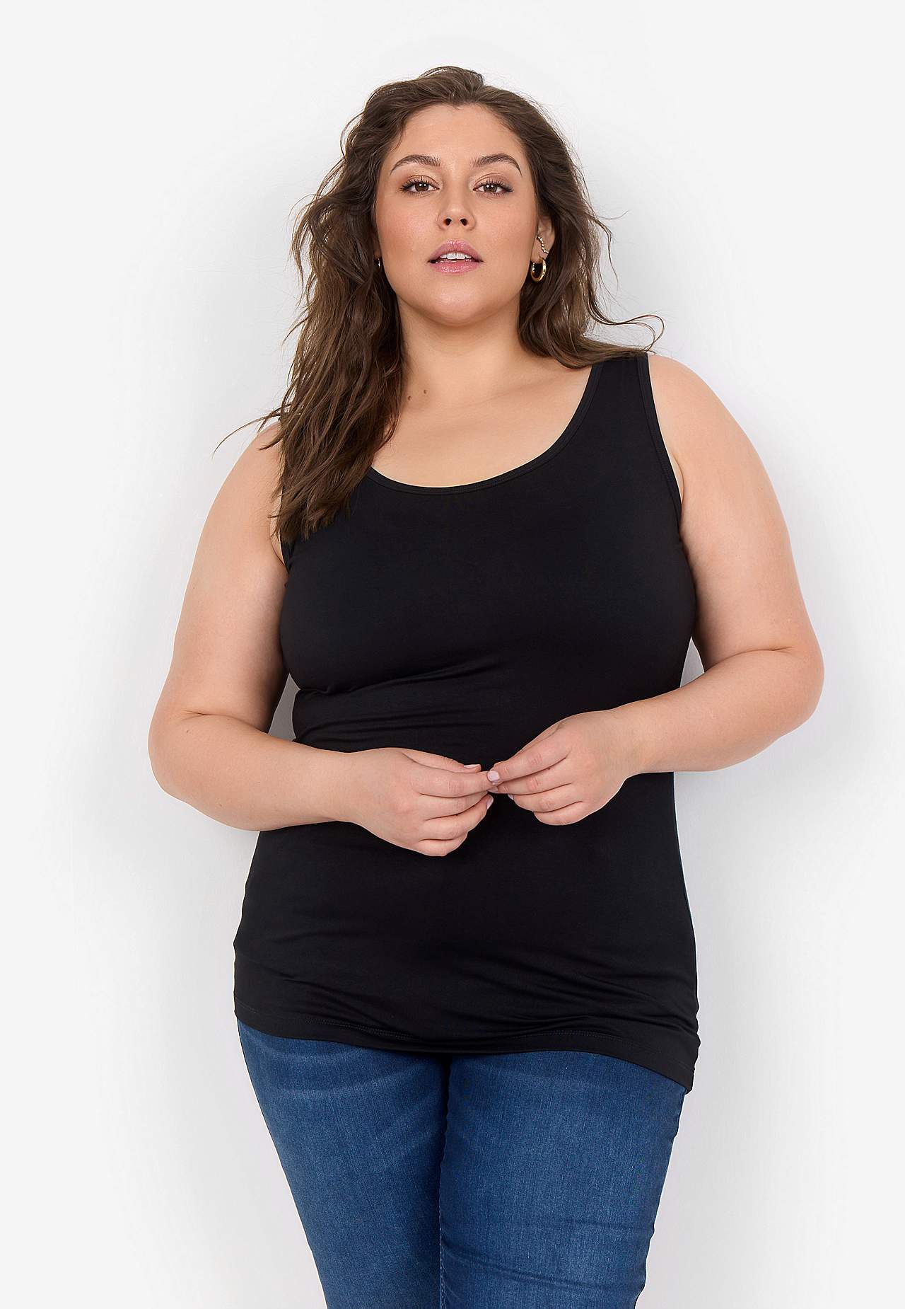 Luftig singlet i myk lyocell og elastan. Kroppsnær passform. Komfortabel, romslig modell. Avrundet hals. Ermeløs design. Rett fald. Lengde fra skulder ca. 72 cm i størrelse M (46/48).
