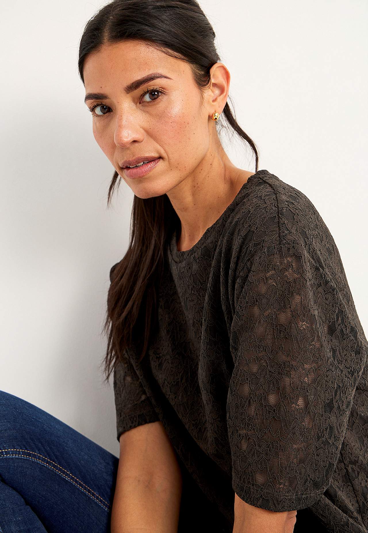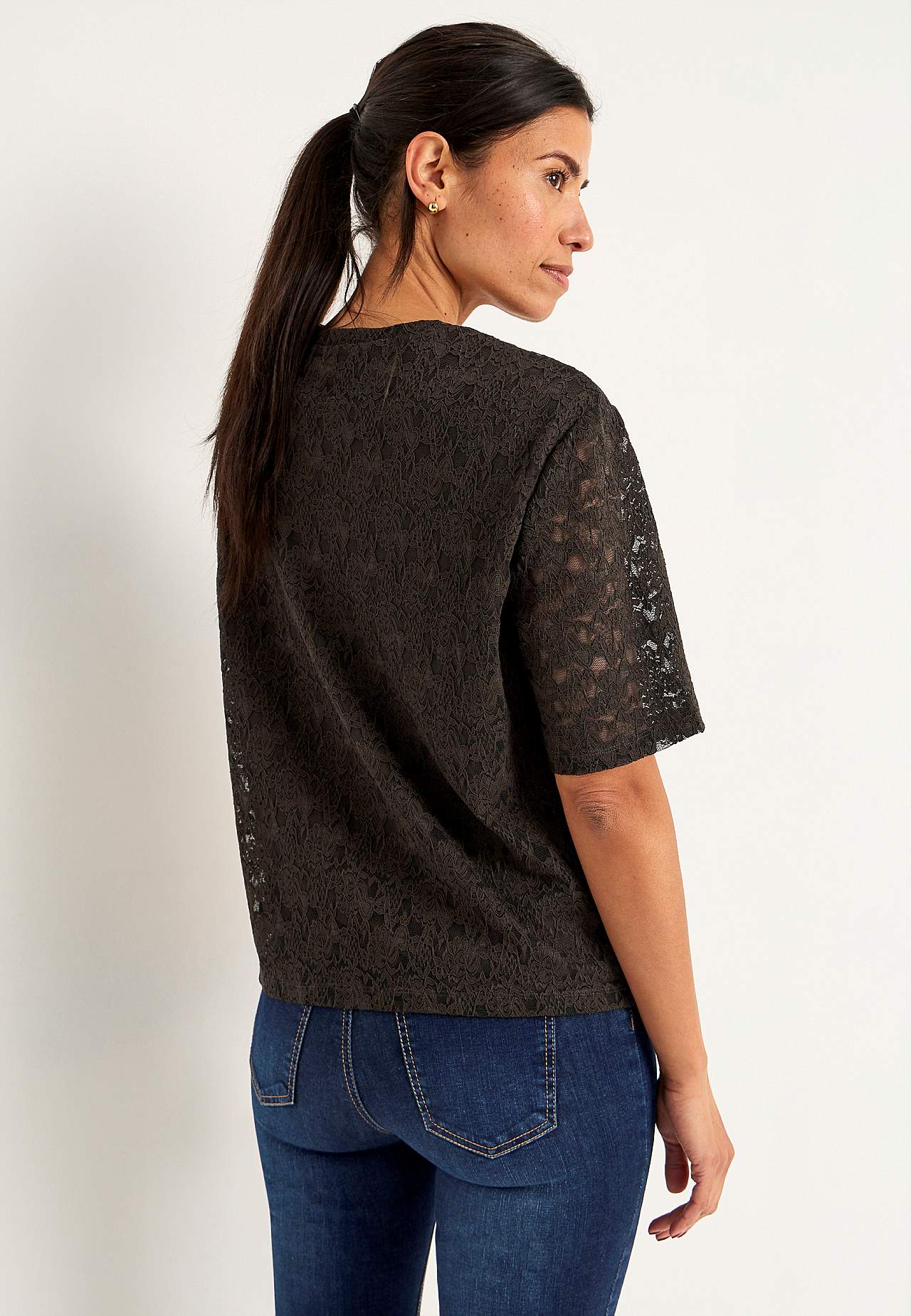 Vakker topp i stretchy kvalitet. Rett modell. Rundhalset. Myk, jevn fôring i jersey. Ufôrete korte ermer. Rett fald. Lengden følger størrelsen, ca. 60-74 cm fra skulderen.