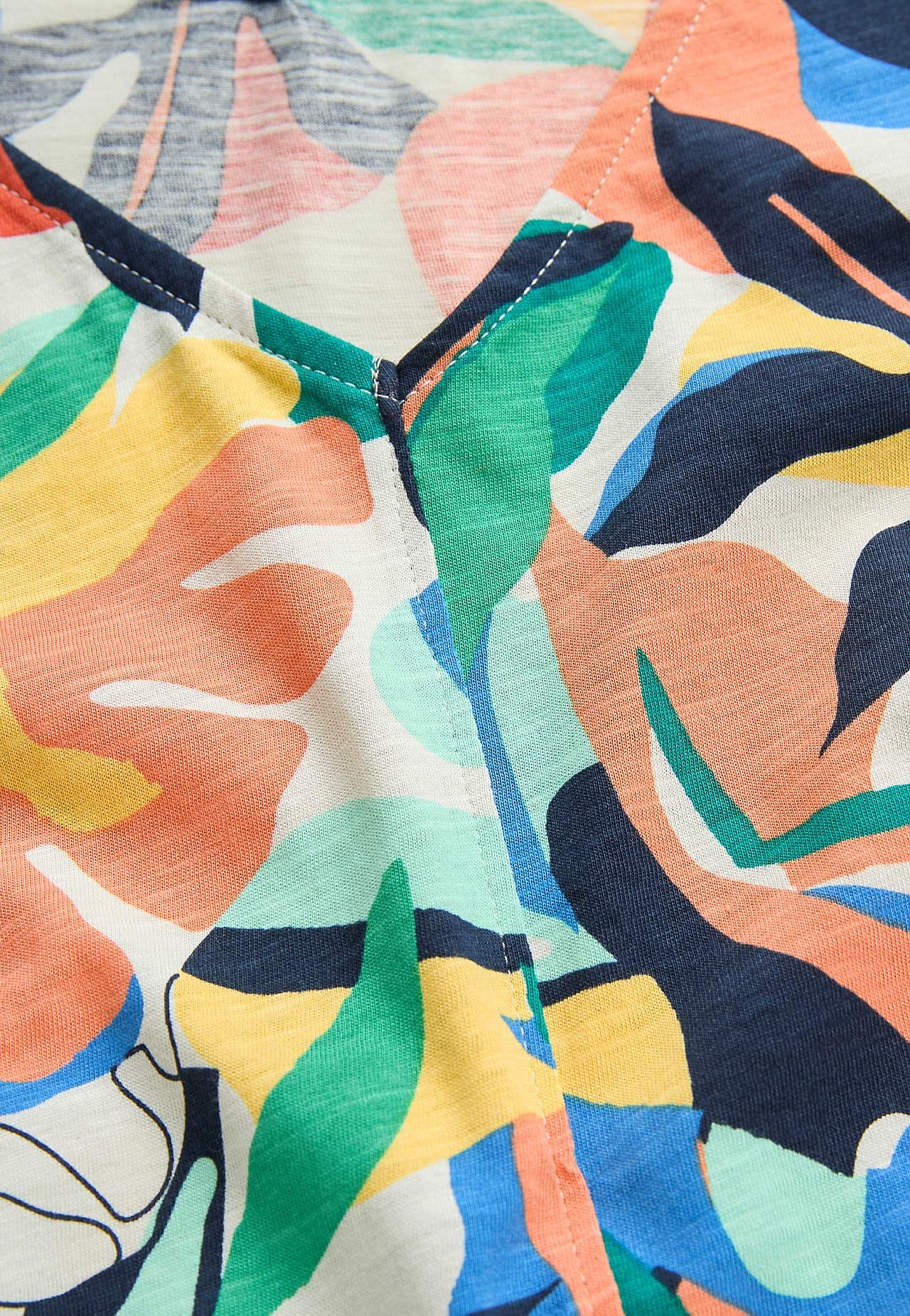 Luftig slubkvalitet med lett struktur. Litt a-linjeformet passform. V-hals både foran og bak. Dekorsøm i midten frampå. Rygglengden følger størrelsen, ca. 60-72 cm.