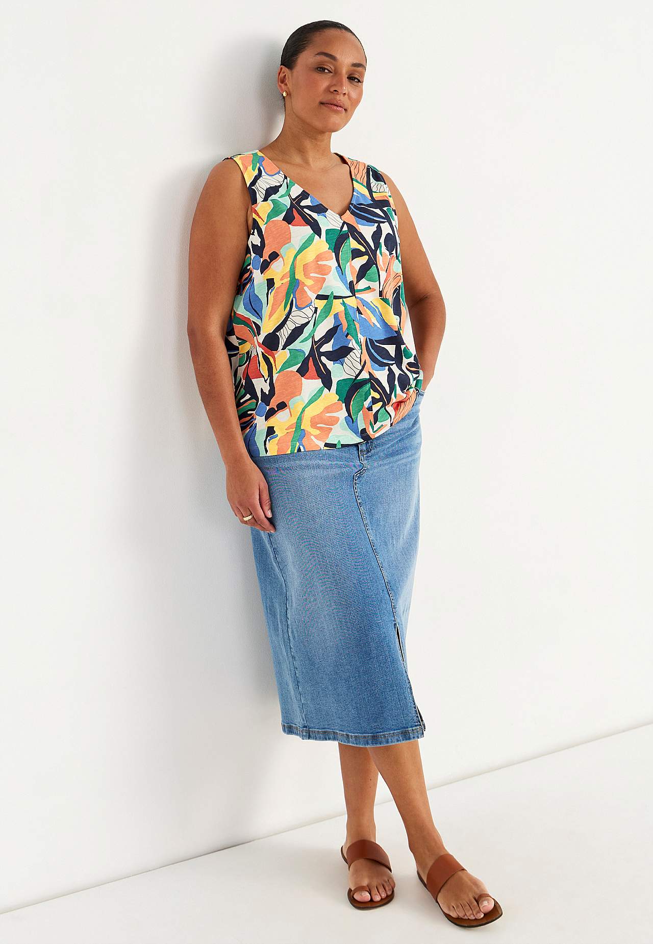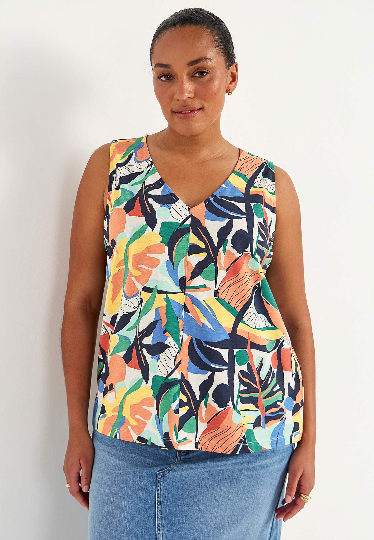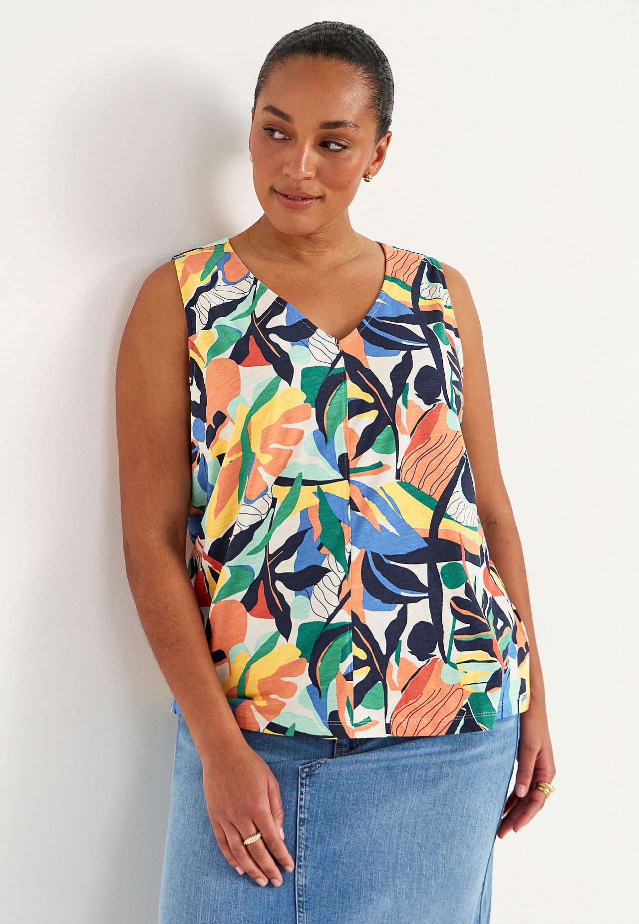 Ermløs jerseytopp med v-hals