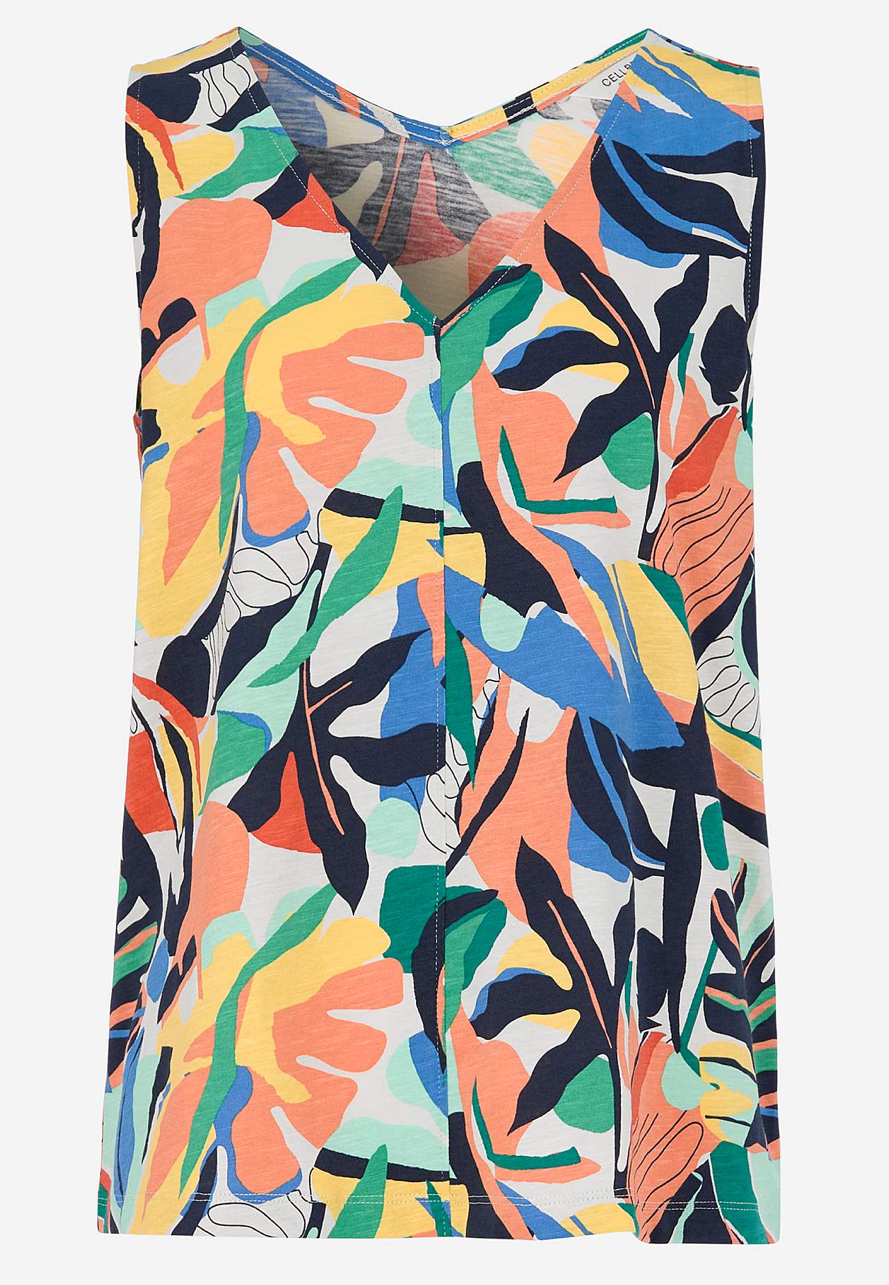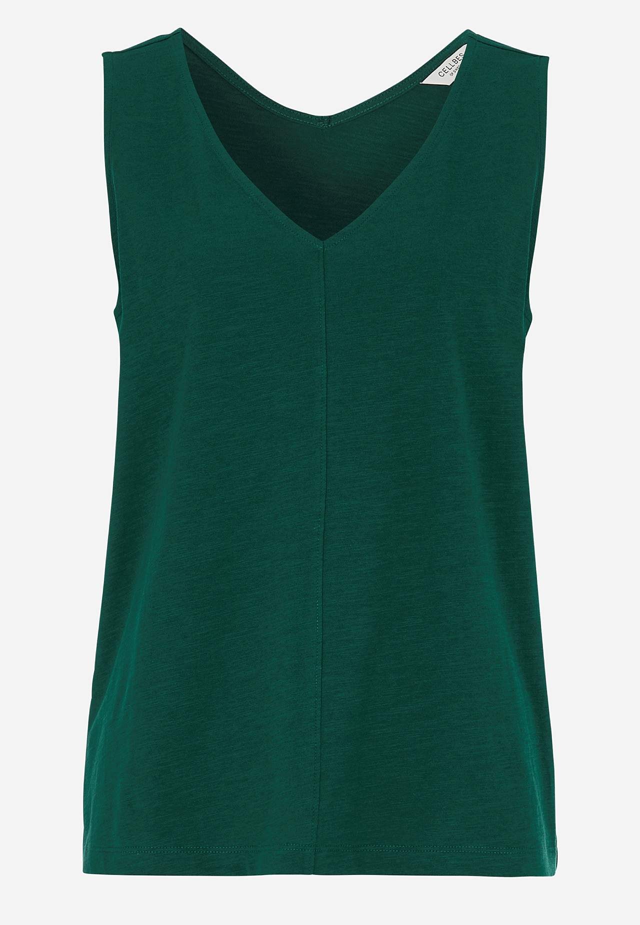Luftig slubkvalitet med lett struktur. Litt a-linjeformet passform. V-hals både foran og bak. Dekorsøm i midten frampå. Rygglengden følger størrelsen, ca. 60-72 cm.