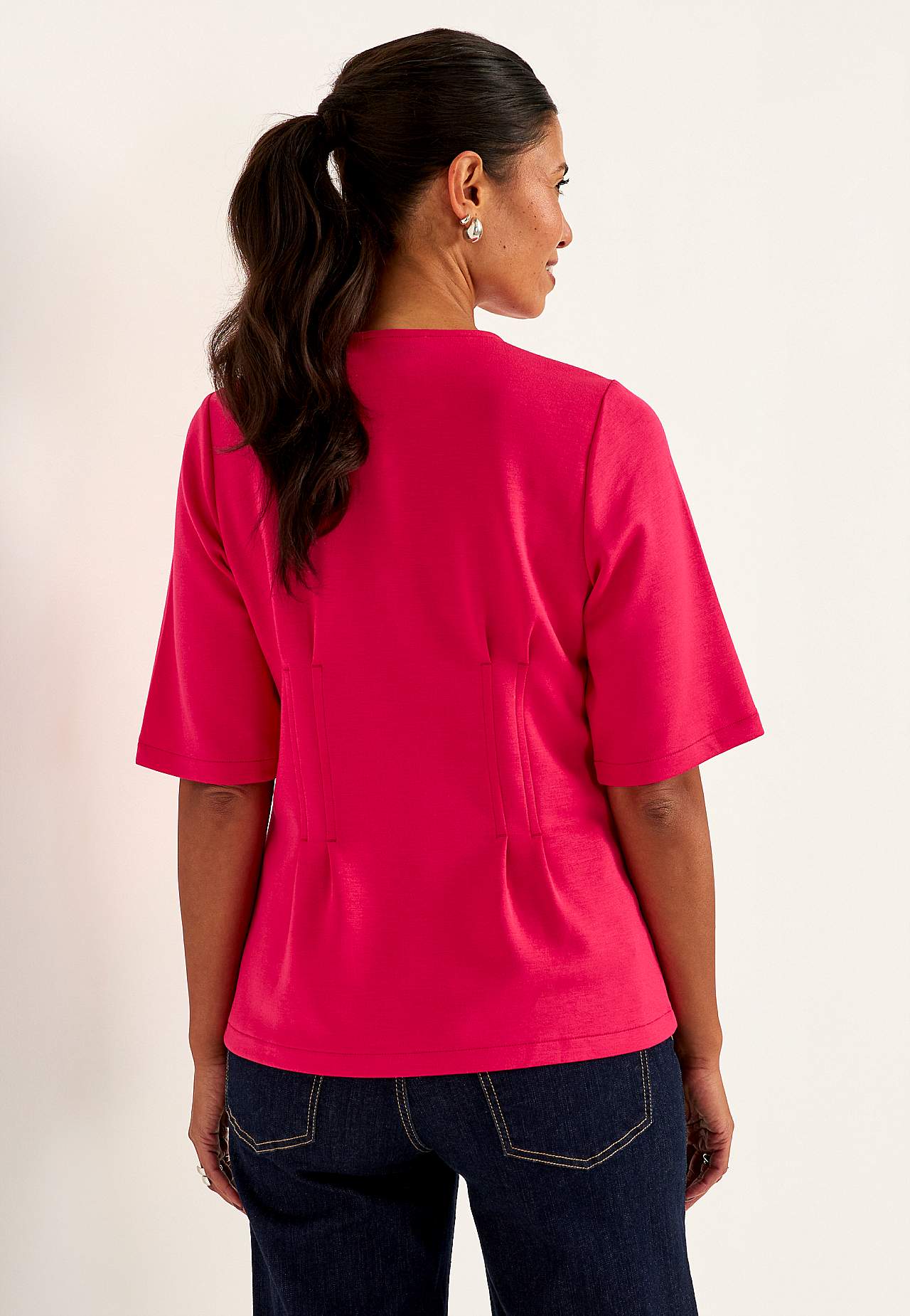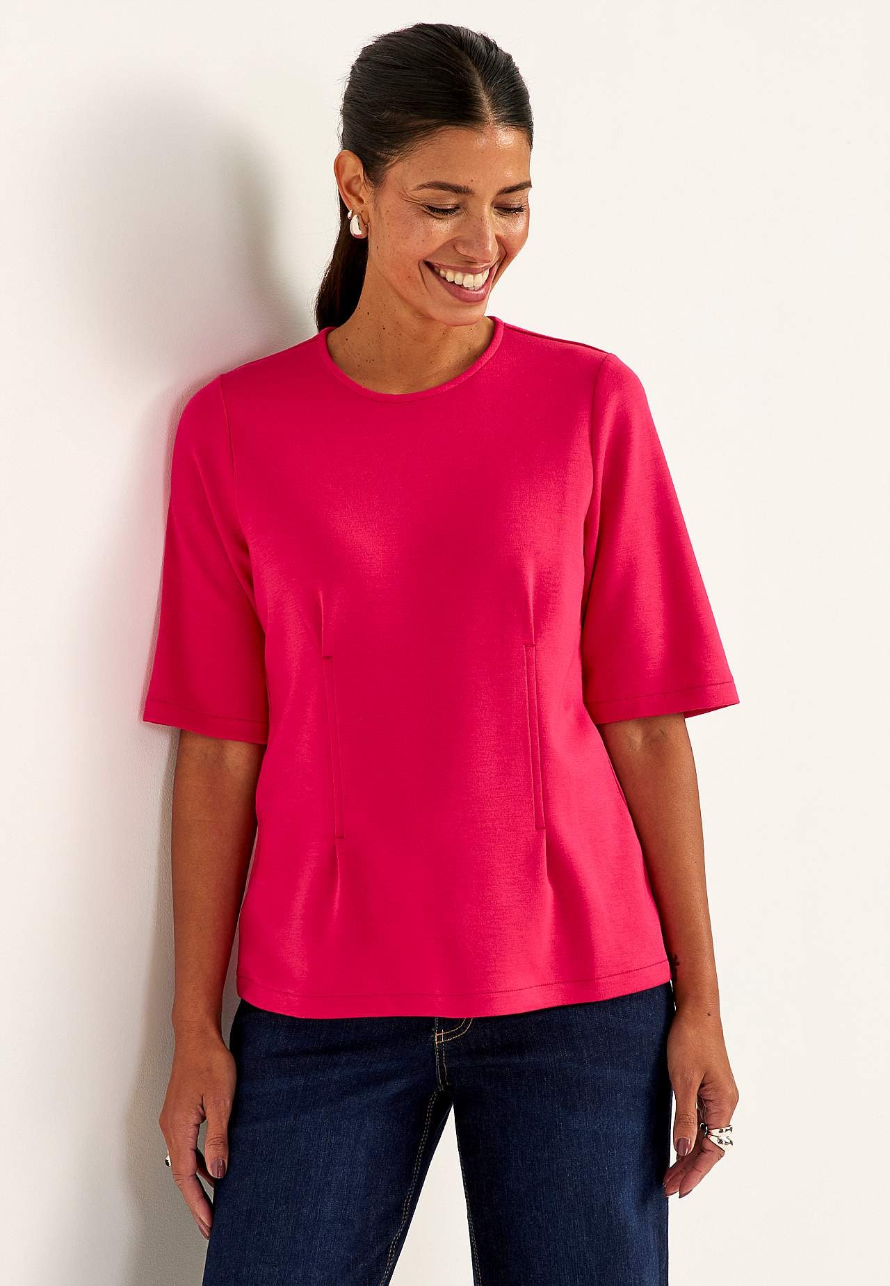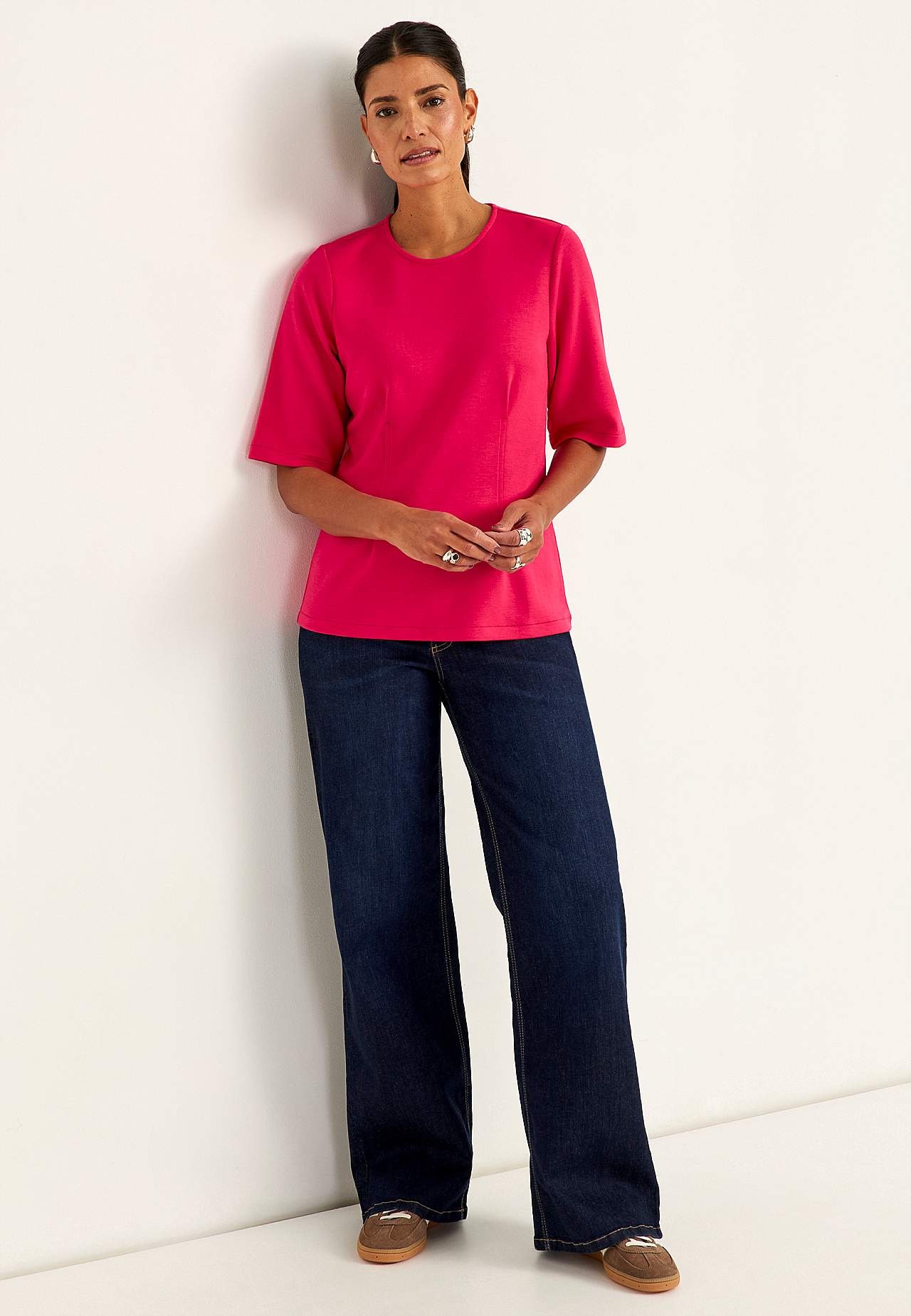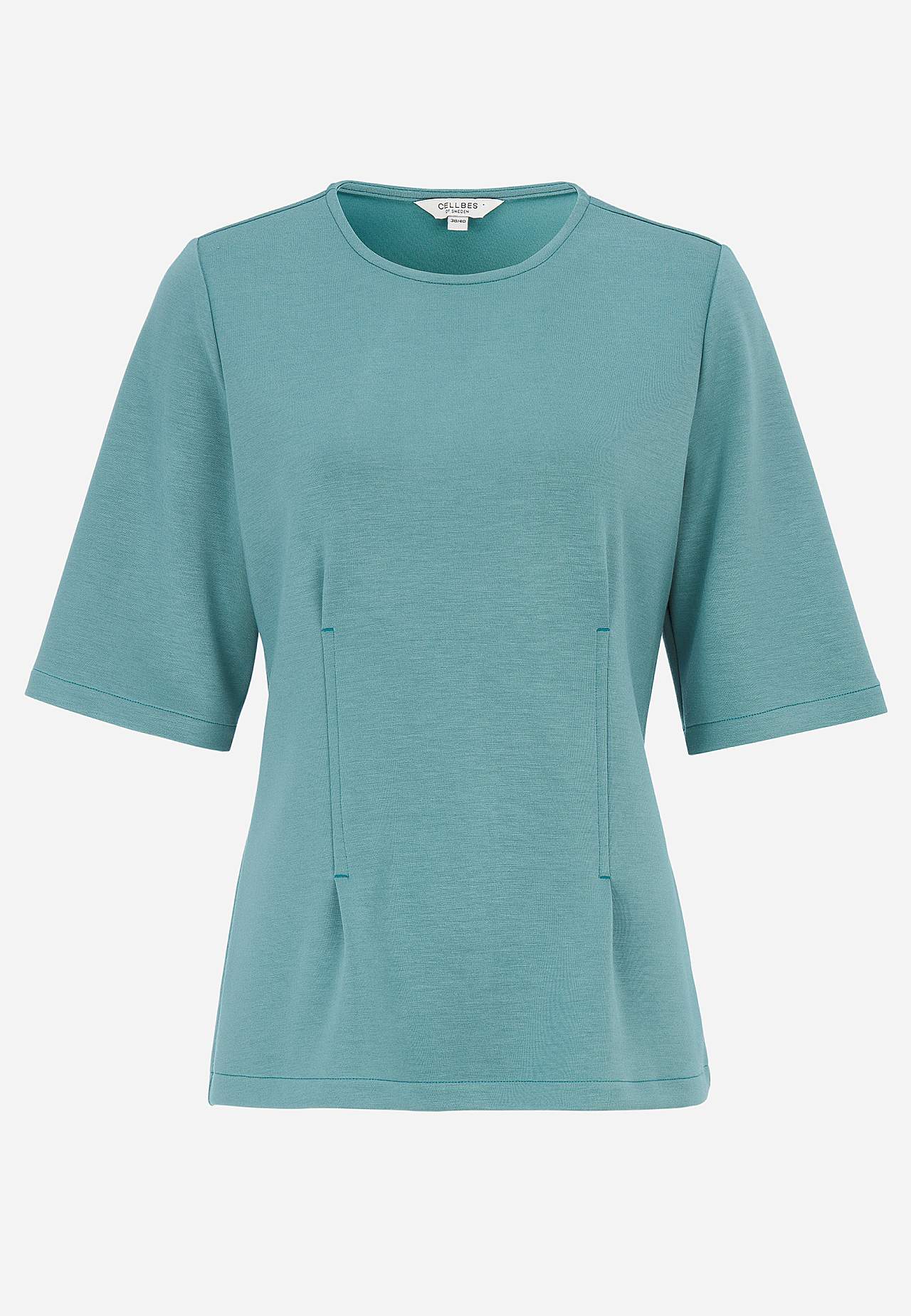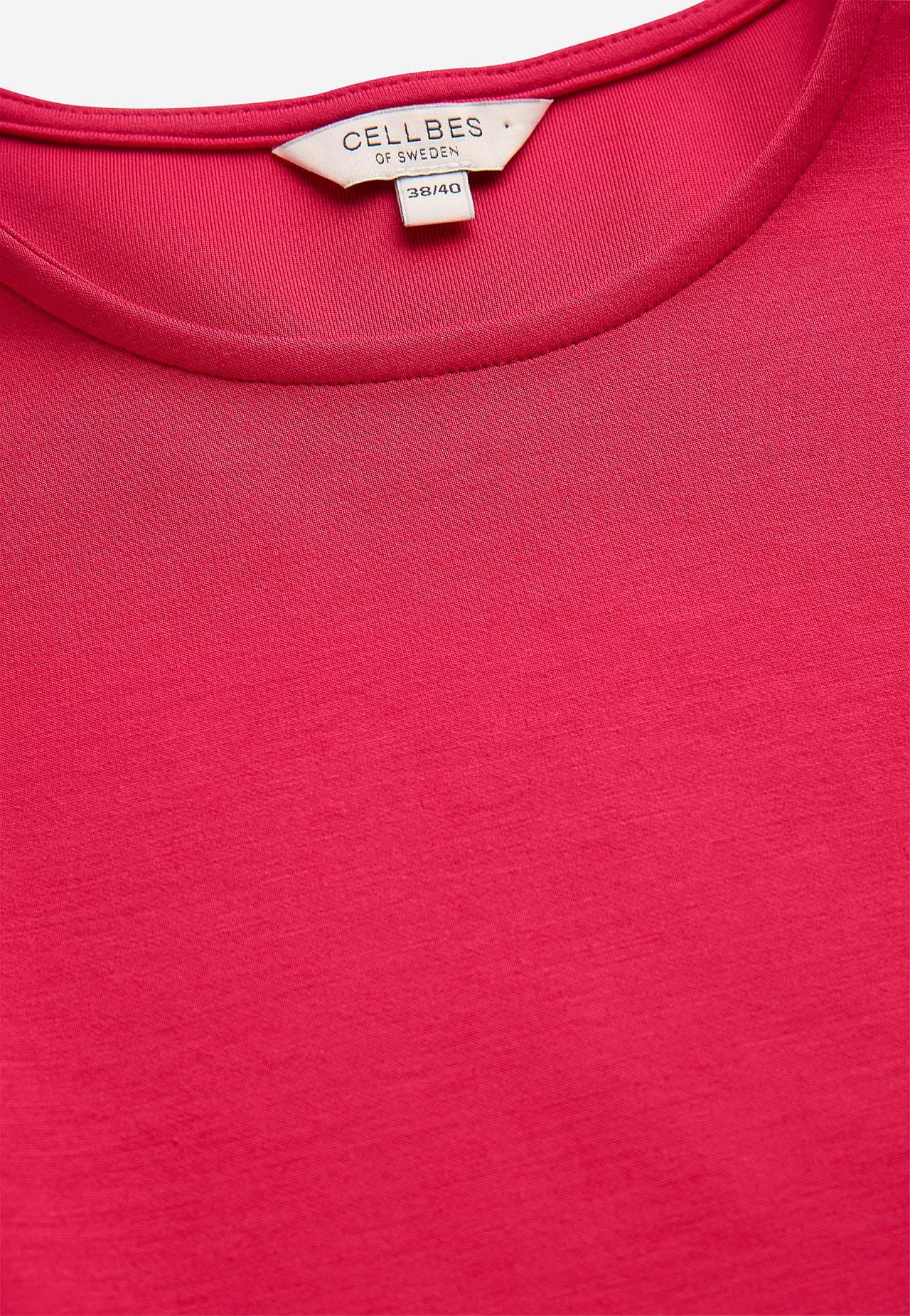 Silkemyk topp i noe kraftigere modalmiks. Normal passform med flatterende innsnitt både foran og bak. Rund halsutringning. Vide, halvlange ermer. Rett fald. Lengden følger størrelsen, ca. 62-77 cm fra skulderen.