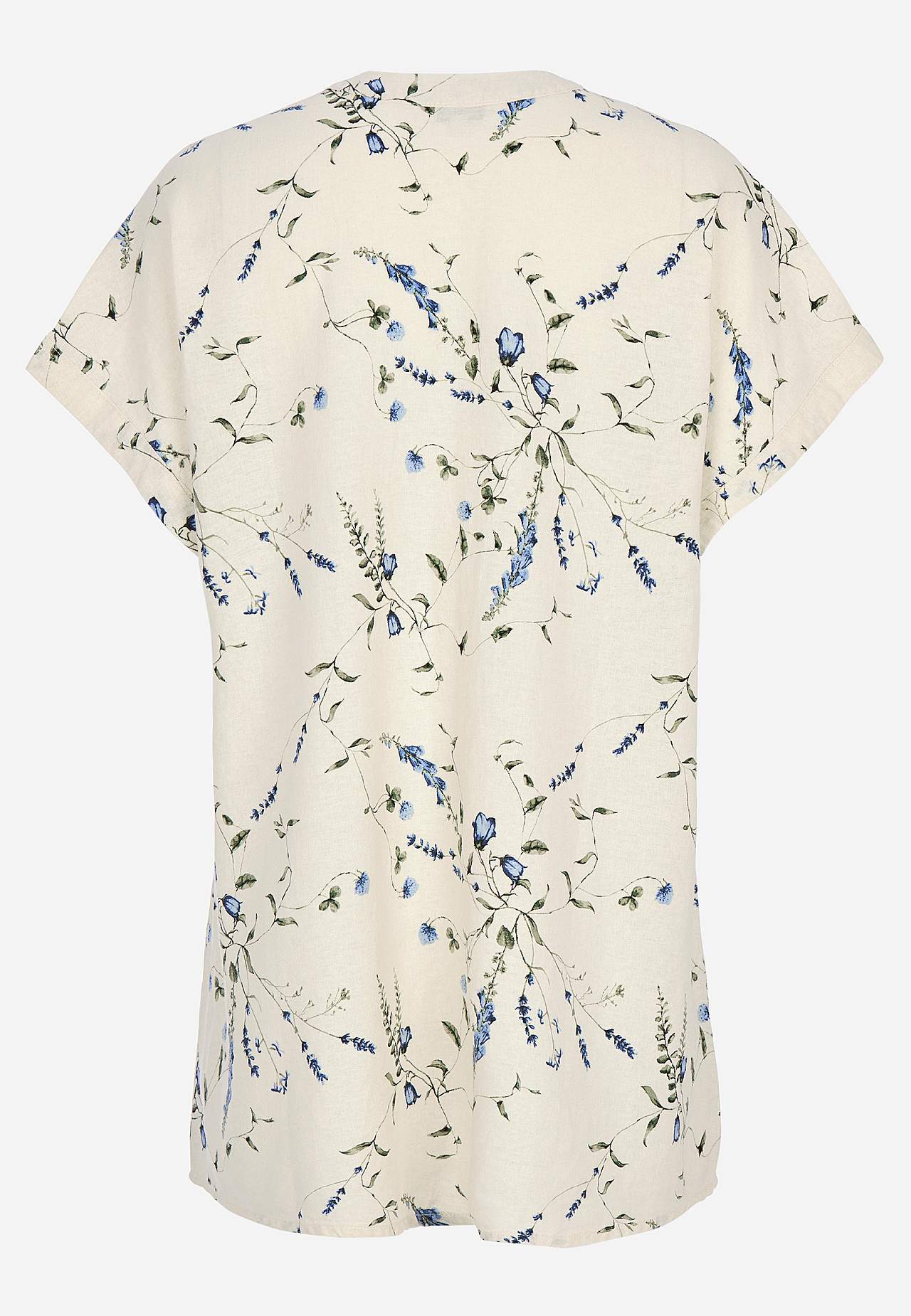 Nydelig, kjølende tunika med skirt blomster mønster. Vevet, luftig materiale i myk viskose- og linblanding med lett struktur. Rett, casual passform. Avrundet hals med lite v-hals snitt og knappslag. Korte korte ermer. Avrundet fald. Rygglengden følger størrelsen, ca. 77-84 cm.