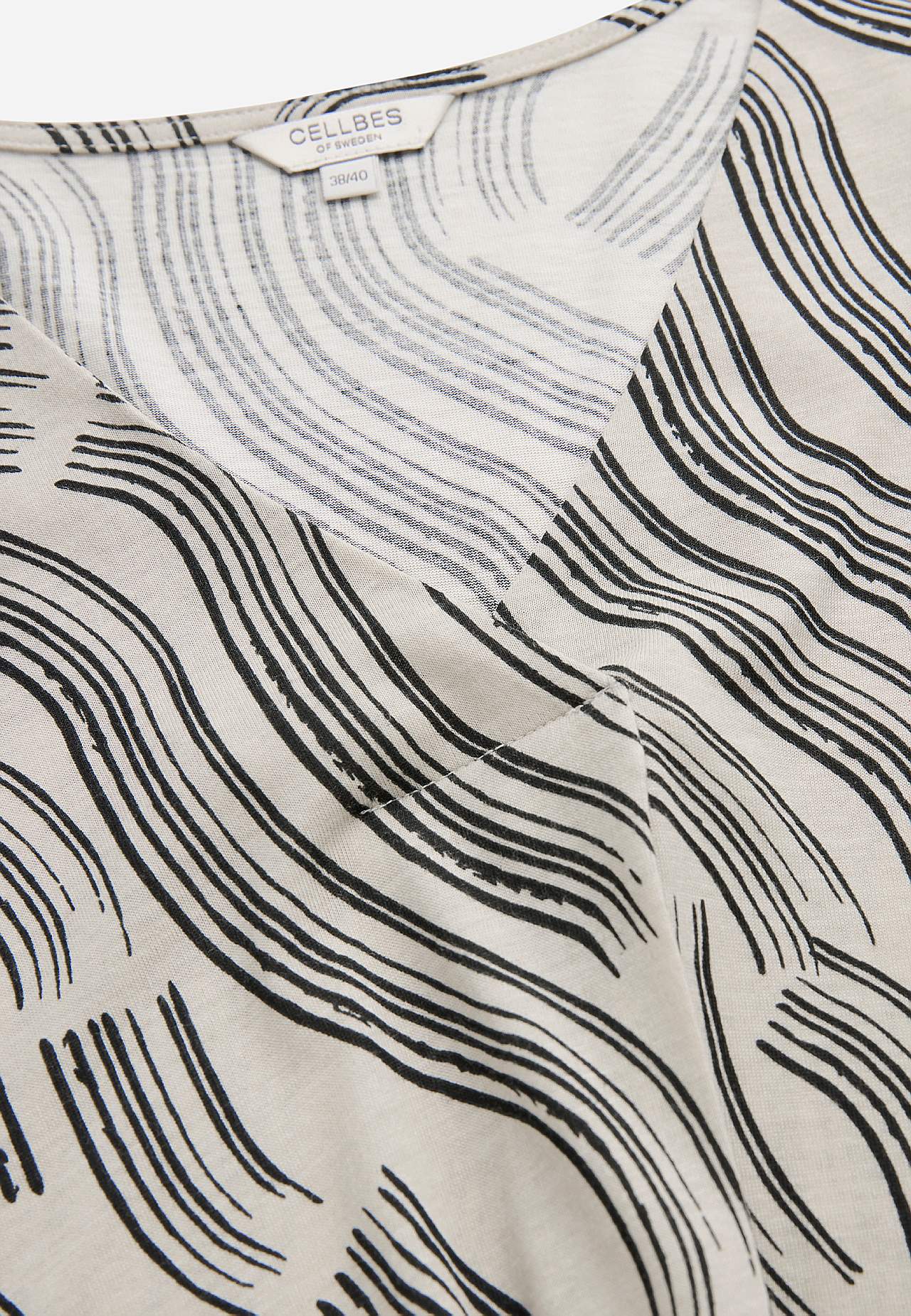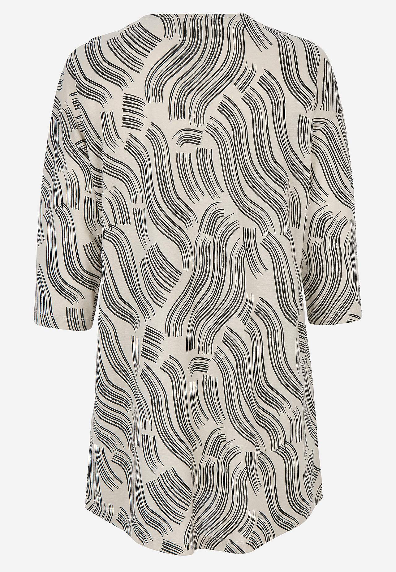 Myk tunika i bomull- og viskoseblanding med fint fall. Romslig passform. A-linjeformet modell. V-hals med dekorativ fold. Droppet skulder. 3/4-lange ermer. Avrundet fald. Lengden følger størrelsen, ca. 79-89 cm fra skulderen bak.