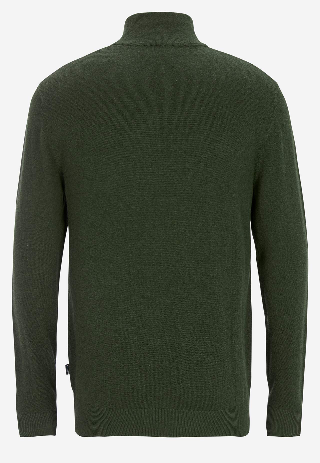 Finstrikket langermet genser. Normal passform. Krage med glidelås. Lange ermer med ribbestrikkede mansjetter i ermeslutten. Rett fald med ribbestrikket mansjett. Lengde fra skulder ca. 75 cm i størrelse S.