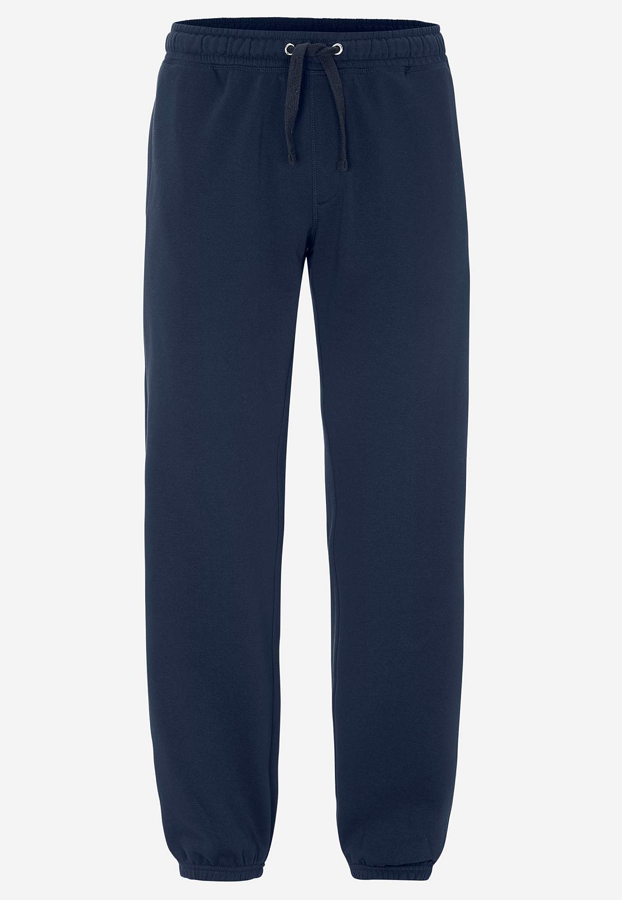 Sweatshirtbukse i bomullsblanding med myk børstet innside. Normal passform. Myk elastisk midje med trekksnor. Rette ben med strikk ved benenden. Innfelte lommer i sidene. Indre benlengde følger størrelsen, ca. 79-83 cm. Skritthøyde varierer i størrelse: omtrent 25-35 cm.