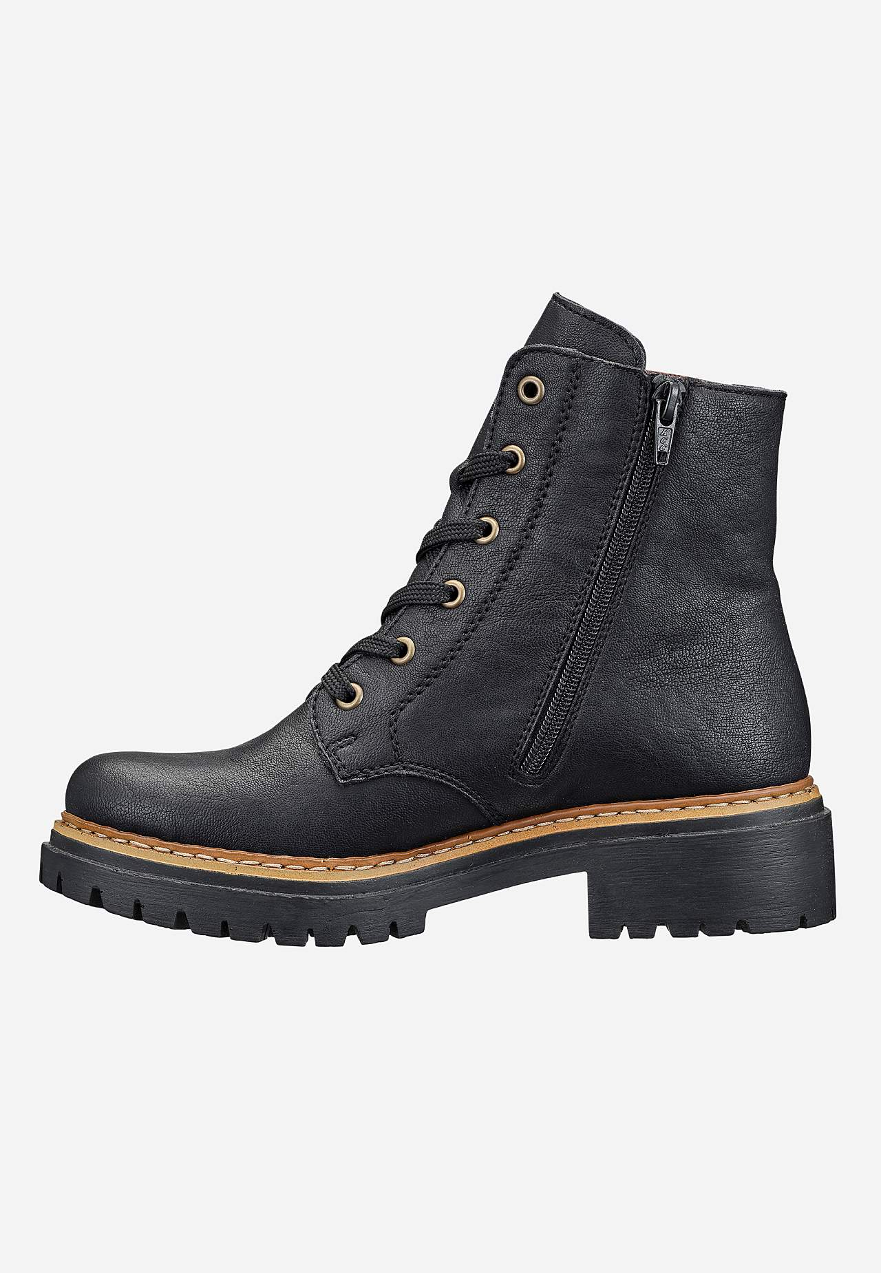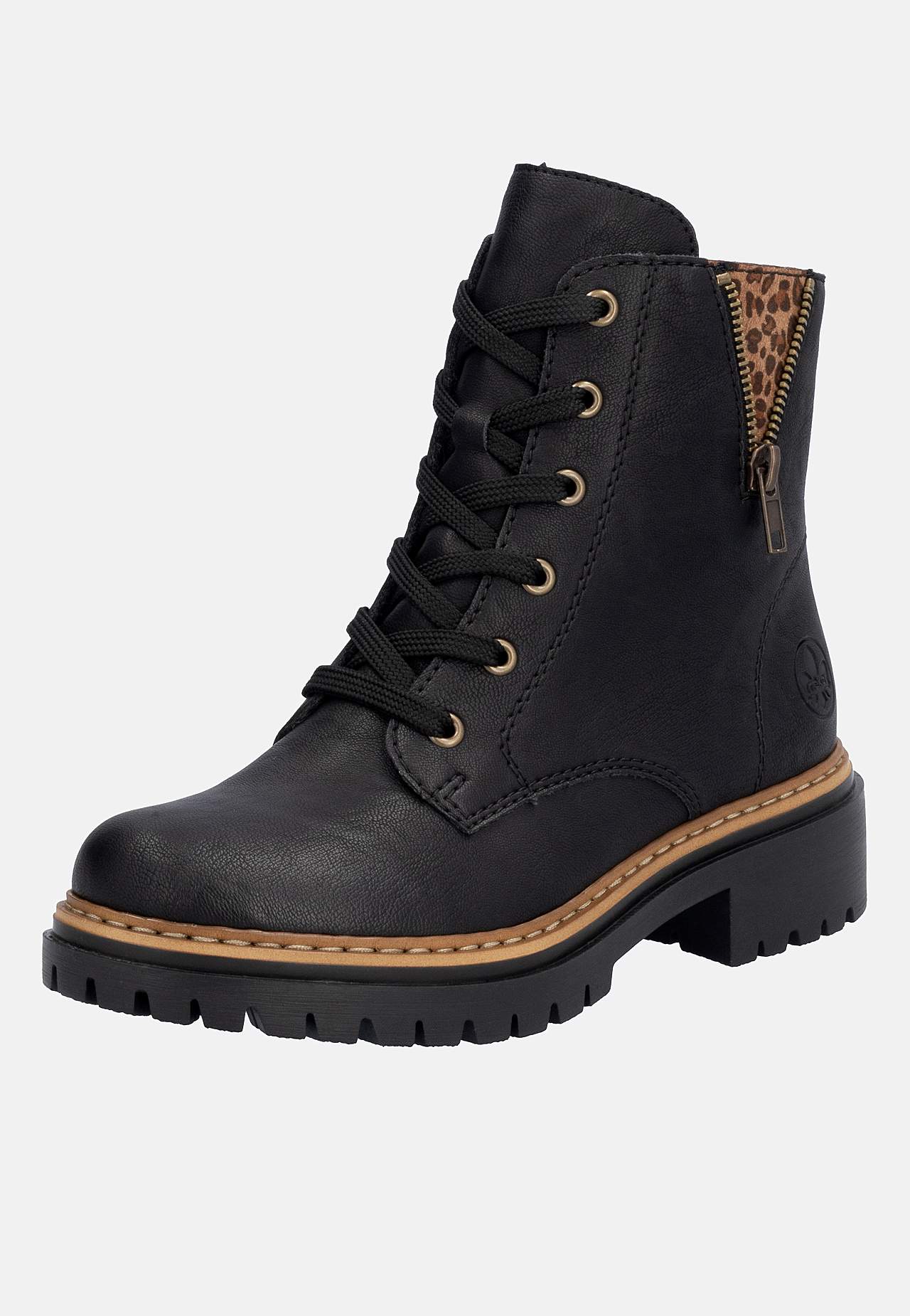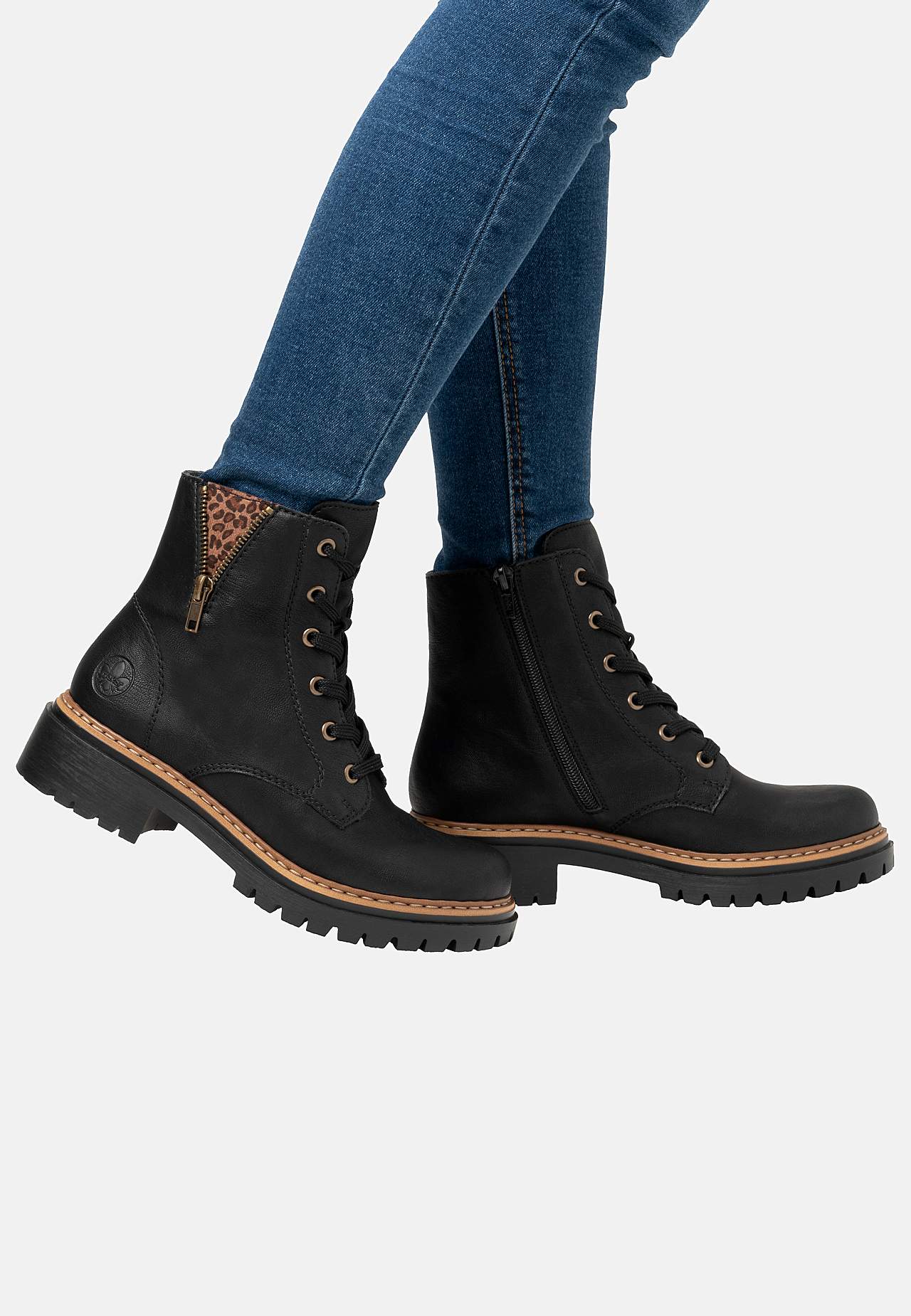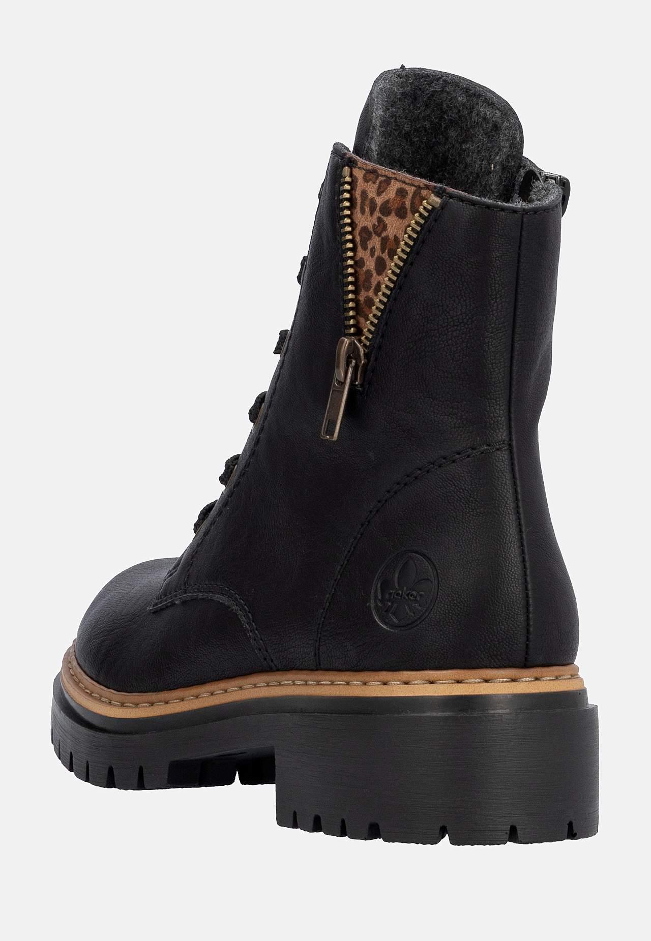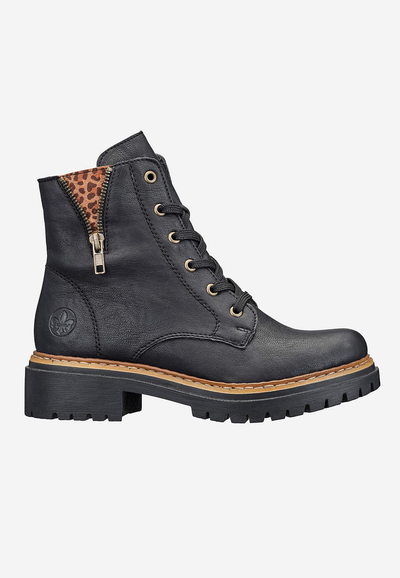 Varm-foret boot. Leopardmønstret kile på utsiden med dekorglidelås. Glidelås på innsiden av foten for å enkelt ta av og på. Justerbar skaftvidde med snøring. Filtet, varmende innsidefôr. Filtet, myk innersåle. Robust yttersåle med godt grep. Rieker Antistress: Se nedenfor. Overside i syntet. Fôring i tekstil. Innersåle i te... Les mer