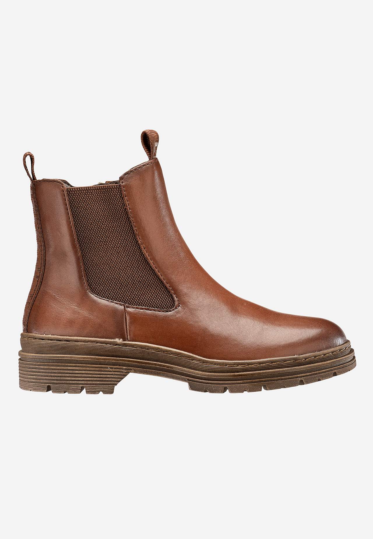 Boot i ekte skinn. Bred elastisk kile på utsiden. Glidelås på innsiden. Hempe foran og bak. Sting i samme fargenyanse. Rund tå. Fôring i mikrofleece. Myk, komfortabel såle. Yttersåle med godt grep. Overside i skinn. Fôring med tekstil. Innersåle i tekstil. Yttersåle i syntet.