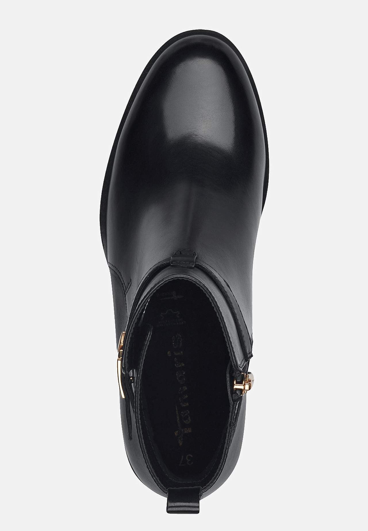 Ryddig boot i skinn. Krysset stropp rundt ankelen med liten spenne på utsiden. Glidelås på innsiden. Rund tå. Myk innersåle. Blokkhæl. Tamaris Touch-it. Overside i skinn. Fôring i tekstil og syntet. Innersåle i tekstil. Touch-It -funksjonen gjør at den myke sålen konstant følger kroppens vekt og fotens fasong. Yttersåle i s... Les mer