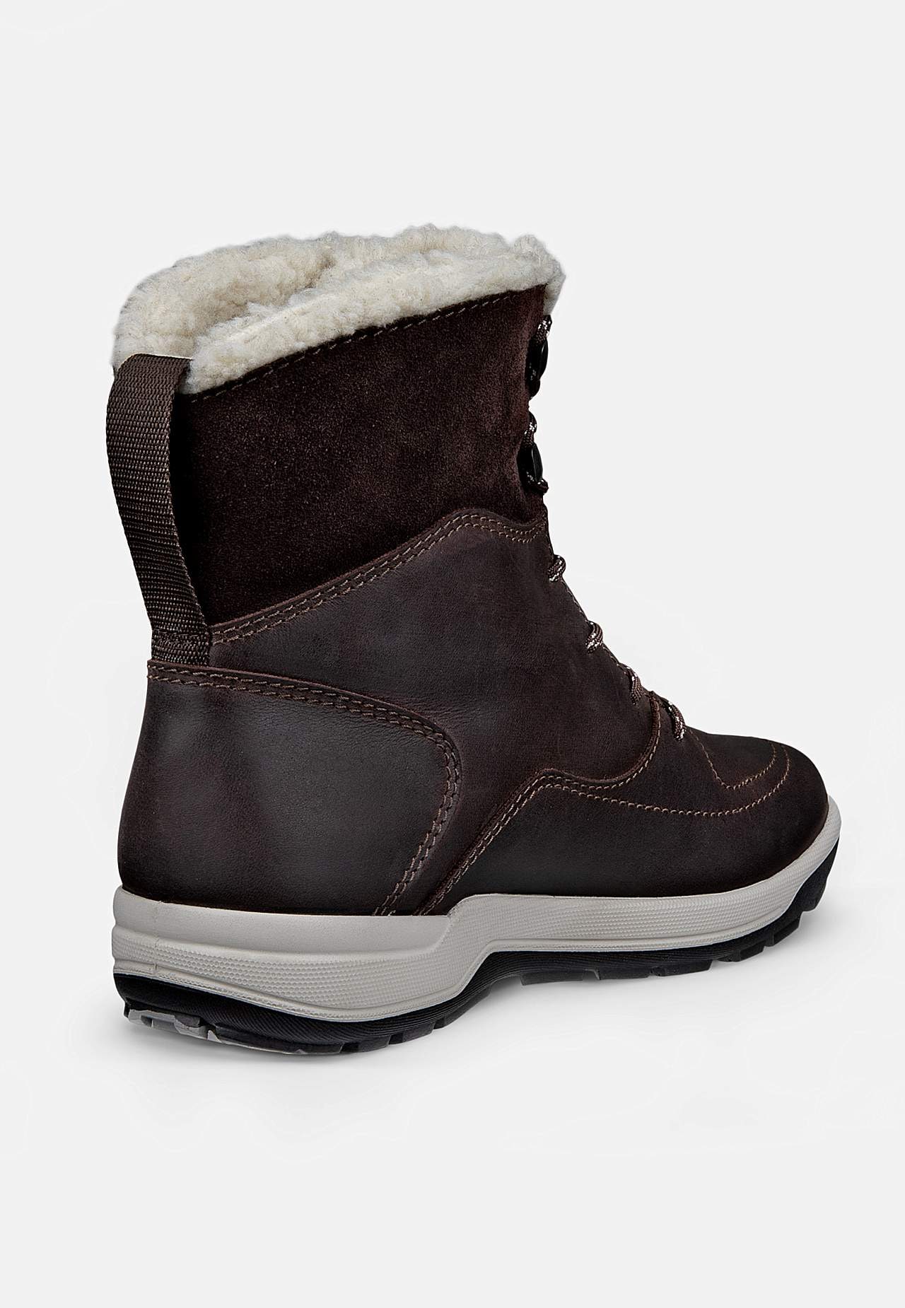 Vanntett boot med litt høyere skaft. Snøring på topp. Kant i fuskepels. Mykt, varmende, fluffy fôr. Hempe bak. Fjernbar innersåle. Grov yttersåle for bedre grep. Oppleves som små i størrelsen. Velger du mellom to størrelser anbefaler vi den større. ECCO RECEPTOR:: Se nedenfor. Overside i skinn. Fôring i tekstil. Innersåle i... Les mer