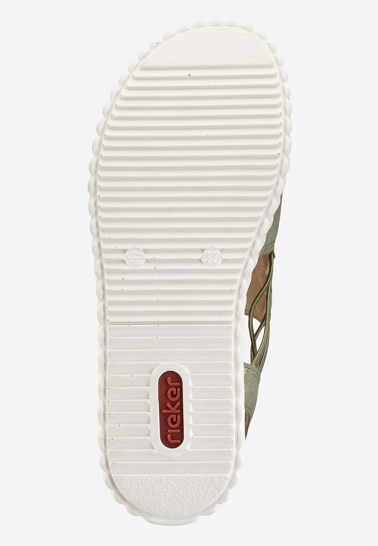 Sandal med stabil kilehæl og dekorativ kant i jute. Komfortabel bakstropp. Kryssende elastiske stropper på innsiden av foten og på fotens utside. Lette å ta på og av. Lett polstret, myk innside. Støtdempende såle. Supermyk innersåle. Yttersåle med godt grep. Rieker Antistress: Se nedenfor. Overside i syntet. Fôring i teksti... Les mer