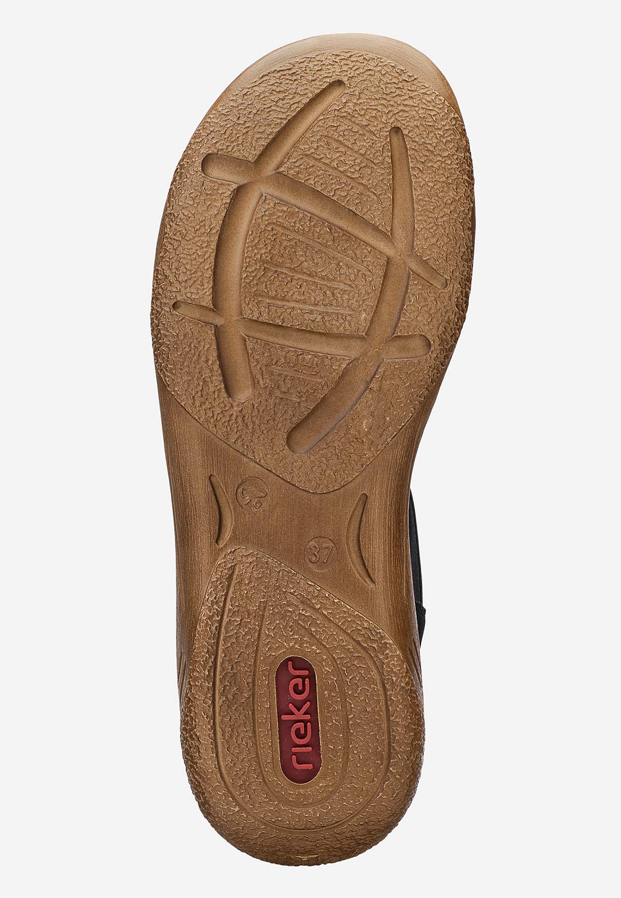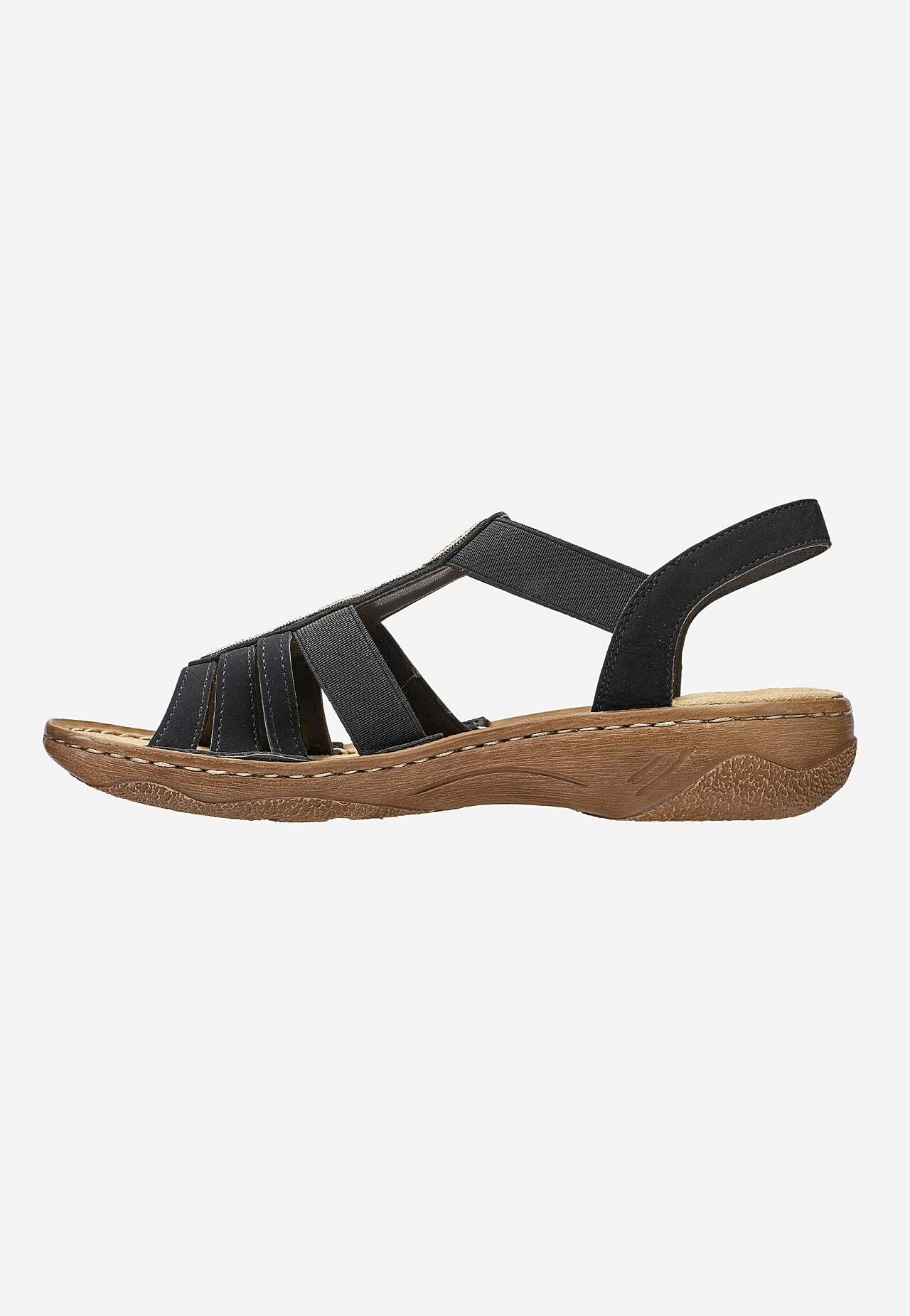 Slip in-sandal med utseende av semsket skinn og rhinestone-detaljer på fotens overside. Elastiske remmer ved ankelen og over foten gjør den bekvemmelig og ekstra lett å ta på og av. Kontrastfarget, lett yttersåle med dekorsømmer. Myk, komfortabel innersåle. Logodetalj på fotens utside. Noe smalere modell. Rieker Antistress:... Les mer
