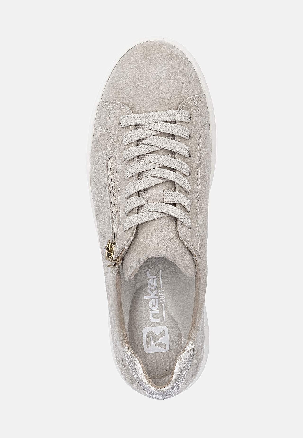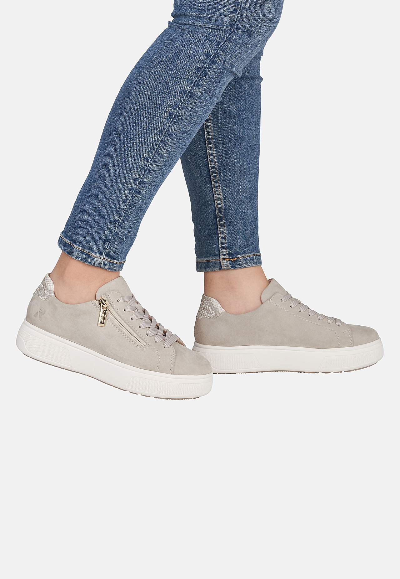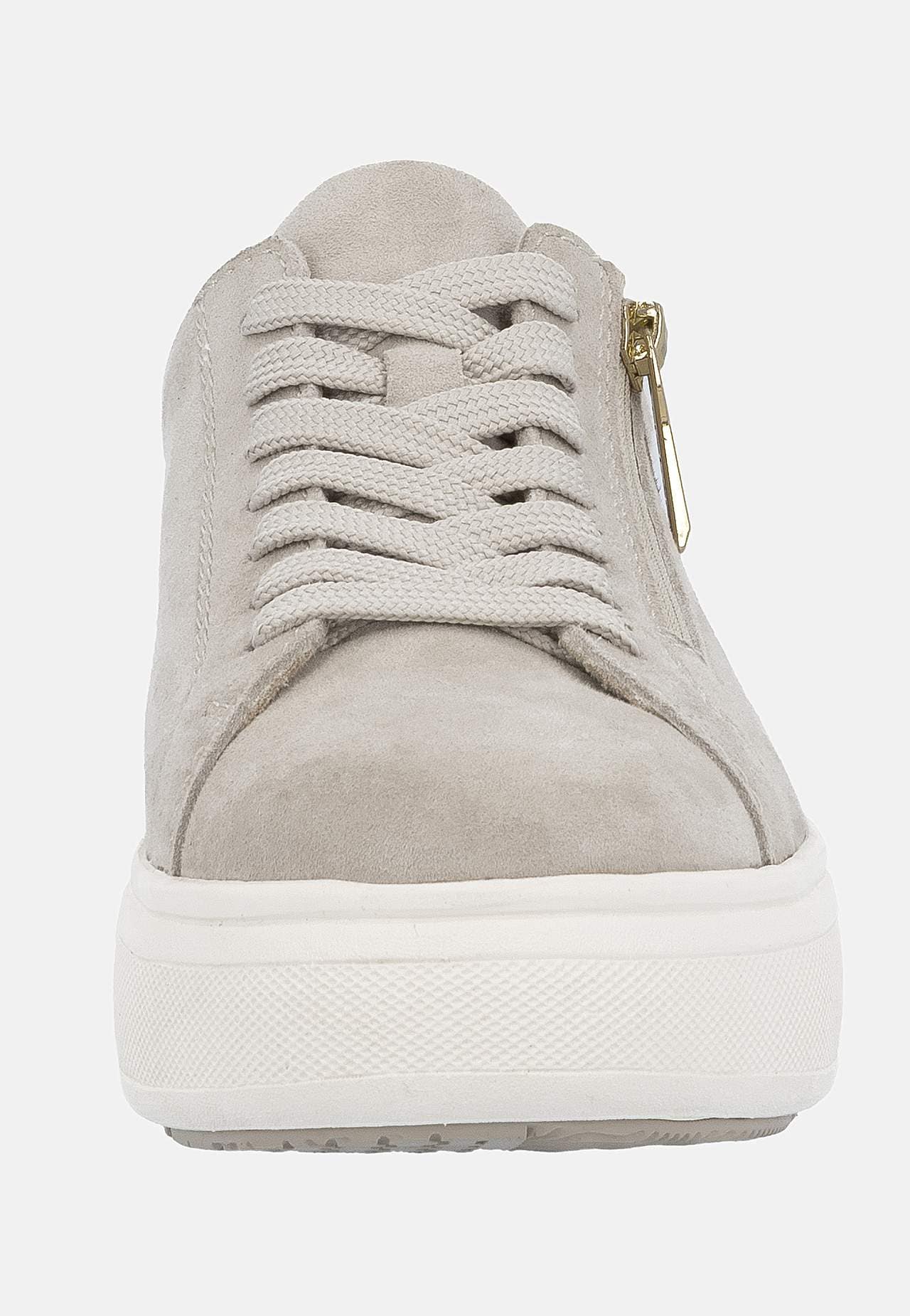 Sko i myk semsket skinn. Snøresko med glidelås på fotens utside for å enkelt ta av og på. Dekorativ detalj i skinn på baksiden. Komfortabel innersåle ekstra myk. Logodetalj på fotens utside. Gummisåle med godt grep. Overside i skinn. Fôring i syntet med et tekstil. Innersåle i syntet. Yttersåle i syntet.