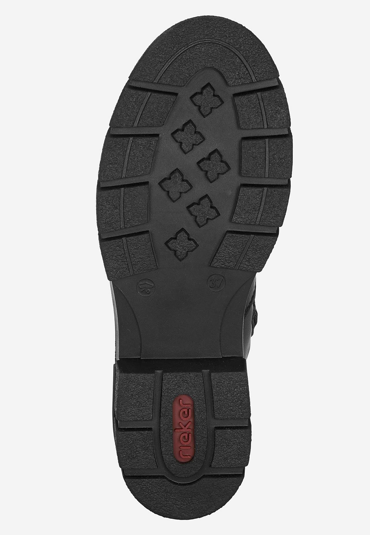 Fôret støvel i skinn med stretchy bakside. Glidelås på innsiden for å enkelt ta av og på. Litt høyere skaft foran. Hempe på baksiden. Varmende, fløyelsaktig fôr. Komfortabel, myk, filtet innersåle. Sting i samme fargenyanse. Logodetalj på utsiden. Rieker Antistress Se nedenfor. Overside i skinn. Fôring i tekstil. Innersåle ... Les mer